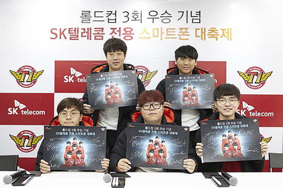 À̹ø ÆÒ»çÀÎȸ¿¡´Â ¡®ÆäÀÌÄ¿¡¯ ÀÌ»óÇõ, ¡®¿ïÇÁ¡¯ ÀÌÀç¿Ï, ¡®ºí·©Å©¡¯ °¼±±¸, ¡®µàÅ©¡¯ ÀÌÈ£¼º, ¡®º¬±â¡¯ ¹è¼º¿õ±îÁö ÃÑ 5¸íÀÇ T1 ¼±¼ö´ÜÀÌ Âü¼®Çß´Ù. Çà»çÀå¿¡´Â SKÅÚ·¹ÄÞÀÌ Áö³ 20ÀϱîÁö ÁøÇàÇÑ SKÅÚ·¹ÄÞ Àü¿ë ½º¸¶Æ®Æù ´ëÃàÁ¦ ÇÁ·Î¸ð¼ÇÀ» ÅëÇØ ´ç÷µÈ 100¸íÀÇ °í°´ÀÌ Âü¿©Çß´Ù. T1 ¼±¼ö´ÜÀº ±ÄÀº ³¯¾¾¿¡µµ ºÒ±¸ÇÏ°í »çÀÎȸ¸¦ ã¾Æ ÁØ ÆÒµé¿¡°Ô ÀÏÀÏÀÌ ´ÙÁ¤ÇÑ Àλ縦 °Ç³×¸ç ³²´Ù¸¥ ¡®ÆÒ »ç¶û¡¯À» º¸¿©Áá´Ù. º»°ÝÀûÀÎ »çÀÎȸ ½ÃÀÛ Àü ÁøÇàµÈ ÀÎÅͺ信¼ ¡®·ÑµåÄÅ¡¯ ¿ì½Â ¼Ò°¨À» ¹¯´Â Áú¹®¿¡ ÀÌ»óÇõ ¼±¼ö´Â ¡°3³âµ¿¾È T1¿¡¼ °ÔÀ̸ӷΠȰµ¿ Çß´Ù, ±× Áß À̹ø ·ÑµåÄÅÀÌ ±²ÀåÈ÷ ¾î·Æ°Ô ´À²¸Á³´Âµ¥ ¿ì½ÂÀ¸·Î º¸»óÀ» ¹ÞÀº °Í °°¾Æ ¸¸Á·½º·´´Ù¡±°í ´äÇß´Ù. SKÅÚ·¹ÄÞ ³²»óÀÏ ¸¶ÄÉÆÃ Ä¿¹Â´ÏÄÉÀÌ¼Ç º»ºÎÀåÀº ¡°SKT T1 ·ÑµåÄÅ 3ȸ ¿ì½ÂÀÇ ±â»ÝÀ» °í°´µé°ú ÇÔ²² ³ª´©°íÀÚ À̹ø À̺¥Æ®¸¦ ±âȹÇÏ°Ô µÆ´Ù¡±¸ç, ¡°¾ÕÀ¸·Îµµ °í°´Á¢Á¡¿¡¼ Â÷º°ÈµÈ °æÇè°ú ÇýÅÃÀ» Á¦°øÇÒ ¼ö ÀÖ´Â ´Ù¾çÇÑ ¸¶ÄÉÆÃ È°µ¿À» ÆîÄ¥ °èȹÀÌ´Ù¡±¶ó°í ¸»Çß´Ù. ÇÑÆí, SKÅÚ·¹ÄÞ ÇÁ·Î°ÔÀÓ´Ü ¡®T1¡¯Àº Áö³ 10¿ù ¹Ì±¹¿¡¼ ¿¸° ·ÑµåÄÅ¿¡¼ ¼¼°è ÃÖÃÊ 3ȸ ¿ì½ÂÀ̶ó´Â ±ÝÀÚžÀ» ¼¼¿ü´Ù. ÃÖ±Ù À¯·Â ½ºÆ÷Ã÷ ¸Åü ¡®ESPN¡¯Àº T1ÀÌ Àü¼³ÀûÀÎ ½ºÆ÷Ã÷ÆÀÀÎ 1990³â´ë ½ÃÄ«°í ºÒ½º, 2000³â´ë LA·¹ÀÌÄ¿½º µî°ú ¹ö±Ý°¡´Â ¡®½ºÆ÷Ã÷ ¿ÕÁ¶¡¯¸¦ ÀÌ·èÇß´Ù°í Æò°¡Çϱ⵵ Çß´Ù.