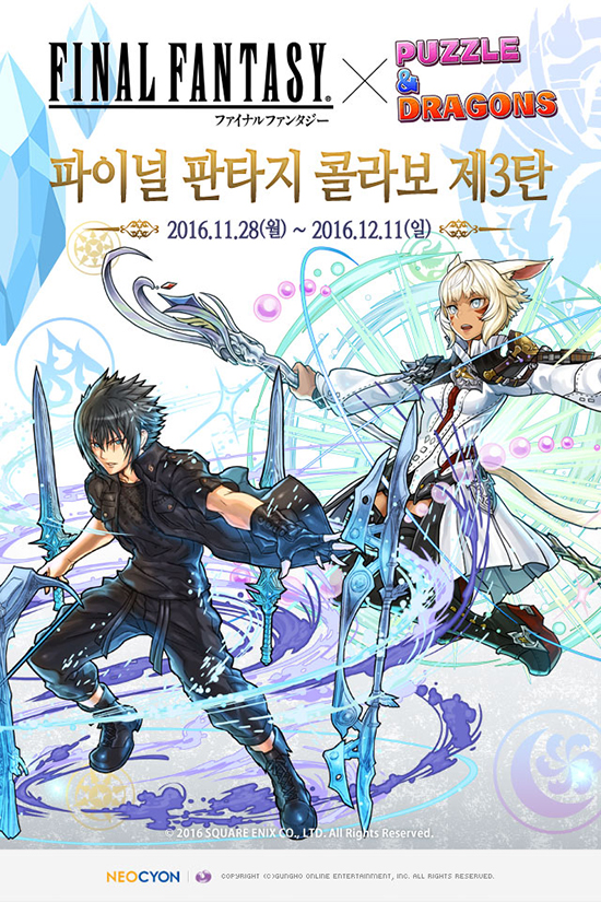 °ÏÈ£¿Â¶óÀο£ÅÍÅ×ÀÎ¸ÕÆ®°¡ °³¹ßÇÏ°í ¸ð¹ÙÀÏ ÄÜÅÙÃ÷ Àü¹® ±â¾÷ ³×¿À½ÎÀ̾𿡼 ¼ºñ½ºÇÏ´Â ¿À¸®Áö³Î ÆÛÁñ RPG ¡®ÆÛÁñ¾Øµå·¡°ï¡¯ÀÌ ÆÄÀ̳ΠÆÇŸÁö ÄÝ¶óº¸ 3źÀ» ÁøÇàÇÑ´Ù. Áö³ µÎ ¹øÀÇ ÆÄÀ̳ΠÆÇŸÁö Äݶóº¸ÀÇ ³ôÀº Àα⿡ ÈûÀÔ¾î ÁøÇàµÇ´Â ¼¼ ¹øÂ° Äݶ󺸴 ¡®Æ¼ÆÄ, ³ìƼ½º, ÆÇ³Ú·Î, ¾Æ·Ð, ¾çÆÄ ±â»ç¡¯ µî ¿ª´ë ÆÄÀ̳ΠÆÇŸÁöÀÇ ´Ù¾çÇÑ ½Å±Ô ij¸¯Å͸¦ »õ·Ó°Ô ¼±º¸ÀδÙ. ÀÌ¿¡ µû¶ó ¿À´Ã(28ÀÏ)ºÎÅÍ 12¿ù 11ÀÏ(ÀÏ) 24½Ã±îÁö ·©Å© 50ÀÌ»óÀÌ¸é ±â°£ ÇÑÁ¤À¸·Î ¡®·©Å©50 FFÄÝ¶óº¸ ¿¡±×¡¯¸¦ ¹«·á·Î 1¹ø ȹµæÇÒ ¼ö ÀÖ´Ù. °ÔÀÓ ³» ¸ÞÀÏ¿¡¼ »ç¿ëÇϱ⠹öưÀ» ´©¸£¸é ¡®Å¬¶ó¿ìµå¡¯¿Í ¡®³ìƼ½º¡¯µî ´ë»ó ij¸¯ÅÍ Áß ·£´ýÀ¸·Î 1°³¸¦ ȹµæÇÒ ¼ö ÀÖ´Ù. ¶ÇÇÑ, ¡®¾ß½´Åç¶ó, ³ìƼ½º, ƼÆÄ¡¯ÀÇ ±Ã±ØÁøÈ°¡ Ãß°¡µÇ¸ç, ÀÏÁ¤º°·Î ÄÝ¶óº¸ ¿¡±×¿¡¼ ÀϺΠij¸¯ÅÍÀÇ ÀûÁß È®·üÀÌ ´ëÆø »ó½ÂµÈ´Ù. ÄÝ¶óº¸ ±â°£ Áß, Á¦ 2ź±îÁö¿¡¼ °ø°³µÈ ¡®ÆÄÀ̳ΠÆÇŸÁö Äݶ󺸡¯, ¡®ÆÄÀ̳ΠÆÇŸÁö Äݶóº¸2¡¯ ´øÀüÀÌ ´Ù½Ã µîÀåÇϸç, ÀϺΠ¸ó½ºÅÍÀÇ µå·Ó ¾ÆÀÌÅÛÀÌ º¯°æµÈ´Ù. »õ·Ó°Ô µå·ÓµÇ´Â ¾ÆÀÌÅÛÀ¸·Î ÀϺΠ½Å±Ô ij¸¯ÅÍÀÇ ½ºÅ³À» ·¹º§¾÷ ÇÒ ¼ö ÀÖ´Ù. ¸¶Áö¸·À¸·Î ¸ó½ºÅÍ ±¸ÀÔÀ» ÅëÇØ ÆÄÀ̳ΠÆÇŸÁö ¡®KINGSGLAIVE FINAL FANTASY XV¡¯ÀÇ ÄÝ¶óº¸ Ä³¸¯ÅÍÀÎ ¡®±Û¶ó¿ìÄ«¡¯°¡ µîÀåÇϸç, ¶×º¸ ÃÊÄÚº¸¿Í ¸ð±×¸®Á·ÀÇ ¼±¹° µî ´Ù¾çÇÑ À̺¥Æ®¸¦ ÇÔ²² ÁøÇàÇÑ´Ù. À̹ø ÆÛÁñ¾Øµå·¡°ïÀÇ ÆÄÀÌ³ÎÆÇŸÁö Äݶ󺸿¡ ´ëÇÑ ÀÚ¼¼ÇÑ ³»¿ëÀº °ø½Ä ȨÆäÀÌÁö(http://pad.neocyon.com)¹× °ø½Ä ÆäÀ̽ººÏ(http://www.facebook.com/padkr), īī¿À½ºÅ丮(https://story.kakao.com/ch/padkr)¿¡¼ È®ÀÎ ÇÒ ¼ö ÀÖ´Ù.