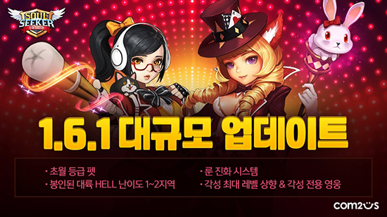 ÄÄÅõ½º´Â Àڻ簡 ÆÛºí¸®½Ì Çϰí Ŭ·¡°ÔÀÓÁî°¡ °³¹ßÇÑ ¾×¼Ç RPG ¡®¼Ò¿ï½ÃÄ¿¡¯¿¡¼ ÃÖ»óÀ§ µî±ÞÀÇ Æê°ú ·é µî ´Ù¾çÇÑ ÄÜÅÙÃ÷¸¦ µµÀÔÇÏ´Â ½Å±Ô ¾÷µ¥ÀÌÆ®¸¦ ÁøÇàÇß´Ù°í 30ÀÏ ¹àÇû´Ù. À̹ø ¾÷µ¥ÀÌÆ®¿¡¼´Â ±âÁ¸ µî±Þ º¸´Ù ³ôÀº ÃÖ»ó±Þ Æê°ú ·é µîÀ» »õ·Ó°Ô Ãß°¡Çß´Ù. ¸ÕÀú 4¼º º¸´Ù ÇÑ ´Ü°è ´õ ³ôÀº µî±ÞÀÎ ÃÊ¿ù ÆêÀº ¶Ù¾î³ ±âº» ´É·ÂÀº ¹°·Ð, ÃÑ 2°³ÀÇ ÃÊ¿ù ½ºÅ³À» Ãß°¡·Î º¸À¯ÇØ ³ôÀº Ȱ¿ëµµ¸¦ ÀÚ¶ûÇÑ´Ù. °¢¼ºÀ» ÅëÇÑ ÆêÀÇ ÃÖ´ë ·¹º§ »óÇâµµ °¡´ÉÇØ ÆÀ Àü·ÂÀ» º¸´Ù ±Ø´ëÈ ÇÒ ¼ö ÀÖ´Ù. ÀÌ¿Í ÇÔ²² ÃÖ»óÀ§ µî±ÞÀÎ ÃÊ¿ù ·éÀÌ µµÀԵŠ±Ã±Ø °È¸¦ ´Þ¼ºÇÑ 6¼º ¹× ÃÊ¿ù ¿µ¿õÀÇ ´É·ÂÄ¡¸¦ ´õ¿í ³ôÀÌ ²ø¾î¿Ã¸± ¼ö ÀÖÀ¸¸ç, È·ÁÇÑ ¿ÜÇü°ú ÇÔ²² ½ºÅ³ È¿°ú°¡ º¯°æµÇ´Â ½Å±Ô ÃÊ¿ù ÄÚ½ºÆ¬ 4Á¾µµ Ãß°¡µÅ ÇÑÃþ È·ÁÇÏ°í ¹ÚÁø°¨ ³ÑÄ¡´Â ÀüÅõµµ Áñ±æ ¼ö ÀÖ´Ù. À̹ۿ¡ ½Ã³ª¸®¿À ¸ðµå¿¡¼ ¡®ºÀÀÎµÈ ´ë·ú¡¯ÀÇ Çï(Hell) Áö¿ªÀÌ ¿ÀǵŠġ¿ÇÑ ÀüÅõ¸¦ Áñ±æ ¼ö ÀÖÀ¸¸ç, °¢¼º Àü¿ë ¿µ¿õÀÎ ¡®°¢¼º ¿¬±¸¿ø ¸°¡¯ÀÌ »õ·Ó°Ô Ãß°¡, º¸´Ù ½±°Ô ¿µ¿õ ·¹º§À» ³ôÀÏ ¼ö ÀÖ´Ù. ¸ð¹ÙÀÏ ¾×¼Ç RPG ¡®¼Ò¿ï½ÃÄ¿¡¯´Â Áö³ 2014³â ±Û·Î¹ú·Î Ãâ½ÃÇØ 59±¹°¡¿¡¼ RPG ¸ÅÃâ TOP10À» ±â·ÏÇßÀ¸¸ç, 500¿© Á¾ÀÇ Ä³¸¯ÅÍ¿Í Å×ũƮ¸®Çü ÀåºñÁ¦ÀÛ ½Ã½ºÅÛÀ» Ȱ¿ëÇÑ ÀÌ»ö Àü·« Ç÷¹ÀÌ·Î ±¹³»¿Ü À¯ÀúµéÀÇ ²ÙÁØÇÑ È£ÀÀÀ» À̲ø°í ÀÖ´Ù. °ÔÀÓ°ú À̹ø ´ë±Ô¸ð ¾÷µ¥ÀÌÆ®¿¡ °üÇÑ ´õ¿í ÀÚ¼¼ÇÑ ³»¿ëÀº ¡®¼Ò¿ï½ÃÄ¿¡¯ °ø½ÄÄ«Æä (http://cafe.naver.com/soulseeker2014)¸¦ ÅëÇØ È®ÀÎÇÒ ¼ö ÀÖ´Ù.