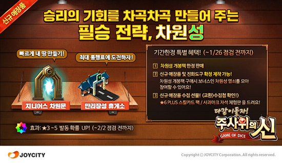 Á¶ÀÌ½ÃÆ¼´Â ÀÚü °³¹ßÇÑ ¸ð¹ÙÀÏ º¸µå°ÔÀÓ ¡®ÁÖ»çÀ§ÀÇ ½Å¡¯¿¡ ½Å±Ô ¾ÖÀåǰ ¡®Áö´Ï¾î½º Â÷¿ø¹®¡¯°ú ¡®¸¸¸®À强 ÈÞ°Ô¼Ò¡¯¸¦ Ãß°¡Çß´Ù°í 12ÀÏ ¹àÇû´Ù. ½Å±Ô ¾ÖÀåǰ ¡®Áö´Ï¾î½º Â÷¿ø¹®¡¯Àº ù ÅÏ È®·ü¿¡ µû¶ó À§Ä¡ À̵¿À» ÇÒ ¼ö ÀÖ´Â ±â´ÉÀ» º¸À¯Çϰí ÀÖÀ¸¸ç, ¡®¸¸¸®À强 ÈÞ°Ô¼Ò¡¯´Â 4´Ü°è µµ½Ã °Ç¼³ ½Ã È®·ü¿¡ µû¶ó ÇØ´ç µµ½ÃÀÇ ÅëÇà·á¸¦ Áõ°¡½ÃŰ´Â È¿°ú¸¦ Áö³æ´Ù. Á¶ÀÌ½ÃÆ¼´Â À̸¦ ±â³äÇØ ǪÁüÇÑ ¾ÆÀÌÅÛÀ» ȹµæÇÒ ¼ö ÀÖ´Â ¡®»õÄÞ´ÞÄÞ Ç÷¹ÀÌ¡¯ À̺¥Æ®¸¦ ÁøÇàÇÑ´Ù. ¸ÅÀÏ °ÔÀÓÀ» Ç÷¹ÀÌÇÏ´Â À¯Àú¸¦ ´ë»óÀ¸·Î ¡®µþ±â¡¯¸¦ ÁõÁ¤Çϰí, ½Ã°£ ÇÑÁ¤À¸·Î ¡®5¼º ½ºÅ³Ä«µå¡¯¿Í ¡®4¼º ¾ÖÀåǰ¡¯, ¡®5¼º ij¸¯ÅÍ¡¯ µîÀÌ ´ã±ä ¡®µþ±â ÄÉÀÌÅ©¡¯¸¦ ¹«ÀÛÀ§·Î Á¦°øÇÑ´Ù. ¶ÇÇÑ ÆÇ¼ö ¹Ì¼Ç ¼öÇà ½Ã ¡®Ç÷¡Æ¼³Ñ ½ºÅ³Ä«µå¡¯ 3Àå°ú ¡®5¸¸ °ñµå¡¯, ¡®¾ÖÀåǰ¡¯ 2°³¸¦ ¾òÀ» ¼ö ÀÖ°í, ÃÑ 50ÆÇÀ» Áñ±ä À¯ÀúÀÇ °æ¿ì ¡®6¼º Ç÷¯½º Á¦ÀÛ µå¸²ÆÑ¡¯ 1°³¸¦ Ãß°¡ ȹµæÇÒ ¼ö ÀÖ´Ù. ¸ð¹ÙÀÏ º¸µå°ÔÀÓ ¡®ÁÖ»çÀ§ÀÇ ½Å¡¯Àº ±¸±Û Ç÷¹ÀÌ ¹× ¾ÖÇà ¾Û½ºÅä¾î, ¿ø½ºÅä¾î¸¦ ÅëÇØ ´©±¸³ª ´Ù¿î·Îµå ¹ÞÀ» ¼ö ÀÖÀ¸¸ç, °ÔÀÓ¿¡ ´ëÇÑ º¸´Ù ÀÚ¼¼ÇÑ ³»¿ëÀº °ø½Ä ȨÆäÀÌÁö(http://god.joycity.com)¿¡¼ È®ÀÎ °¡´ÉÇÏ´Ù.
