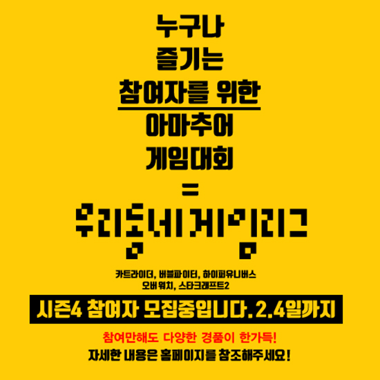 ´©±¸³ª Áñ±æ ¼ö ÀÖ´Â Âü¿©Çü ¾Æ¸¶Ãß¾î °ÔÀÓ¸®±×¸¦ ¸¸µé±â À§ÇØ ³ë·ÂÇϰí ÀÖ´Â ¿ì¸®µ¿³×°ÔÀÓ¸®±×¿Í ¼±ºÒ°áÁ¦ Ä«µå ¾÷üÀÎ 'ƾij½Ã'°¡ ÇÔ²² ÇÕ½ÉÇÏ¿©, 2017³â 1¿ù ¿ì¸®µ¿³×°ÔÀÓ¸®±× ¿Â¿ÀÇÁ¹Í½º Åä³Ê¸ÕÆ® 4¹øÂ° ½ÃÁðÀ» °³ÃÖÇÑ´Ù.