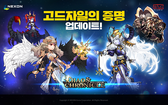 ³Ø½¼Àº À®½ºÆ©µð¿À°¡ °³¹ßÇϰí Àڻ簡 ¼ºñ½ºÇÏ´Â ¸ð¹ÙÀÏ È¾½ºÅ©·Ñ RPG ¡®Ä«¿À½º Å©·Î´ÏŬ(Chaos Chronicle)¡¯¿¡ ½Å±Ô ÄÜÅÙÃ÷ ¡®°íµåÀÚÀÏÀÇ Áõ¸í¡¯À» Ãß°¡Çß´Ù°í 20ÀÏ ¹àÇû´Ù. ¡®°íµåÀÚÀÏÀÇ Áõ¸í¡¯Àº ´Ù¸¥ À¯ÀúµéÀÇ ¡®µµÇð»¾î¡¯¿Í ÀüÅõ¸¦ ¹úÀÌ´Â ¼öµ¿ PvP(Player ver. Player) ÄÜÅÙÃ÷·Î ÃÑ 15°³ÀÇ ¡®ÀüÅõ ½ºÅ×ÀÌÁö¡¯·Î ±¸¼º µÈ ¡®ÀÏ¹Ý ¸ðµå¡¯¿Í ¡®¾î·Á¿ò ¸ðµå¡¯¸¦ Á¦°øÇÑ´Ù. ¡®ÀüÅõ ½ºÅ×ÀÌÁö¡¯ Ŭ¸®¾î ÈÄ ¡®º¸»ó »óÀÚ¡¯¸¦ ÅÍÄ¡ÇÏ¸é ¡®Áõ¸íÀÇ ¹èÁö¡¯, ¡®·é¡¯, ¡®°ñµå¡¯ µîÀ» ȹµæÇÒ ¼ö ÀÖ´Ù. ¾Æ¿ï·¯ ¡®°íµåÀÚÀÏÀÇ Áõ¸í¡¯¿¡¼ ȹµæ °¡´ÉÇÑ ¡®Áõ¸íÀÇ ¹èÁö¡¯¿Í ±³È¯ÇÒ ¼ö ÀÖ´Â ¡®½ºÆä¼È ·é¡¯À» »õ·Ó°Ô Ãß°¡Çß´Ù. ¡®Á¶µð¾Ç¡¯ ½Ã½ºÅÛ ³» ¡®ÃÊ¿ù ¿µ¿õ¡¯¿¡¸¸ ÀåÂø °¡´ÉÇÑ ¡®½ºÆä¼È ·é¡¯Àº ¡®ÀÏ¹Ý ·é¡¯º¸´Ù ³ôÀº ´É·ÂÄ¡¸¦ ÇØ´ç ¿µ¿õ¿¡ ºÎ¿©ÇÑ´Ù. ÀÌ¿Í ÇÔ²² º°ÀÚ¸®¸¦ ÄܼÁÆ®·Î ÇÑ ¡®Á¶µð¾Ç¡¯ ÄÚ½ºÆ¬ 4Á¾À» ¡®¶óÅ©³×¡¯, ¡®¼¼¸®½º¡¯, ¡®¾Æ±×³×½º¡¯, ¡®¾Ö½¬¡¯ µî ¡®¿µ¿õ¡¯ 4Á¾¿¡ Ãß°¡Çß´Ù. ³Ø½¼Àº 2¿ù 23ÀϱîÁö ¡®¸ð³ëÀÇ »õÇØ¸ÂÀÌ À̺¥Æ®¡¯¸¦ ÁøÇàÇÏ°í ¡®´øÀü Ç÷¹ÀÌ¡¯, ¡®¿µ¿õ ¼Òȯ¡¯, ¡®°áÅõÀå Âü¿©¡¯ µî ¹Ì¼ÇÀ» ÅëÇØ ¡®½Å³âÄ«µå¡¯¸¦ Áö±ÞÇÑ´Ù. ¡®½Å³âÄ«µå¡¯ÀÇ ´©Àû ¼ö¿¡ µû¶ó ¡®5~6¼º ¿µ¿õ ¿¹¾à¼¡¯, ¡®Á¤¿¹ Àåºñ »óÀÚ¡¯ µî ´Ù¾çÇÑ ¾ÆÀÌÅÛÀ» ¹«ÀÛÀ§·Î ¼±¹°ÇÑ´Ù. ¶Ç À̺¥Æ® ±â°£ ³» 7ÀÏ µ¿¾È ´©Àû Á¢¼ÓÇÏ¸é ¡®Á¤¿¹ Àåºñ ½Â±Þ¼®¡¯ 5°³ ¹× ¡®·çºñ(200)¡¯, ¡®4¼º ¿µ¿õ ¼±Åñǡ¯ µîÀ» Áö±ÞÇÑ´Ù. ÇÑÆí, ¡®Ä«¿À½º Å©·Î´ÏŬ¡¯Àº È·ÁÇÏ°í ¸Å·ÂÀûÀÎ µ¿Èdz ÀÏ·¯½ºÆ®¿Í ±íÀÌ ÀÖ´Â ½Ã³ª¸®¿À¸¦ °®Ãá ¸ð¹ÙÀÏ RPG·Î, ÃÑ 100¿© Á¾ÀÇ °³¼º ³ÑÄ¡´Â ¿µ¿õµéÀÇ °íÀ¯ ½ºÅ³À» Ȱ¿ëÇØ Àü·«ÀûÀÎ ÀüÅõ¸¦ Áñ±æ ¼ö ÀÖ´Ù. Áö³ÇØ 8¿ù ÃÑ 8°³ ¾ð¾î·Î 136°³±¹¿¡ Ãâ½ÃÇÑÁö ÇÑ ´Þ¿© ¸¸¿¡ 100¸¸ ´Ù¿î·Îµå¸¦ ³Ñ¾î¼¸ç ¼øÇ× ÁßÀÌ´Ù. ¡®Ä«¿À½º Å©·Î´ÏŬ¡¯ ¾÷µ¥ÀÌÆ®¿Í À̺¥Æ®¿¡ ´ëÇÑ º¸´Ù ÀÚ¼¼ÇÑ Á¤º¸´Â ¡®Ä«¿À½º Å©·Î´ÏŬ¡¯ °ø½Ä Ä«Æä(http://cafe.naver.com/chaoschroniclenexon)¿¡¼ È®ÀÎÇÒ ¼ö ÀÖ´Ù.
