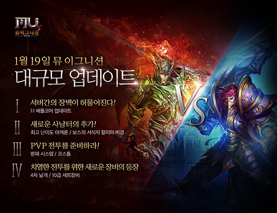 À¥Á¨ÀÇ ½ÅÀÛ À¥°ÔÀÓ '¹Â À̱״ϼÇ'ÀÌ Àü ¼¹ö ÀÌ¿ëÀÚµéÀ» ´ë»óÀ¸·Î ÇÏ´Â ÄÜÅÙÃ÷ ¾÷µ¥ÀÌÆ®¸¦ Ãß°¡ÇÏ¸é¼ Àå±â ÈïÇ༼¸¦ À̾°í ÀÖ´Ù. À¥Á¨Àº ¾îÁ¦(1¿ù 19ÀÏ) ÀÚ»çÀÇ ´ëÇ¥ À¥°ÔÀÓ '¹Â À̱״ϼÇ(MU IGNITION)'ÀÇ ¾÷µ¥ÀÌÆ® Á¡°Ë ½Ã°£À» °®°í ¸ðµç ¼¹öÀÇ °ÔÀÓȸ¿øµéÀÌ Âü°¡ÇØ ½Ç½Ã°£À¸·Î 1´ë1 ½ÂºÎ¸¦ °Ü·ç´Â '¹èƲÄÚ¾î' ½Ã½ºÅÛÀ» Àû¿ëÇß´Ù. À̹ø¿¡ »õ·Ó°Ô ¼±º¸ÀÌ´Â ¡®¹èƲÄھ´Â ´Ù¸¥ ¼¹öÀÇ ÀÌ¿ëÀÚµé°ú ·£´ýÀ¸·Î ¸ÅĪµÇ¾î 1:1ÀüÅõ¸¦ Áñ±æ ¼ö ÀÖ´Â PVP(Player versus Player)ÄÜÅÙÃ÷·Î 360·¹º§ ÀÌ»óÀÇ È¸¿øµé¸¸ Âü¿©ÇÒ ¼ö ÀÖ´Ù. ¹èƲÄھ Âü¿©ÇÑ È¸¿øµéÀº °ÔÀÓ ³» »óÁ¡¿¡¼ ¿©·¯ °ÔÀÓ ¾ÆÀÌÅÛ°ú ±³È¯ÇÒ ¼ö ÀÖ´Â '¸í¿¹ Æ÷ÀÎÆ®'¸¦ ¾òÀ» ¼ö ÀÖ´Ù. ¶ÇÇÑ À¥Á¨Àº ÀüÅõ¿¡¼ ÀûÀÇ °ø°ÝÀ» È¿À²ÀûÀ¸·Î ¹æ¾îÇÒ ¼ö ÀÖ´Â '¹æÆÐ¡¯ ½Ã½ºÅÛ°ú ¾÷µ¥ÀÌÆ®ÀÇ Æ¯»öÀ̳ª ºÐÀ§±â µîÀ» »ì·Á µðÀÚÀÎµÈ ¡®ÄÚ½ºÆ¬¡¯À» µµÀÔÇØ °ÔÀÓ È¸¿øµéÀÇ Å« È£ÀÀÀ» ¾ò°í ÀÖ´Ù. 400·¹º§ ÀÌ»óÀÇ '¸¶½ºÅÍ·¹º§'À» ´Þ¼ºÇÑ È¸¿øµéÀ» ´ë»óÀ¸·Î ij¸¯ÅÍÀÇ À̵¿¼Óµµ¸¦ ¿µ±¸ÀûÀ¸·Î Áõ°¡½ÃÄÑ ÁÖ´Â ¡®4Â÷ ³¯°³¡¯µµ Ãß°¡Çß´Ù. 4Â÷ ³¯°³´Â ¡®3Â÷ ³¯°³¡¯¿Í ¡®Ã¢Á¶ÀÇ º¸¼®¡¯, ¡®Å¾çÀÇ ¹®À塯 µîÀÇ Àç·á¾ÆÀÌÅÛÀ» »ç¿ëÇØ Á¦ÀÛÇÒ ¼ö ÀÖ´Ù. À̿ܿ¡µµ À¥Á¨Àº ¸¶½ºÅÍ 100·¹º§ ÀÌ»óÀÇ »óÀ§·¹º§ ȸ¿øµéÀ» À§ÇÑ »ç³ÉÅÍ ¡®¾ÆÄɷС¯°ú ƯÁ¤ ½Ã°£´ë¿¡¸¸ ÀÔÀåÀÌ °¡´ÉÇÑ ¡®Ä®¸®¸¶ºñ°æ¡¯À» ¼±º¸¿´´Ù. ¾ÆÄɷп¡¼´Â °·ÂÇÑ º¸½º ¸ó½ºÅÍÀÎ ¡®»ì¶ó¸¸´õ¡¯¸¦ ¹°¸®Ä¡¸é ¡®10±Þ ¿¢¼³·±Æ® Àåºñ¡¯, ¡®¼¼Æ®¼®¡¯ µîÀÇ ¾ÆÀÌÅÛ°ú ³ôÀº °æÇèÄ¡¸¦ ¾òÀ» ¼ö ÀÖ´Ù. ÇÑÆí, À¥Á¨Àº ³»ÀÏ(1¿ù 21ÀÏ)±îÁö ¾÷µ¥ÀÌÆ®¸¦ ±â³äÇØ ¡®¹Â À̱״ϼǡ¯¿¡ Á¢¼ÓÇÑ È¸¿ø Àü¿ø¿¡°Ô ij¸¯ÅÍÀÇ ´É·ÂÄ¡¸¦ Á¶Á¤ÇÒ ¼ö ÀÖ´Â 'Èû10X150', '¹Îø10X150', '¿¡³ÊÁö10X150', ¡®Ã¼·Â10X150¡¯ ¾ÆÀÌÅÛÀ» °¢°¢ ¼±¹°ÇÑ´Ù. °ÔÀ̸ӵéÀº ¿À´Â 2¿ù 1ÀÏ ´Ü ÇÏ·ç µ¿¾È °ÔÀÓ ³» ij¸¯ÅÍÀÇ »ç³ÉÀ» µ½´Â 'Å» °Í' Áß 4±Þ ÀÌ»ó ¡®Å» °Í¡¯ÀÇ °È¿¡ ¼º°øÇÏ¸é Æò¼Òº¸´Ù 2¹è ÀÌ»ó ³ôÀº °æÇèÄ¡ ÇýÅÃÀ» ¾ò°Ô µÈ´Ù. À¥Á¨Àº '¹Â À̱״ϼÇ'ÀÇ ¿ÃÇØ ù ´ë±Ô¸ð ¾÷µ¥ÀÌÆ® ÀÌÈÄ¿¡µµ ²ÙÁØÇÑ ¾÷µ¥ÀÌÆ® ¹× °ÔÀÓ ¿î¿µÀ» ÅëÇØ 2017³â ±¹³» À¥°ÔÀÓ ½ÃÀå¿¡¼ È®°íÇÑ ¿ìÀ§¸¦ Á¡À¯ÇÒ °èȹÀÌ´Ù. '¹Â À̱״ϼÇ'ÀÇ 2017³â ù ¹øÂ° ¾÷µ¥ÀÌÆ® ¹× ±â³ä À̺¥Æ®¿¡ ´ëÇÑ ÀÚ¼¼ÇÑ Á¤º¸´Â °ø½Ä ȨÆäÀÌÁö(http://muignition.webzen.co.kr) ¹× °ÔÀÓÄ«Æä(http://cafe.naver.com/muignition)¿¡¼ È®ÀÎÇÒ ¼ö ÀÖ´Ù.