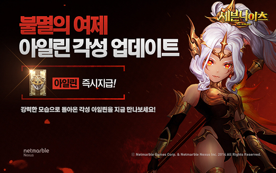 ³Ý¸¶ºí°ÔÀÓÁî(ÀÌÇÏ ³Ý¸¶ºí)´Â ¸ð¹ÙÀÏ RPG(¿ªÇÒ¼öÇà°ÔÀÓ) '¼¼ºì³ªÀÌÃ÷(°³¹ß»ç ³Ý¸¶ºí³Ø¼½º)'¿¡¼ °¢¼º '¾ÆÀϸ°'À» Ãß°¡ÇÏ´Â ¾÷µ¥ÀÌÆ®¸¦ ½Ç½ÃÇß´Ù°í 25ÀÏ ¹àÇû´Ù. ¼¼ºì³ªÀÌÃ÷ ÀÏ¿ø Áß ÇϳªÀÎ '¾ÆÀϸ°'Àº ±ä âÀ» ÀÌ¿ëÇÑ È·ÁÇÑ ¾×¼ÇÀÌ Æ¯Â¡ÀÎ ¿©Á¦ ij¸¯ÅÍ·Î, ¾Æ±º¿¡°Ô´Â °ø°Ý·Â Áõ°¡ È¿°ú¸¦ ºÎ¿©Çϰí, Àû±º¿¡°Ô´Â °¨ÀüÈ¿°ú¸¦ ÁÖ´Â °ø°ÝÀ¸·Î ÀÌ¿ëÀڵ鿡°Ô »ç¶ûÀ» ¹Þ¾Æ¿Ô´Ù. ³Ý¸¶ºí Á¤¹Î¿µ »ç¾÷ºÎÀåÀº "¼ºñ½º ÃÊ¹Ý ¾ÆÀϸ°Àº ¿©·¯ ÄÜÅÙÃ÷¿¡ Ȱ¿ëµÇ¸ç Å« »ç¶ûÀ» ¹Þ¾ÒÁö¸¸, ´Ù¾çÇÑ ¿µ¿õµéÀÇ µîÀåÀ¸·Î ÀαⰡ ÁÖÃãÇß´Ù"¸ç "¾ÆÀϸ°¡¯ÀÌ ´Ù½Ã ¡®¼¼ºì³ªÀÌÃ÷¡¯´Ù¿î ´É·ÂÀ» º¸¿©ÁÙ ¼ö ÀÖµµ·Ï À̹ø °¢¼ºÀ» ÁغñÇß´Ù"°í ¸»Çß´Ù. °¢¼ºÇÑ ¾ÆÀϸ°Àº ¾Æ±º °ø°Ý·ÂÀ» ÇÑÃþ Áõ°¡Çϰí, Àû±ºÀ» ´Ù¼ö °ø°ÝÇÏ´Â ½ºÅ³ µîÀ¸·Î ÀüÀå¿¡¼ ¿©Á¦´Ù¿î ¸ð½ÀÀ» º¸¿©ÁÙ ¿¹Á¤ÀÌ´Ù. °¢¼º ½ºÅ³Àº Àû±º Àüü¿¡°Ô Ä¡¸íÀûÀÎ ÇÇÇØ¸¦ ÀÔÈ÷´Â °ÍÀº ¹°·Ð, Àû±ºÀÇ °¢¼º ½ºÅ³À» °ßÁ¦ÇÒ ¼ö ÀÖ´Â ´É·ÂÀ» °®°í ÀÖ¾î, ´ëÀü ÄÜÅÙÃ÷¿¡¼ À§¿ëÀ» ¹ßÈÖÇÒ °ÍÀ¸·Î º¸ÀδÙ. ¾÷µ¥ÀÌÆ®¿¡ ¾Õ¼ ³Ý¸¶ºíÀº °ÔÀÓ¿¡ ¾ÆÀϸ°ÀÇ »ó¡ÀÎ 'â'À» °÷°÷¿¡ ¼û°Ü °¢¼ºÀ» ¿ìȸÀûÀ¸·Î ¿¹°íÇØ ÀÌ¿ëÀÚµéÀÇ ±â´ë¸¦ ¸ð¾Ò´Ù. °ÔÀÓ ¿ÀÇÁ´×À¸·Î´Â °¢¼ºÀ» ÇÏ°Ô µÈ ¾ÆÀϸ°ÀÇ ½ºÅ丮 ¿µ»óµµ µé¾î°¬´Ù. ³Ý¸¶ºíÀº °¢¼º ¾ÆÀϸ° µîÀåÀ» ±â³äÇØ Á¢¼Ó¸¸ ÇØµµ '¾ÆÀϸ°', '6¼º ¼¼ºì³ªÀÌÃ÷ ¹«±â ¼Òȯ±Ç', '6¼º ¼¼ºì³ªÀÌÃ÷ ¹æ¾î±¸ ¼Òȯ±Ç'À» Áö±ÞÇÏ´Â À̺¥Æ®¸¦ ½Ç½ÃÇÑ´Ù. ÇýÅÃÀ» ¹ÞÀ¸·Á¸é °ÔÀÓ ³» '¾ÆÀϸ° »óÀÚ'¸¦ ÅÍÄ¡ÇØ¾ß Çϸç, 3ÀÏ ÀÌ»ó °ÔÀÓ¿¡ Á¢¼ÓÇØ¾ß ¸ðµç º¸»óÀ» ¹ÞÀ» ¼ö ÀÖ´Ù. ¾ÆÀϸ° ½ºÆä¼È ´øÀüÀ» ¿Ï·áÇϸé '¾ÆÀϸ°ÀÇ Ã¢'°ú '¾ÆÀϸ°ÀÇ Àü¿ëÀåºñ'¸¦ ȹµæÇÒ ¼ö ÀÖ´Â À̺¥Æ®µµ ÁøÇàÇÑ´Ù. ÇÑÆí, ¼¼ºì³ªÀÌÃ÷´Â ¼³À» ¸Â¾Æ ¸ÅÀÏ Æ¯Á¤ÇÑ ½Ã°£¿¡ Á¢¼ÓÇϸé '6¼º ±¸»çȲ Àåºñ ¼Òȯ±Ç', '6¼º Àå½Å±¸ ¼Òȯ±Ç' µî Àα⠾ÆÀÌÅÛÀ» ÁõÁ¤ÇÏ´Â À̺¥Æ®¸¦ 1¿ù 23ÀϺÎÅÍ 2¿ù 1ÀϱîÁö ½Ç½ÃÇÑ´Ù. ¼³ ¿¬ÈÞ ±â°£ÀÎ 1¿ù 27ÀϺÎÅÍ 30ÀϱîÁö´Â ¸ðÇè ½ºÅ×ÀÌÁö¿¡¼ Ưº°ÇÑ ÇýÅÃÀÌ ÁÖ¾îÁö´Â 'ÇÖŸÀÓ À̺¥Æ®'°¡ ÁøÇàµÈ´Ù.