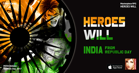 Æ®¶óÀÌÅæÀº ±Û·Î¹ú ´ëÀÛ ¸ð¹ÙÀÏ RPG '¿µ¿õÀÇ Áø°Ý'(±Û·Î¹ú ¼ºñ½º¸í : Heroes Will)ÀÇ Àεµ ¼ºñ½º¸¦ ¿À´Â 26ÀÏ Àεµ ÃÖ´ë °æÃàÀÏÀÎ ¡®Àεµ °øÈ±¹ÀÇ ³¯(Republic Day)¡¯À» ±â³äÇØ ¾ÖÇà ¾Û½ºÅä¾î¸¦ ÅëÇØ Á¤½Ä ¿ÀÇÂÇÑ´Ù°í ¹ßÇ¥Çß´Ù.