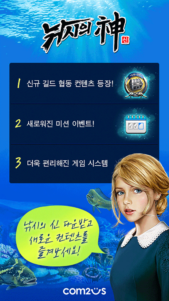 ÄÄÅõ½º´Â Àڻ簡 °³¹ßÇÏ°í ¼ºñ½ºÇÏ´Â 3D ¸®¾ó ³¬½Ã °ÔÀÓ '³¬½ÃÀÇ ½Å'¿¡¼ ±æµå Çùµ¿ ÄÜÅÙÃ÷ µî ½Å±Ô ¾÷µ¥ÀÌÆ®¸¦ ÁøÇàÇß´Ù°í ¹àÇû´Ù. ¸ÕÀú, ÀÌ¿ëÀÚ´Â ±æµå Çùµ¿ ÄÜÅÙÃ÷¸¦ ÅëÇØ ±æµå¿øµé°ú ÈûÀ» ¸ð¾Æ ³¬½Ã¸¦ Áñ±â°í ´õ¿í ´Ù¾çÇÑ ÇýÅÃÀ» ¹ÞÀ» ¼ö ÀÖ°Ô µÆ´Ù. ±æµå Çùµ¿¿¡ Âü¿©Çϱâ Àü ±æµå ³¬½ÃÅÍÀÇ ³À̵µ¸¦ ¼±ÅÃÇÒ ¼ö ÀÖÀ¸¸ç, ³ôÀº ³À̵µ¿¡¼ Ç÷¹À̸¦ Áñ°Ü °·ÂÇÑ ¹°°í±â¸¦ ÀâÀ¸¸é º¸´Ù ³ôÀº Æ÷ÀÎÆ®¸¦ ȹµæÇÒ ¼ö ÀÖ´Ù. ¾Æ¿ï·¯, ±æµå »óÀÚ º¸»óÀº ÀÚ½ÅÀÇ ·¹º§ ¹× »óÀÚ ´Ü°è¿¡ µû¶ó ´Ù¾çÇÑ ÇýÅÃÀ» ¹ÞÀ» ¼ö ÀÖÀ¸¸ç, °ÔÀÓ È¸é ³» Çùµ¿ ¾ÆÀÌÄÜÀ» ´©¸£¸é ÇöÀç º»ÀÎÀÌ ¼ÓÇÑ ±æµåÀÇ »óÀÚ µî±Þ°ú ÁøÇà »óȲÀ» ¹Ù·Î È®ÀÎÇÒ ¼ö ÀÖ´Ù. À̿ܿ¡µµ ±âÁ¸ ÀÏÀÏ ¹Ì¼Ç À̺¥Æ®°¡ »õ·Ó°Ô °³¼±µÇ¾î °ÔÀÓÀÇ Áñ°Å¿òÀ» ´õÇÑ´Ù. ¸ÅÀÏ ¿Ï·áÇØ¾ß ÇÏ´Â ÀÏÀÏ ¹Ì¼Ç¿¡¼ ÇÑ ÁÖ µ¿¾È ÁÖ¾îÁø ¹Ì¼ÇÀ» ¿Ï·áÇÏ´Â ÁÖ°£ ¹Ì¼Ç À̺¥Æ®·Î º¯°æµÇ¾úÀ¸¸ç, ÇÑ ÁÖ µ¿¾È ÀÌ¿ëÀÚ°¡ ¾ðÁ¦µçÁö ¹Ì¼ÇÀ» ¿Ï·áÇÏ°í ´Ù¾çÇÑ º¸»óÀ» ȹµæÇÒ ¼ö ÀÖ´Ù. ¶ÇÇÑ, ±æµå ÀÚµ¿ °¡ÀÔ, ÁøÁÖ º¸°üÇÔ È®Àå µî ÀÌ¿ëÀÚµéÀÇ ÆíÀǼºÀ» À§ÇÑ ¾÷µ¥ÀÌÆ®µµ ÇÔ²² ÀÌ·ïÁ³´Ù. ÇÑÆí, ¡®³¬½ÃÀÇ ½Å¡¯Àº ¿À´Â 2¿ù 1ÀÏ(¼ö)ºÎÅÍ 28ÀÏ(È)±îÁö ÇÑ ´Þ µ¿¾È dz¼ºÇÑ ¾ÆÀÌÅÛÀ» Á¦°øÇÏ´Â À̺¥Æ®¸¦ ½Ç½ÃÇÑ´Ù. 2¿ù ÇÑ ´Þ µ¿¾ÈÀÇ ´©Àû Ãâ¼®ÀÏ¿¡ µû¶ó ¸ÅÀÏ ´Ù¾çÇÑ ¾ÆÀÌÅÛÀ» ¼±¹°¹ÞÀ» ¼ö ÀÖ´Â Ãâ¼® À̺¥Æ®¿Í À̺¥Æ® ±â°£ µ¿¾È ÁÖ¾îÁø ¹Ì¼ÇÀ» ¿Ï·áÇÏ¸é ¡®°í±Þ Àåºñ ÃʱâÈ Æ¼ÄÏ¡¯, ¡®È÷µç¹Ì³¢¡¯, ¡®°í±Þ ´ë¾î È®·ü ºÎ½ºÅÍ¡¯ µî °ÔÀÓ ¾ÆÀÌÅÛÀ» ¹ÞÀ» ¼ö ÀÖ´Â ºÓÀº ´ßÀÇ Àü¼³ À̺¥Æ®°¡ ÁøÇàµÈ´Ù. ¡®³¬½ÃÀÇ ½Å¡¯Àº Áö³ 2014³â Àü¼¼°è µ¿½Ã Ãâ½ÃµÈ 3D ¸®¾ó ³¬½Ã °ÔÀÓÀ¸·Î, Áö³ ÇØ 9¿ù Àü¼¼°è ´©Àû 5,000¸¸ ´Ù¿î·Îµå¸¦ µ¹ÆÄÇϸç ÃÖ°íÀÇ ±Û·Î¹ú ³¬½Ã°ÔÀÓÀ¸·Î ÀÚ¸®¸Å±èÇß´Ù. Â¥¸´ÇÑ ¼Õ¸ÀÀ» °Á¶ÇÑ »ýµ¿°¨ ³ÑÄ¡´Â Ç÷¹ÀÌ·Î ¾Æ½Ã¾Æ, ¹Ì±¹, À¯·´ µî ´Ù¾çÇÑ ±¹°¡¿¡¼ Àα⸦ ¾ò°í ÀÖÀ¸¸ç, 86°³±¹ ¾ÖÇà ¾Û½ºÅä¾î, 32°³±¹ ±¸±ÛÇ÷¹ÀÌ ½ºÅä¾î¿¡¼ ½ºÆ÷Ã÷°ÔÀÓ ´©Àû ¸ÅÃâ 1À§¸¦ ±â·ÏÇÑ ¹Ù ÀÖ´Ù. À̹ø ¾÷µ¥ÀÌÆ® ¹× À̺¥Æ®¿¡ ´ëÇÑ ´õ¿í ÀÚ¼¼ÇÑ ³»¿ëÀº ¡®³¬½ÃÀÇ ½Å¡¯ °ø½ÄÄ«Æä(http://cafe.naver.com/fishingcom2us)¸¦ ÅëÇØ È®ÀÎÇÒ ¼ö ÀÖ´Ù.