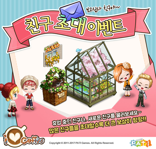 ÆÄƼ°ÔÀÓÁî´Â Àڻ簡 °³¹ß ¹× ¼ºñ½ºÇÏ´Â Ä«Æä °æ¿µ SNG '¾ÆÀÌ·¯ºêÄ¿ÇÇ'ÀÇ º½ ¸ÂÀÌ ¾÷µ¥ÀÌÆ®¸¦ ½Ç½ÃÇϰí, Ä£±¸ ÃÊ´ë º¸»ó µî ´Ù¾çÇÑ À̺¥Æ®¸¦ ÁøÇàÇÑ´Ù°í 23ÀÏ ¹àÇû´Ù. 3¿ù 22ÀϱîÁö ÁøÇàÇÏ´Â ¡®Ä£±¸ ÃÊ´ë À̺¥Æ®¡¯´Â ÃÊ´ë Ƚ¼ö¿¡ µû¶ó º½ ÀÎÅ׸®¾î ¾ÆÀÌÅÛ µî ´Ù¾çÇÑ º¸»óÀ» ¹ÞÀ» ¼ö ÀÖ´Â Çà»ç´Ù. ÃÖ±Ù 4ÁÖ °£ ¹Ì Á¢¼ÓÇÑ À¯Àú ȤÀº '¾ÆÀÌ·¯ºêÄ¿ÇÇ'¸¦ ÇÑ ¹øµµ ÀÌ¿ëÇÑ Àû ¾ø´Â À¯Àú¸¦ ´ë»óÀ¸·Î ÃÊ´ë °¡´ÉÇÏ´Ù. º¸»óÀº ÃÊ´ë Ƚ¼ö¿¡ µû¶ó 1´Ü°èºÎÅÍ 8´Ü°è±îÁö ´Ü°èº°·Î ³ª´µ¾îÁ®, ÃÖ´ë 8°³±îÁö ¹ÞÀ» ¼ö ÀÖ´Ù. º¸»óÀ¸·Î´Â º½°ú ¾î¿ï¸®´Â ÀÎÅ׸®¾î ¾ÆÀÌÅÛ, ¿øµÎÅë, ij½Ã µîÀÌ ÀÖ´Ù. º½À» ¸Â¾Æ ºù°í À̺¥Æ®µµ ÁøÇàÇÑ´Ù. ¸ÅÀÏ ¹Ì¼ÇÀ» ¿Ï·áÇÏ°í ºù°í¸¦ ¿Ï¼ºÇÏ´Â À¯Àú¿¡°Ô ½Å±Ô ¾ÆÀÌÅÛÀ» Áö±ÞÇÑ´Ù´Â ³»¿ëÀÌ´Ù. ½Å±Ô ¾ÆÀÌÅÛÀ¸·Î´Â ¡®Áö½ÄÀÇ ³ª¹« º® Ã¥À塯, ¡®Áö½ÄÀÇ ³ª¹« º¹Ãþ Ã¥À塯, ¡®Áö½ÄÀÇ ³ª¹« µ¶¼ °ø°£¡¯ µî ºÏÄ«Æä ºÐÀ§±â¸¦ ³¾ ¼ö ÀÖ´Â ÀÎÅ׸®¾î ¼ÒǰÀÌ´Ù. ÇØ´ç À̺¥Æ®´Â 3¿ù 8ÀϱîÁö ½Ç½ÃÇÑ´Ù. ÀÌ´Þ 24ÀϺÎÅÍ 26ÀϱîÁö´Â ½Å±Ô ¾ÆÀÌÅÛÀ» 50% ÇÒÀΰ¡¿¡ Á¦°øÇÏ´Â ÇÖµô Çà»ç¸¦ ÁøÇàÇÑ´Ù. À̹ø ÁÖ¸»¿¡´Â ¿øµÎ 2¹è ¼öÈ®, 3¿ù ù ÁÖ¸»¿¡´Â ¿øµÎ ·Î½ºÆÃ ½Ã°£ Àý¹Ý °¨Ãà, »çÀÌµå ¸Þ´º Á¦ÀÛ ½Ã°£ Àý¹Ý °¨Ãà À̺¥Æ®¸¦ ¿äÀÏ¿¡ µû¶ó ÁøÇàÇÒ ¿¹Á¤ÀÌ´Ù. ºÏÀ¯·´ dzÀÇ Å׸¶ ¾ÆÀÌÅÛÀ» 30% ÇÒÀΰ¡¿¡ ¼±º¸À̸ç, Á¢¼Ó ½Ã ´Ù¾çÇÑ ¼±¹°À» Á¦°øÇÏ´Â Ãâ¼® À̺¥Æ® µî À¯ÀúµéÀ» À§ÇÑ ´Ù¾çÇÑ Çà»ç¸¦ ÁøÇàÇÑ´Ù. '¾ÆÀÌ·¯ºêÄ¿ÇÇ'¿¡ ´ëÇÑ º¸´Ù ÀÚ¼¼ÇÑ »çÇ×Àº °ø½Ä Ä¿¹Â´ÏƼ(http://cafe.naver.com/patistudio)¿¡¼ È®ÀÎÇÒ ¼ö ÀÖ´Ù.
