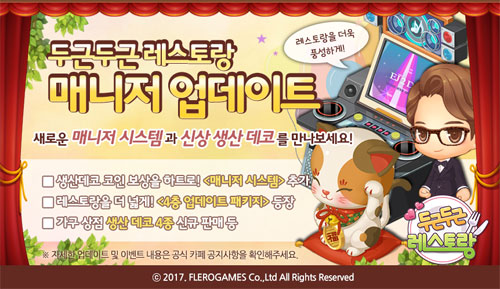 ¢ßÇ÷¹·Î°ÔÀÓÁî(´ëÇ¥ ÀÌÈ£´ë)´Â Àڻ簡 °³¹ß ¹× ¼ºñ½ºÇÏ´Â ·¹½ºÅä¶û °æ¿µ SNG < µÎ±ÙµÎ±Ù ·¹½ºÅä¶û for Kakao>ÀÇ 4Ãþ È®Àå ¾÷µ¥ÀÌÆ®¸¦ ½Ç½ÃÇÑ´Ù°í 24ÀÏ(±Ý) ¹àÇû´Ù.