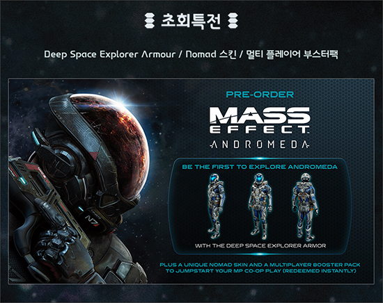 °ÔÀÓÇǾƴ EA(Electronic Arts)¿Í Çù·ÂÇÏ¿©, BioWare°¡ °³¹ßÇÑ ¸Å½º ÀÌÆåÆ® ½Ã¸®ÁîÀÇ ÃÖ½ÅÀÛ ¡®¸Å½º ÀÌÆåÆ®: ¾Èµå·Î¸Þ´Ù (Mass Effect: Andromeda )¡¯ÀÇ PlayStation¢ç4, Xbox One¢ç, PC CIB ¹öÀüÀÇ ¿¹¾àÆÇ¸Å¸¦ ¿À´Â 3¿ù 10ÀϺÎÅÍ ½ÃÀÛÇÑ´Ù°í ¹àÇû´Ù.