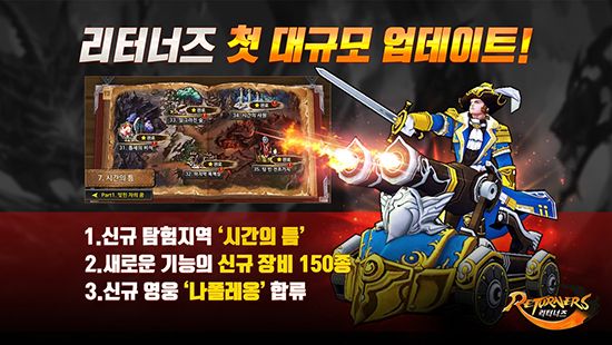 ³Ø½¼Àº 17ÀÏ Àڻ簡 ¼ºñ½ºÇÏ´Â ¸ð¹ÙÀÏ ¸Å´ÏÁö¸ÕÆ® RPG ¡®¸®ÅͳÊÁ¿¡ ù ´ë±Ô¸ð ¾÷µ¥ÀÌÆ®¸¦ ½Ç½ÃÇß´Ù°í ¹àÇû´Ù. À̹ø ¾÷µ¥ÀÌÆ®·Î °ø°³µÈ ½Å±Ô ŽÇèÁö¿ª ¡®7Àå-½Ã°£ÀÇ Æ´¡¯Àº À¯ÀúµéÀÇ ¼ºÃë¿åÀ» ÀÚ±ØÇÏ´Â °í³µµ ŽÇèÁö¿ªÀ¸·Î ÃÑ 5éÅÍ, 50½ºÅ×ÀÌÁö·Î ÀÌ·ïÁ³´Ù. ÀÌ Áö¿ª¿¡¼´Â Àü¼úÆÇÀ» Á¤±³ÇÏ°Ô È°¿ëÇϰí, ÀûÀÇ Æ¯¼º¿¡ µû¶ó ´É·ÂÄ¡¸¦ Á¶Á¤ÇØ¾ß ÇÏ´Â µî ½ºÅ×ÀÌÁö ¿Ï·á¸¦ À§ÇØ À¯ÀúµéÀÌ ´Ù¾çÇÑ °ø·«À» °í¹ÎÇÒ ¼ö ÀÖµµ·Ï ¼³°èµÆ´Ù. ¶Ç, ¡®¾ÏÈæ±â»ç ¼¼Æ®¡¯, ¡®Ã¨Çǿ ¼¼Æ®¡¯, ¡®·±Ã³ ¼¼Æ®¡¯ µî ½Å±Ô Àü¼³ Àåºñ ¼¼Æ®´Â ¡®½ºÅ³ °ø°Ý·Â Áõ°¡¡¯, ¡®±ºÁß Á¦¾î È¿°ú¡¯ µî »õ·Î¿î ¿É¼ÇÀ» Á¦°øÇÑ´Ù. ÅÊÄ¿¿Í ¼Æ÷ÅÍ¿¡°Ô ÃÖÀûÈµÈ ¼¼Æ®»Ó¸¸ ¾Æ´Ï¶ó ±Ù/¿ø°Å¸® µô·¯ Àåºñ¿¡ ¡®¸¶¹ý °ø°Ý·Â¡¯À» ºÎ¿©ÇÏ¿©, ¡®¹°¸®¡¯¿Í ¡®¸¶¹ý¡¯ °ø°ÝÀ» µ¿½Ã¿¡ ±¸»çÇÏ´Â ÇÏÀ̺긮µåÇü ¿µ¿õµé¿¡°Ô À¯¿ëÇÑ Àåºñ¸¦ ´ë°Å Æ÷ÇÔÇß´Ù. ÀÌ¿Í ÇÔ²² ½Å±Ô ¿µ¿õ ¡®³ªÆú·¹¿Ë¡¯µµ °ø°³Çß´Ù. ¹üÀ§°ø°ÝÇü ¿µ¿õÀÎ ¡®³ªÆú·¹¿Ë¡¯Àº ÀûÀ» Áï»ç½ÃŰ´Â ±Ã±Ø½ºÅ³ ¡®Çõ¸íÀÇ Æ÷ꡝÀ» ÀåÂøÇÑ Ä³¸¯ÅÍ·Î, ÀûÀ» ¹°¸®Ä¡¸é °ø°Ý·ÂÀÌ Å©°Ô »ó½ÂÇÏ´Â Áö¿øÈ¿°ú¸¦ ¹ßÈÖÇÏ¿© ºÒ¸®ÇÑ ÀüÅõ »óȲ¿¡¼ ÀϹ߿ªÀüÀÇ Äè°¨À» Á¦°øÇϴ ij¸¯ÅÍ´Ù. ÀÌ ¹Û¿¡µµ ³Ø½¼Àº ¡®·ÎºóÈĵ塯¿Í ¡®¼³³à¡¯ÀÇ ¿µ¿õ ½ºÅ²À» °ø°³Çϰí, ¿µ¿õ °£ ¡®Àåºñ ±³È¯¡¯ ½Ã½ºÅÛÀ» Àû¿ëÇß´Ù. À̹ø ¾÷µ¥ÀÌÆ®¿¡ °üÇÑ º¸´Ù ÀÚ¼¼ÇÑ ³»¿ëÀº ¡®¸®ÅͳÊÁ °ø½Ä ȨÆäÀÌÁö(http://rt.nexon.com)¿Í °ø½ÄÄ«Æä(http://cafe.naver.com/returnheroes)¸¦ ÅëÇØ È®ÀÎÇÒ ¼ö ÀÖ´Ù.