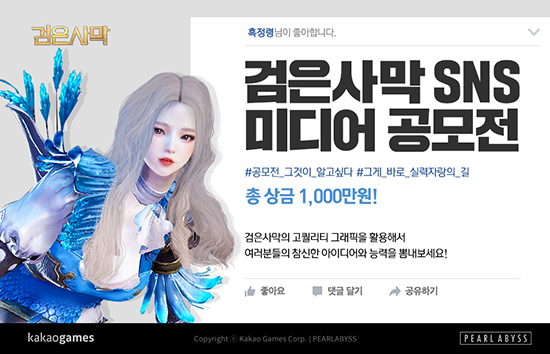 ÆÞ¾îºñ½º°¡ °³¹ßÇÏ°í ±Û·Î¹ú ¸ÖƼÇ÷§Æû °ÔÀÓ ±â¾÷ īī¿À°ÔÀÓÁî¿¡¼ ¼ºñ½º ÁßÀÎ MMORPG '°ËÀº»ç¸·'ÀÌ 30ÀÏ(¸ñ), ¡®SNS ¹Ìµð¾î °ø¸ðÀü¡¯À» ½ÃÀÛÇß´Ù. ÃÑ »ó±Ý 1õ ¸¸¿ø ±Ô¸ðÀÇ À̹ø °ø¸ðÀüÀº ÀÌ¿ëÀÚµéÀÇ ¹ø¶àÀÌ´Â ¾ÆÀ̵ð¾î¸¦ ¸ð¾Æ '°ËÀº»ç¸·'ÀÇ Àç¹Ì¸¦ º¸´Ù ³Î¸® ¾Ë¸®±â À§ÇØ ¸¶·ÃµÆÀ¸¸ç, ¿µ»ó, À̹ÌÁö µî µÎ °³ ºÎ¹®À¸·Î ³ª´µ¾î ¿À´Â 5¿ù 31ÀÏ(¼ö)±îÁö ÁøÇàµÈ´Ù. ¿µ»ó ºÎ¹® Âü°¡ Èñ¸ÁÀÚµéÀº '°ËÀº»ç¸·'ÀÇ ÀÚ¶ûÀÎ ÃÖ°í±Þ ±×·¡ÇȰú ´Ù¾çÇÑ ÄÜÅÙÃ÷¸¦ °Á¶Çϰųª ¿µÈ, ¿¹´É ÇÁ·Î±×·¥ µîÀ» ÆÐ·¯µðÇÑ ºê·£µù ¿µ»óÀ» Á¦ÀÛÇØ¾ß ÇÑ´Ù. À̹ÌÁö ºÎ¹®ÀÇ ÁÖÁ¦´Â ½ÇÁ¦ Àι°°ú À¯»çÇÏ°Ô ±¸ÇöÇÑ Ä³¸¯ÅÍ Ä¿½ºÅ͸¶ÀÌ¡, '°ËÀº»ç¸·' ¼Ó ¾Æ¸§´Ù¿î dz°æ µîÀÌ´Ù. ¿µ»ó ȤÀº À̹ÌÁö¸¦ Á¦ÀÛÇÑ ÀÌ¿ëÀÚµéÀº ÀÚ½ÅÀÇ ÆäÀ̽ººÏ¿¡ ÇØ½Ã ÅÂ±× ¡®#°ËÀº»ç¸· #ûÃá·Îµå°ø¸ðÀü #°ÔÀÓ¡¯°ú ÇÔ²² Àüü °ø°³·Î ¿Ã¸° µÚ, ¿øº» ÆÄÀϰú °Ô½Ã¹° URLÀ» À̸ÞÀÏ(daumgame_event@kakaocorp.com)·Î Á¦ÃâÇÏ¸é µÈ´Ù. īī¿À°ÔÀÓÁî´Â ÀÀ¸ðÀÛµéÀ» ´ë»óÀ¸·Î °øÁ¤ÇÑ ½É»ç¸¦ ÁøÇàÇÑ µÚ ºÎ¹® º° ´ë»ó, ÃÖ¿ì¼ö»ó, ¿ì¼ö»ó µî ¼ö»óÀÚ¸¦ ¼±Á¤ÇØ, ÃÖ°í 300¸¸¿øÀÇ »ó±ÝÀ» ¼ö¿©ÇÒ °èȹÀÌ´Ù. ¼ö»óÀÚ´Â 6¿ù 16ÀÏ(±Ý)¿¡ °ø½Ä ȨÆäÀÌÁö¸¦ ÅëÇØ ¹ßÇ¥µÈ´Ù. À̹ø °ø¸ðÀü°ú '°ËÀº»ç¸·'¿¡ ´ëÇÑ ¼¼ºÎ ³»¿ëÀº °ø½Ä ȨÆäÀÌÁö(http://black.game.daum.net)¿¡¼ È®ÀÎÇÒ ¼ö ÀÖ´Ù. ÇÑÆí, '°ËÀº»ç¸·'Àº 30ÀÏ(¸ñ) ¾÷µ¥ÀÌÆ®¸¦ ÅëÇØ, ´ëÀü »ó´ëÀÇ Á¤º¸¸¦ ÆÄ¾ÇÇØ Àü·«ÀûÀÎ Ç÷¹À̰¡ °¡´ÉÇϵµ·Ï ¡®¾Æ¸£»þÀÇ Ã¢¡¯ ³» UI¸¦ °³¼±Çϰí, ¡®¾Æ·¹ÇÏÀÚ °ø¹æ¡¯¿¡ ¡®¾Æ·¹ÇÏÀÚ ¹Ý´Þ Ä«Æê¡¯, ¡®¾Æ·¹ÇÏÀÚ ¿øÇü Ä«Æê¡¯, ¡®»ç¸· Æ÷°Ç ȺС¯ µî ÇÏ¿ì¡ Á¦ÀÛǰµµ Ãß°¡Çß´Ù. ±×¸®°í, īī¿À°ÔÀÓÁî´Â ÀÌ´Þ 31ÀÏ(±Ý)ºÎÅÍ ¡®º¢²É ¸ÂÀÌ PC¹æ À̺¥Æ®¡¯¸¦ ÁøÇàÇØ, Àü±¹ÀÇ ´ÙÀ½ °ÔÀÓ ÇÁ¸®¹Ì¾ö PC¹æ¿¡¼ '°ËÀº»ç¸·' ÀÌ¿ëÀڵ鿡°Ô ¡®º£´Ï¾Æ ½Â¸¶º¹ ÀÇ»ó »óÀÚ(7ÀÏ)¡¯, ¡®¶ó¸£ ¾Æ½ÃÇî ¹«±â, ÀÇ»ó »óÀÚ(7ÀÏ)¡¯, ¡®¹ë·ù ÆÐŰÁö(7ÀÏ)¡¯ µîÀ» ¹ÞÀ» ¼ö ÀÖ´Â ¡®VIP °¨»ç ÄíÆù¡¯À» ¹èÆ÷Çϰí, ÇÑ ½Ã°£ Áñ±æ ¶§ ¸¶´Ù ¡®¹ßÅ©½ºÀÇ ¿Üħ¡¯ ¾ÆÀÌÅÛÀ» Çϳª¾¿ Áö±ÞÇÑ´Ù. 2016³â 3¿ù ºÏ¹Ì-À¯·´ ¼ºñ½º¸¦ ½ÃÀÛÇÑ '°ËÀº»ç¸·'Àº ºÏ¹Ì ÃÖ´ë °ÔÀÓ»çÀÌÆ® 'MMORPG ´åÄÄ' ³» 1³â°£ ÃÖ°í Àα⠰ÔÀÓ 1À§¸¦ ±â·ÏÇßÀ¸¸ç, ¡®MMORPG´åÄÄ¡¯ÀÌ »ÌÀº ¡®°ÔÀÓ½ºÄÄ 2016 ¾î¿öµå¡¯¿¡¼ ÃÖ°íÀÇ MMORPG¿Í ÃÖ°íÀÇ ºÎ½º·Î ¼±Á¤µÇ¸ç ±× Àα⸦ ÀÔÁõÇß´Ù.