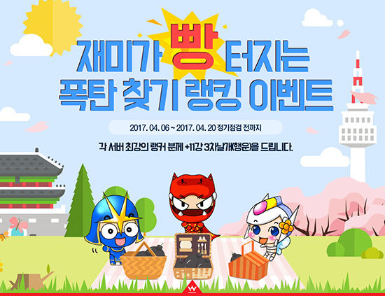 À¥Á¨ÀÇ ´ëÇ¥ PC MMORPG ¡®¹Â ¿Â¶óÀΡ¯ÀÌ 4¿ùÀ» ¸Â¾Æ »õ·Ó°Ô Ãß°¡µÈ ¡®¹Ã¡¯À» °ø°³Çϰí, ¡®ÆøÅºÃ£±â¡¯ À̺¥Æ®¸¦ ½ÃÀÛÇÑ´Ù. À¥Á¨Àº ³»ÀÏ(4¿ù 6ÀÏ)ºÎÅÍ 4¿ù 20ÀϱîÁö ¾à 2ÁÖ µ¿¾È '¹Â ¿Â¶óÀÎ'¿¡ ÇÁ¸®¹Ì¾ö ¹ÃÀÎ 'ÈæÇ¥¹ü'°ú ÀÏ¹Ý ¹ÃÀÎ '¸¾¸ð½º', '¿öÄ¿'¸¦ Ãß°¡Çϰí, °ÔÀÓ ³» ¹Ì´Ï°ÔÀÓÀ» Áñ±â¸é ´Ù¾çÇÑ ¹Ã°ú °ÔÀÓ ¾ÆÀÌÅÛÀ» ¾òÀ» ¼ö ÀÖ´Â ¡®ÆøÅºÃ£±â¡¯ À̺¥Æ®¸¦ ÁøÇàÇÑ´Ù. ÇÁ¸®¹Ì¾ö ¹ÃÀÎ ¡®ÈæÇ¥¹ü¡¯À» ºñ·ÔÇØ ÀÏ¹Ý ¹ÃÀÎ ¡®¸¾¸ð½º¡¯¿Í ¡®¿öÄ¿¡¯´Â ƯÁ¤ ¿äÀÏÀ̳ª ½Ã°£´ë¿¡ µû¶ó ij¸¯ÅÍÀÇ °ø°Ý·Â°ú ¸¶·Â ¹× ¹ÃÀÇ ½ºÅ³ »ç¿ë¼Óµµ µîÀ» ¿Ã·ÁÁÖ´Â ±âº»´É·ÂÀ» °¡Á³´Ù. ¶ÇÇÑ ¼¼ °¡Áö ¹ÃÀ» ȹµæÇÒ °æ¿ì, 30ÀÏ °£ ¹ÃÀÇ ±âº»´É·ÂÀÌ ÃÖ´ë 20¹è±îÁö ³ô¾ÆÁø´Ù. °ÔÀÓ È¸¿øµéÀº ¡®¹Â ¿Â¶óÀΡ¯¿¡¼ »ç³ÉÀ» µ½´Â ÀÏÁ¾ÀÇ ÆêÀÎ ¡®¹Ã¡¯ÀÇ ¿©·¯ Ư¼ºÀ» Ȱ¿ëÇØ ÀüÅõ¸¦ À¯¸®ÇÏ°Ô Áñ±æ ¼ö ÀÖÀ¸¸ç, ¡®ÆøÅºÃ£±â¡¯ À̺¥Æ®ÀÇ º¸»óÀ¸·Î ÁÖ¾îÁø ¡®¹Ã¾Ë¡¯¿¡¼ ÀÏ¹Ý ¹ÃÀ» ȹµæÇÒ ¼ö ÀÖ´Ù. ¡®ÆøÅºÃ£±â¡¯´Â ¸ó½ºÅ͸¦ »ç³ÉÇØ ¼öÁýÇÑ Ä«µå Á¶°¢À¸·Î ¹Ì¸® Á¤ÇØÁø ÆøÅºÀ» ã´Â ¹Ì´Ï°ÔÀÓÀ¸·Î °¢Á¾ »ç³ÉÅÍ¿¡¼ ±¸ÇÒ ¼ö ÀÖ´Â ÆøÅºÄ«µå Á¶°¢ 24°³¸¦ ¸ð¾Æ 'Ä«µå ¹À½'À» ¸¸µé¸é Âü¿©°¡ °¡´ÉÇÏ´Ù. 9ÄÀ¸·Î ±¸¼ºµÈ »ç°¢Çü Áß ÇÑ °÷À» Ŭ¸¯ÇØ Æ¯Á¤ ¼ýÀÚ¸¦ ãÀº µÚ ÇØ´ç ¼ýÀÚ¸¸Å ÁÖº¯¿¡ ¼û°ÜÁø ÆøÅºÀ» ãÀ¸¸é Á¡¼ö¸¦ ¾òÀ» ¼ö ÀÖ´Ù. °ÔÀÌ¸Ó´Â ÆøÅºÀÌ ¼û°ÜÁ® ÀÖ´Ù°í »ý°¢µÇ´Â »ç°¢Çü¿¡ ¸¶¿ì½º ¿À¸¥ÂÊ ¹öưÀ» Ŭ¸¯ÇØ ÆøÅºÄ«µå¸¦ ¼¼¿ì¸é µÈ´Ù. À¥Á¨Àº ¡®ÆøÅºÃ£±â¡¯ °ÔÀÓ¿¡¼ ȹµæÇÑ Á¡¼ö¿¡ µû¶ó ƯÁ¤ Á¡¼ö´ë º°·Î ¡®¹Ã¾Ë¡¯, ¡®º¸¼®¹À½¡¯, ¡®ºûÀÇÃູ¡¯ µî ´Ù¾çÇÑ ¾ÆÀÌÅÛµé Áß 1°³¸¦ º¸»óÀ¸·Î Á¦°øÇÑ´Ù. À̿ܿ¡µµ ¡®ÆøÅºÃ£±â Á¡¼ö¡¯¸¦ ±âÁØÀ¸·Î °¢ ¼¹öÀÇ 1À§ºÎÅÍ 50À§±îÁöÀÇ »óÀ§ ȸ¿øµé¿¡°Ô '+11 3Â÷ ³¯°³(Çà¿î)', '50,000·çµå', '»ó½ÂÀÇ ºÎÀûI' µî °ÔÀÓ ³» °í±Þ ¾ÆÀÌÅÛµéÀ» Â÷µî Áö±ÞÇÏ´Â ¡®ÆøÅºÃ£±â Á¡¼ö ·©Å· À̺¥Æ®¡¯¸¦ ÁøÇàÇÑ´Ù. ÇØ´ç À̺¥Æ®´Â ¹Â ¿Â¶óÀÎ Å×½ºÆ® ¼¹ö/¹Â ºí·ç ¾ÆÀ̽º ¼¹ö¸¦ Á¦¿ÜÇÑ ¸ðµç ¼¹öÀÇ È¸¿øµéÀÌ Âü¿©ÇÒ ¼ö ÀÖÀ¸¸ç, À̺¥Æ®ÀÇ ´ç÷ÀÚ´Â 4¿ù 18Àϰú 4¿ù 25ÀÏ¿¡ °¢°¢ °ø°³µÉ ¿¹Á¤ÀÌ´Ù. À¥Á¨ÀÇ ´ëÇ¥ PC MMORPG ¡®¹Â ¿Â¶óÀΡ¯ÀÇ 4¿ù ¸ÂÀÌ ¡®ÆøÅºÃ£±â¡¯ À̺¥Æ®¿¡ ´ëÇÑ º¸´Ù ÀÚ¼¼ÇÑ Á¤º¸´Â °ø½Ä ȨÆäÀÌÁö(http://www.muonline.co.kr)¿¡¼ È®ÀÎÇÒ ¼ö ÀÖ´Ù.