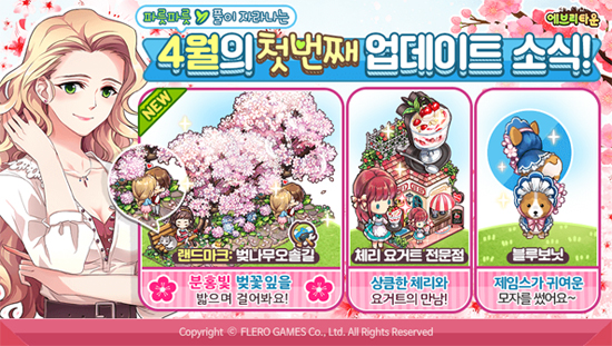 Ç÷¹·Î°ÔÀÓÁî´Â 5ÀÏ(¼ö), Àڻ簡 °³¹ß ¹× ¼ºñ½ºÇÏ´Â °¨¼º SNG '¿¡ºê¸®Å¸¿î for Kakao'ÀÇ 4¿ù ù ¹øÂ° ¾÷µ¥ÀÌÆ®¸¦ ½Ç½ÃÇÑ´Ù°í ¹àÇû´Ù. º¢²É ½ÃÁðÀÎ 4¿ùÀ» ¸Â¾Æ ÁøÇàµÇ´Â ±Ý¹ø ¾÷µ¥ÀÌÆ®´Â ¾÷±×·¹ÀÌµå µÉ¼ö·Ï º¢³ª¹«°¡ Ä¿Áö´Â ¡®·£µå¸¶Å©: º¢³ª¹« ¿À¼Ö±æ¡¯°ú »óÅÇÑ Ã¼¸®¿Í ¿ä°ÅÆ®¸¦ Àç·á·Î »ç¿ëÇØ ¿ä¸®¸¦ ¸¸µé ¼ö ÀÖ´Â ¡®Ã¼¸® ¿ä°ÅÆ® Àü¹®Á¡¡¯ÀÇ Ãß°¡¸¦ °ñÀÚ·Î Çϰí ÀÖ´Ù. ¶ÇÇÑ Àϼյ½±â º¸³Ê½º¿Í »ý»ê °æÇèÄ¡¸¦ Áõ°¡½ÃŰ´Â ±â´ÉÀ» °¡Áø »õ·Î¿î ºô¸®Àú º¹Àå ¡®ºí·ç º¸´Ö¡¯µµ Ãß°¡µÈ´Ù. '¿¡ºê¸®Å¸¿î for Kakao'´Â 4¿ù ¾÷µ¥ÀÌÆ®¸¦ ¸Â¾Æ ÀÌ¿ëÀÚ ´ë»ó À̺¥Æ®¸¦ ÁøÇàÇÑ´Ù. ¡®Ã¼¸® ¿ä°ÅÆ® Àü¹®Á¡¡¯À» 2°³ ÀÌ»ó ¸¶À»¿¡ ¼³Ä¡ÇÒ °æ¿ì 1°³¸¦ Ãß°¡·Î Áö±Þ¹ÞÀ» ¼ö ÀÖ´Â ¡®2+1 À̺¥Æ®¡¯, ±×¸®°í VIP ¹× Á¶ÇÕ¿ø ÆÐŰÁö ±¸¸Å ½Ã 20%ÀÇ ½Ãµå¸¦ Ãß°¡·Î Áö±ÞÇÏ´Â À̺¥Æ®°¡ ¿À´Â 4¿ù 10ÀϱîÁö ÁøÇàµÉ ¿¹Á¤ÀÌ´Ù. ¶ÇÇÑ ½Ä¸ñÀÏ¿¡ Á¢¼ÓÇÑ ÀÌ¿ëÀÚ Àü¿ø¿¡°Ô´Â ¡®ÇÏ¾ç ¹éÀÏÈ« ³ª¹«¡¯ ¾ÆÀÌÅÛÀ» Áö±ÞÇÏ´Â ½Ä¸ñÀÏ Á¢¼Ó À̺¥Æ®µµ ÇÔ²² ÆîÃÄÁø´Ù. °ÔÀÓ ¼ºñ½º 4ÁÖ³âÀ» ¸ÂÀº '¿¡ºê¸®Å¸¿î for Kakao'´Â ÄÜÅÙÃ÷ ¾÷µ¥ÀÌÆ® À̺¥Æ®¿Í ÇÔ²² 4Áֳ⠸ÂÀÌ ´Ù¾çÇÑ À̺¥Æ®¸¦ ÁøÇàÇϰí ÀÖ´Ù. ¿À´Â 4¿ù 20ÀϱîÁö °ÔÀÓ 4ÁÖ³â Æ¯¼³ ºê·£µå ÆäÀÌÁö(http://www.flerogames.com/every4th )¿¡ Á¢¼ÓÇØ À̺¥Æ®¿¡ ÀÀ¸ðÇÒ °æ¿ì, °ÔÀÓ ÀçÈ¿Í ¾ÆÀÌÅÛÀ» 100% Áö±Þ¹ÞÀ» ¼ö ÀÖÀ¸¸ç, Ç÷¹·Î°ÔÀÓÁî´Â À̺¥Æ® Á¾·á ÈÄ¿¡´Â ÀÀ¸ðÀÚ Áß Ãß÷À» ÅëÇØ ¹éÈÁ¡ »óǰ±Ç ±âÇÁƼÄÜÀ» ÁõÁ¤ÇÒ ¿¹Á¤ÀÌ´Ù. ¶ÇÇÑ °ÔÀÓ ³» Ä£±¸ÀÇ ¸¶À»¿¡¼ 4ÁÖ³â ÄÉÀÍÀ» ¸ð¾Æ¼ ÆÇ¸ÅÇÒ °æ¿ì ¾ÆÀÌÅÛÀ» Áö±ÞÇÏ´Â ¡®4ÁÖ³â ÄÉÀÍ À̺¥Æ®¡¯, ±Í¿©¿î µðÀÚÀÎÀ¸·Î ¸¹Àº Àα⸦ ¾ò°í Àִ ij¸¯ÅÍ ¡®¸ô¶û¡¯ ¾ÆÀÌÅÛ ±¸¸Å ½Ã Ãß÷À» ÅëÇØ ij¸¯ÅÍ »óǰÀ» Áö±ÞÇÏ´Â À̺¥Æ®µµ ÇÔ²² ÁøÇàµÇ°í ÀÖ´Ù. ¡®º½ÀÇ ³²ÀÚ¡¯ ·ÎÀÌÅ´À» È«º¸ ¸ðµ¨·Î ¼±Á¤ÇØ À̺¥Æ®¸¦ ÁøÇàÇϰí ÀÖ´Â '¿¡ºê¸®Å¸¿î for Kakao'¿¡ ´ëÇÑ º¸´Ù ÀÚ¼¼ÇÑ ¼Ò½ÄÀº ³×À̹ö °ø½Ä Ä«Æä(http://cafe.naver.com/everytownforyou )¿¡¼ È®ÀÎÇÒ ¼ö ÀÖ´Ù.