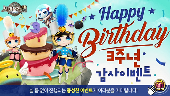 ÄÄÅõ½º´Â ±Û·Î¹ú ÅéŬ·¡½º RPG(¿ªÇÒ¼öÇà°ÔÀÓ) ¡®¼¸Ó³ÊÁî ¿ö: õ°øÀÇ ¾Æ·¹³ª¡¯(ÀÌÇÏ ¡®¼¸Ó³ÊÁî ¿ö¡¯)ÀÇ Ãâ½Ã ¼¼ µ¹À» ±â³äÇØ ´Ù¾çÇÑ °¨»ç À̺¥Æ®¸¦ ¸¶·ÃÇÑ´Ù. Áö³ 2014³â 4¿ù ±¹³» ù ¼±À» º¸ÀÎ ¡®¼¸Ó³ÊÁî ¿ö¡¯´Â ÃÖ±Ù 3³â µ¿¾È ±¹³»¿Ü¿¡¼ ¼º°øÀûÀÎ ¼ºñ½º¸¦ À̾¸ç Çѱ¹À» ´ëÇ¥ÇÏ´Â ±Û·Î¹ú °ÔÀÓÀ¸·Î ÀÚ¸®Çß´Ù. ƯÈ÷ Áö±Ý±îÁö ´©Àû 7,000¸¸ °ÇÀÌ ³Ñ´Â ´Ù¿î·Îµå¸¦ ±â·ÏÇϰí, ÃÖ±Ù¿¡´Â ±¹³» ¸ð¹ÙÀÏ °ÔÀÓ ÃÖÃÊ, ±¹³» °ÔÀÓ »ç»ó ÃÖ´Ü ±â°£ 1Á¶ ¿ø µ¹ÆÄ¶ó´Â Áø±â·ÏÀ» ¼¼¿ì¸ç Çѱ¹ °ÔÀÓ ¿ª»ç¸¦ »õ·Ó°Ô ½á³»·Á °¡°í ÀÖ´Ù. ÀÌ¿¡ ÄÄÅõ½º´Â ¿À´Â 17ÀÏ(¿ù) Ãâ½Ã 3ÁÖ³âÀ» ¾ÕµÐ ¡®¼¸Ó³ÊÁî ¿ö¡¯ÀÇ À¯Àúµé¿¡°Ô °¨»çÀÇ ¸¶À½À» ÀüÇϰí ÇØ´ç ±â°£ µ¿¾È dz¼ºÇÑ ÇýÅÃÀ» Áñ±æ ¼ö ÀÖµµ·Ï ´Ùä·Î¿î ÇüÅÂÀÇ À̺¥Æ®¸¦ ÁøÇàÇÑ´Ù. ¿ì¼± ¿À´Ã(10ÀÏ)ºÎÅÍ ¿À´Â 30ÀϱîÁö ¾à 20Àϰ£ °ÔÀÓ ³» À̺¥Æ® ÆäÀÌÁö¸¦ ÅëÇØ ¡®3ÁÖ³â ÄÚÀÎ À̺¥Æ®¡¯°¡ ÆîÃÄÁø´Ù. ÇØ´ç ±â°£ µ¿¾È ¿¡³ÊÁö »ç¿ë, ¾Æ·¹³ª ÃâÀü, ¸ó½ºÅÍ ¼Òȯ, Ãâ¼®ÇÏ±â µî ´Ù¾çÇÑ ¹Ì¼ÇÀ» ´Þ¼ºÇÏ°í °¢ ¹Ì¼Çº° 3ÁÖ³â ÄÚÀÎÀ» ¼öÁýÇϸé, ÇØ´ç ÄÚÀÎÀ¸·Î °ÔÀÓ¿¡¼ »ç¿ëÇÒ ¼ö ÀÖ´Â ¾ÆÀÌÅÛÀ¸·Î ±³È¯ÇÒ ¼ö ÀÖ´Ù. ÄÚÀÎÀº À̺¥Æ® ÆäÀÌÁöÀÇ ¡®½ºÆä¼È ¸¶¹ý»óÁ¡¡¯À» ÅëÇØ Å©¸®½ºÅ», Àü¼³ÀÇ ¼Òȯ¼, ½ÅºñÀÇ ¼Òȯ¼, ·é ¿¬¼º¼®, °¢ÀÎµÈ ¼Òȯ¼® µîÀ¸·Î ±³È¯ °¡´ÉÇÏ´Ù. ¶Ç ¡¯Àü¼³ÀÇ ·é ´ëÀåÀåÀÌ¡¯ ¸Þ´º¸¦ ÅëÇØ ÄÚÀÎÀ¸·Î 5~6¼ºÀÇ Èñ±Í µî±Þ ÀÌ»óÀÇ ·éµµ Á¦ÀÛÇÒ ¼ö ÀÖ´Ù. ´õºÒ¾î ¿£Á©¸ó, ¹«Áö°³¸ó, µ¥ºô¸ó ´øÀüÀÌ ¿À´Â 14ÀϺÎÅÍ 16ÀϱîÁö ´Ü 3Àϰ£ ¿ÀǵȴÙ. ¿À´Â 23ÀϱîÁö ÁÖ¸» µ¿¾È °æÇèÄ¡¿Í ¸¶³ª¼®À» µ¿½Ã¿¡ 2¹è ȹµæÇÒ ¼ö ÀÖ´Â ´õºí ¹ö´× ŸÀÓ À̺¥Æ®°¡ ÁøÇàµÇ¸ç ¸ÅÀÏ ÀÏÁ¤ÇÑ ½Ã°£¿¡ Á¢¼ÓÇÏ¸é ¿¡³ÊÁö 30°³°¡ Áö±ÞµÇ°í ¼Ò¿øºô±âµµ ÃÖ´ë 5¹ø±îÁö ÇÒ ¼ö ÀÖ´Ù. ¿À´Â 15ÀÏ¿¡´Â ¹«ÇÑ ¿¡³ÊÁö ŸÀÓ À̺¥Æ®, 22ÀÏ¿¡´Â Á¤¼ö 2¹è ŸÀÓ À̺¥Æ®µµ ¸¶·ÃµÈ´Ù. ÀÌ ¹Û¿¡µµ ÄÄÅõ½º´Â ¿À´Â 23ÀÏ(ÀÏ) Ãâ½Ã 3ÁÖ³âÀ» ±â³äÇØ °¨»çÀÇ ¸¶À½À» ´ãÀº À¯Àú ÃÊû Çà»ç ¡®´õ ¼¸Ó³ÊÁî ÆÄÆ¼¡¯¸¦ °³ÃÖÇÑ´Ù. ¿À´Â 16ÀÏ(ÀÏ)±îÁö ½ÅûÇÑ Âü°¡Èñ¸ÁÀÚ Áß Ãß÷À» ÅëÇØ ÃÑ 200¸íÀ» Çà»ç¿¡ ÃÊûÇϰí, ÇâÈÄ ¾÷µ¥ÀÌÆ® ÄÜÅÙÃ÷ ¹× ¿î¿µ ¹æÇâ ¼Ò°³ ¹× °³¹ßÁø°úÀÇ Àû±ØÀûÀÎ ÁúÀÇ ÀÀ´äÀ» ÅëÇØ ¼ÒÅëÀÇ ÀåÀ» ¸¶·ÃÇÑ´Ù. ¾Æ¿ï·¯ ±¹³» Åé ·©Ä¿ Ç÷¹À̾îµéÀÇ ¿ùµå ¾Æ·¹³ª À̺¥Æ® ´ëÀü°ú ÄûÁî, °æÇ° Ãß÷ µî ´Ù¾çÇÑ À̺¥Æ®·Î ¸ðµÎ°¡ ÇÔ²² Áñ±â´Â ÃàÁ¦ÀÇ ÀåÀ» ÆîÄ¥ ¿¹Á¤ÀÌ´Ù. °ÔÀÓ°ú À̹ø 3Áֳ⠰¨»ç À̺¥Æ® ¹× À¯Àú ÃÊû Çà»ç¿¡ °üÇÑ ´õ¿í ÀÚ¼¼ÇÑ ³»¿ëÀº ¡¯¼¸Ó³ÊÁî ¿ö¡¯ °ø½Ä Ä«Æä(http://cafe.naver.com/smonwar)¸¦ ÅëÇØ È®ÀÎ °¡´ÉÇÏ´Ù.