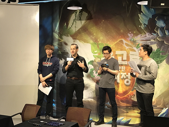 ºí¸®ÀÚµå ¿£ÅÍÅ×ÀÎ¸ÕÆ®(Blizzard Entertainment, Inc. www.blizzard.com)ÀÇ Ã¹ ½º¸¶Æ®Æù °ÔÀÓÀÌÀÚ ¼¼°èÀûÀ¸·Î Å« Àα⸦ ²ø°í ÀÖ´Â µðÁöÅÐ Àü·« Ä«µå °ÔÀÓ ÇϽº½ºÅæ(Hearthstone¢â)ÀÇ ½Å±Ô È®ÀåÆÑ ¡®¿î°í·Î¸¦ ÇâÇÑ ¿©Á¤(Journey to Un¡¯Goro¢â)¡¯ Ãâ½Ã¸¦ ±â³äÇÏ´Â ¡®¿Í±Û¿Í±Û ÇϽº½ºÅ桯ÀÌ Áö³ 4¿ù 7ÀÏ(±Ý)°ú 8ÀÏ(Åä) ¾çÀÏ¿¡ °ÉÃÄ ¼¿ï ½ÅÃÌ¿¡ À§Ä¡ÇÑ ¸£È£º¿G Ä·ÆÛ½º¿¡¼ 200¿©¸íÀÇ ÆÒµéÀÌ Âü¼®ÇÑ °¡¿îµ¥ ¼ºÈ²¸®¿¡ ¿·È´Ù. ƯÈ÷³ª À̹ø Çà»ç¿¡´Â ºí¸®ÀÚµå ¿£ÅÍÅ×ÀÎ¸ÕÆ®ÀÇ º¥ Åè½¼ ÇϽº½ºÅæ ¾ÆÆ® µð·ºÅÍ(Ben Thompson, Art Director)°¡ Çѱ¹ ÆÒµéÀ» ¸¸³ª±â À§ÇØ Á÷Á¢ ¹æ¹®ÇÏ¿© ±× Àǹ̸¦ ´õÇß´Ù. ¿î°í·Î¸¦ ÇâÇÑ ¿©Á¤ Ãâ½Ã¸¦ ±â³äÇÏ´Â À̹ø ¿Í±Û¿Í±Û ÇϽº½ºÅæÀº 7ÀÏ ¿Í±Û¿Í±Û ÇϽº½ºÅæ èÇǾð½Ê ¿¹¼±Àü ¿ÀÇ Åä³Ê¸ÕÆ®·Î ±× ¹®À» ¿¾ú´Ù. ÀÌ¾î º¥ Åè½¼ °³¹ßÀÚ°¡ µîÀå, Àαâ ÇϽº½ºÅæ Ç÷¹À̾î ÁêÆÒ´õ¿Í ö¸é¼ö½ÉÀÇ ÁøÇà ¾Æ·¡ »õ·Ó°Ô Ãâ½ÃµÈ ¡®¿î°í·Î¸¦ ÇâÇÑ ¿©Á¤¡¯¿¡ ´ëÇØ Á÷Á¢ ¼Ò°³ÇÏ´Â ½Ã°£À» °¡Á³À¸¸ç, ÇöÀå¿¡¼ Á÷Á¢ Ä«µå¸¦ ±×¸®¸é ÆÒµéÀÌ ¾î¶² Ä«µåÀÎÁö ¸ÂÃߴ Ưº°ÇÑ À̺¥Æ®µµ ¸¶·ÃµÇ¾î ÇϽº½ºÅæÀ» »ç¶ûÇÏ´Â ÆÒµéÀÇ ¶ß°Å¿î È£ÀÀÀ» ¾ò¾ú´Ù. ÀÌ ÈÄ ÁêÆÒ´õÆÀ°ú ö¸é¼ö½ÉÆÀÀÇ ÇϽº½ºÅæ ÄûÁî ºù°í À̺¥Æ® µîÀÌ ÁøÇàµÇ¸ç ÆÒµé¿¡°Ô ¶Ç´Ù¸¥ Àç¹Ì¸¦ ¼±»çÇß´Ù. ¸¶Áö¸·À¸·Î Çà»ç´Â ¿Í±Û¿Í±Û ÇϽº½ºÅæ èÇǾð½Ê ÁøÃâÀÚ¸¦ °¡¸®´Â ¿ÀÇ Åä³Ê¸ÕÆ®ÀÇ °á½ÂÀüÀ¸·Î ù°³¯À» ¸¶¹«¸®ÇÏ¿´´Ù. µÑ° ³¯ÀÎ 8ÀÏ ÁøÇàµÈ ¿Í±Û¿Í±Û ÇϽº½ºÅæ¿¡¼´Â Àαâ ÇϽº½ºÅæ Ç÷¹ÀÌ¾î µûÈ¿´Ï, ´ø, ±â¹«±âÈÆÀÇ ÁøÇàÀ¸·Î ´Ùä·Î¿î º¼°Å¸®¿Í Áñ±æ°Å¸®°¡ ¸¶·ÃµÆ´Ù. À̳¯ Çà»ç¿¡¼´Â »õ·Ó°Ô ¼±º¸ÀÎ ¿î°í·Î¸¦ ÇâÇÑ ¿©Á¤ Ä«µå¸¦ ÀÌ¿ëÇÑ À̺¥Æ® ¸ÅÄ¡, ¿Í±Û¿Í±Û ÇϽº½ºÅæ ¿ÀÇ Åä³Ê¸ÕÆ® °á½Â, ±×¸®°í º¥ Åè½¼ °³¹ßÀÚ¿ÍÀÇ ¸¸³²ÀÌ ÁøÇàµÇ¾ú´Ù. ƯÈ÷ ù° ³¯ Å« È£ÀÀÀ» ¾ò¾ú´ø °³¹ßÀÚ¿Í ÇÔ²²ÇÏ´Â µå·ÎÀ× À̺¥Æ®µµ ´Ù½Ã ÇÑ ¹ø ÁøÇàµÇ¾úÀ¸¸ç ÇϽº½ºÅæ ÆÒµéÀº º¥ Åè½¼°ú ÇÔ²² ÇÏ´Â À̺¥Æ® ¸ÅÄ¡¿Í °³¹ßÀÚÀÇ »çÀÎÀ» Á÷Á¢ ¹ÞÀ» ¼ö Àִ Ưº°ÇÑ ½Ã°£ µî ´Ùä·Î¿î ÇÁ·Î±×·¥À» ¸¸³£Çß´Ù. ¸¶Áö¸· ¼ø¼·Î´Â À¯¸í ÇϽº½ºÅæ Ç÷¹À̾î È«Â÷ÀÇ ÁøÇàÀ¸·Î 5ÀÎÀ¸·Î ±¸¼ºµÈ 8°³ ÆÄƼÀÇ ´ë°áÀÌ ÆîÃÄÁ³´Ù.