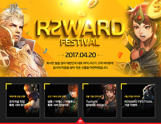 ¡®R2¡¯ÀÇ ¡®R2WARD FESTIVAL¡¯¿Í ±â³ä À̺¥Æ®¿¡ ´ëÇÑ º¸´Ù ÀÚ¼¼ÇÑ »çÇ×Àº ¡®R2¡¯ÀÇ Æ¯º° À̺¥Æ®ÆäÀÌÁö(http://r2.webzen.co.kr/events/r2wardfestival/loki)¿¡¼­ È®ÀÎÇÒ ¼ö ÀÖ´Ù.