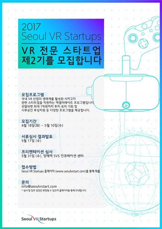 VRÀ» ÀÌ¿ëÇÑ Çõ½ÅÀûÀÎ ¼­ºñ½º, Á¦Ç° ¾ÆÀ̵ð¾î ¶Ç´Â »ç¾÷°èȹÀ» °®Ãß°í À̸¦ ½ÇÇöÇÒ ¼ö ÀÖ´Â ±â¼úÀ» °¡Áø ¹ýÀÎ, °³ÀÎ ¶Ç´Â ´Üü¶ó¸é ´©±¸³ª ½Åû °¡´ÉÇÏ´Ù. Âü°¡¸¦ ¿øÇÏ´Â Âü°¡¸¦ ¿øÇÏ´Â ½ºÅ¸Æ®¾÷Àº SVS °ø½Ä ȨÆäÀÌÁö(seoulvrstart.com)¸¦ ÅëÇØ ½Åû ¼­·ù¸¦ Á¦ÃâÇÏ¸é µÈ´Ù.