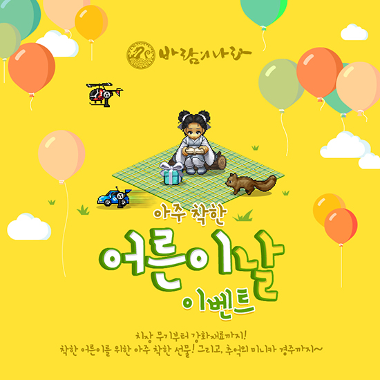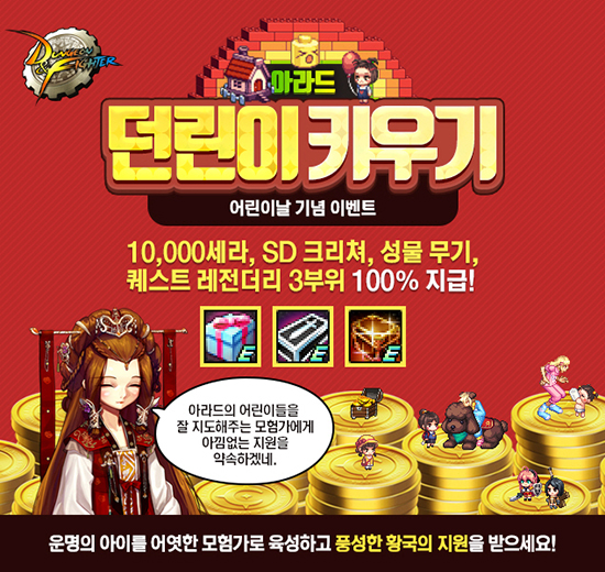 ¡®¹Ù¶÷Àdzª¶ó¡¯¿¡¼´Â 10ÀϱîÁö ´©Àû Á¢¼Ó½Ã°£¿¡ µû¶ó ¡®18K ¿ä°¡¯, ¡®18K µ¸º¸±â¡¯, ¡®Ä¡À庸°üÇÔÈ®À塯, ¡®¾î¸°À̼±¹°»óÀÚ¡¯ µî ´Ù¾çÇÑ ¾ÆÀÌÅÛÀ» Á¦°øÇÑ´Ù. 5¿ù 3ÀϺÎÅÍ 7ÀϱîÁö °æÁÖ ¼øÀ§¿¡ µû¶ó Áö±ÞÇÏ´Â Æ÷ÀÎÆ®·Î Ä¡Àå ¹«±â ¡®Àå³°¨ ¹Ì´ÏÄ«¡¯¸¦ ȹµæÇÒ ¼ö ÀÖ´Â ¡®´Þ·Á¶ó ¹Ì´ÏÄ«¡¯ À̺¥Æ®¸¦ ÁøÇàÇÑ´Ù. ÇÏ·ç ¼¼ ¹ø °æÁÖ¸¦ ¿Ï·áÇÏ¸é ¡®Àç»ýÃູȿ°ú¡¯¿Í '°æÇèÄ¡ 200% ¹öÇÁ¡¯¸¦ ¼±¹°ÇÑ´Ù. ¶Ç, 5ÀÏ ¿ÀÈÄ 8½Ã¿¡ ¡®¾î¸°À̳¯ OX À̺¥Æ®¡¯¸¦ ÁøÇàÇϰí ÃÖÁ¾ ¼øÀ§¿¡ µû¶ó ¡®Áö¿Á¹«±â¡¯, ¡®¿ë¹«±â¡¯ µî ´Ù¾çÇÑ ¾ÆÀÌÅÛÀ» ¼±¹°ÇÑ´Ù. ¡®¾îµÒÀÇÀü¼³¡¯¿¡¼´Â 11ÀÏ Á¡°Ë Àü±îÁö À̺¥Æ® ±â°£ »ý¼ºÇÑ Ä³¸¯ÅÍ·Î ¡®41·¹º§¡¯À» ´Þ¼ºÇÏ¸é ¾×¼¼¼¸® ¾ÆÀÌÅÛ ¡®ÄÚ»Ô¼ÒÀÎÇü¾Ç¼¼¡¯¸¦ Áö±ÞÇÏ´Â ¡®ÄÚ»Ô¼Ò ¾Ç¼¼ À̺¥Æ®¡¯¸¦ ÁøÇàÇÑ´Ù.