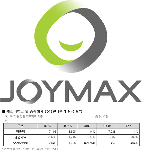 [Á¶À̸ƽº] Á¶À̸ƽº, 2017³â 1ºÐ±â ½ÇÀû ¹ßÇ¥ |