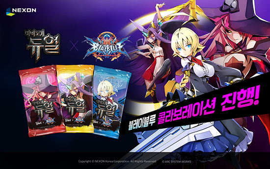 ³Ø½¼Àº 11ÀÏ µ¥ºêĹ ½ºÆ©µð¿À(devCAT Studio)¿¡¼ °³¹ßÇÑ Á¤Åë TCG(Trading Card Game) ¡®¸¶ºñ³ë±â µà¾ó¡¯¿¡ ÀϺ» Àα⠴ëÀü°ÝÅõ°ÔÀÓ ¡®ºí·¹À̺í·ç(BLAZBLUE)¡¯ ij¸¯ÅÍ Ä«µå¸¦ Ãâ½ÃÇÏ°í ±â³ä À̺¥Æ®¸¦ ½Ç½ÃÇÑ´Ù. À̹ø Á¦ÈÞ·Î ¡®³ªÀÎ ´õ ÆÒÅÒ¡¯, ¡®¸í¿Õ ÀÌÀÚ³ª¹Ì¡¯ µî ¡®ºí·¹À̺í·ç¡¯ Àαâ ij¸¯Å͸¦ ¡®¸¶ºñ³ë±â µà¾ó¡¯ °ÔÀÓ ³» ij¸¯ÅÍ Ä«µå ¹× ¿µ¿õ ½ºÅ²À¸·Î ¸¸³ªº¼ ¼ö ÀÖ´Ù. ¶ÇÇÑ, 25ÀϱîÁö Ư¼ö Ä«µå 26Á¾À» ȹµæÇÒ ¼ö ÀÖ´Â ¡®ºí·¹À̺í·ç ÄÝ¶óº¸ ºÎ½ºÅÍ¡¯¸¦ ¼±º¸ÀδÙ. ¡®ºí·¹À̺í·ç ÄÝ¶óº¸ ºÎ½ºÅÍ¡¯´Â ¡®ºí·¹À̺í·ç¡¯ ij¸¯ÅÍ·Î Á¦ÀÛÇÑ ¡®¼Òȯ¼ö Ä«µå¡¯¿Í ij¸¯ÅͰ¡ »ç¿ëÇÏ´Â ¹«±â·Î Á¦ÀÛÇÑ ¡®ÁÖ¹® Ä«µå¡¯·Î ±¸¼ºµÇ¸ç, ij¸¯ÅÍ Ä«µå·Î Ç÷¹ÀÌ ½Ã ¿øÀÛ °ÔÀÓ ±×´ë·ÎÀÇ ´ë»ç¸¦ Á¦°øÇÑ´Ù. ³Ø½¼Àº Á¦ÈÞ¸¦ ±â³äÇØ ¡®ºí·¹À̺í·ç¡¯ Àαâ ij¸¯Åͺ°·Î µîÀå Á¶°Ç ¹× ȹµæ Á¶°ÇÀ» ´Þ¼ºÇÏ´Â À¯Àú¿¡°Ô °ÔÀÓ ³»¿¡¼ »ç¿ëÇÒ ¼ö ÀÖ´Â ¿µ¿õÀ» Áö±ÞÇÑ´Ù. 25ÀϱîÁö´Â Ư¼ö ±ÔÄ¢ÀÌ Àû¿ëµÇ´Â À̺¥Æ® ¾Æ·¹³ª¸¦ ¿°í µî±Þ¿¡ µû¶ó ¡®º¸¼®¡¯, ¡®½ºÆä¼È ƼÄÏ¡¯, ¡®EXT Ä«µå¡¯ µî º¸»óÀ» Áö±ÞÇϸç, À̺¥Æ® ¹Ì¼Ç, µµÀü°úÁ¦ µîÀ» ¿Ï·áÇÏ¸é ¡®°ñµå¡¯, ¡®½ºÆä¼È ƼÄÏ¡¯ µî ¾ÆÀÌÅÛÀ» ¼±¹°ÇÑ´Ù. ¡®¸¶ºñ³ë±â µà¾ó¡¯ÀÇ ¡®ºí·¹À̺í·ç¡¯ Ä÷¡¹ö·¹À̼ǿ¡ °üÇÑ º¸´Ù ÀÚ¼¼ÇÑ ³»¿ëÀº °ø½Ä ȨÆäÀÌÁö(http://devcat.nexon.com/duel)¿Í °ø½Ä Ä«Æä (http://cafe.naver.com/mabinogiduel)¿¡¼ È®ÀÎÇÒ ¼ö ÀÖ´Ù.