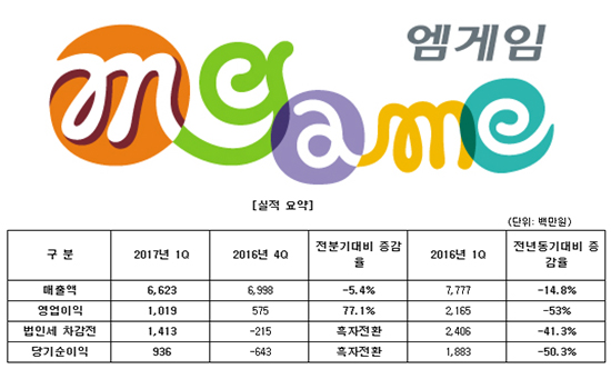 [¿¥°ÔÀÓ] 2017³â 1ºÐ±â ¸ÅÃâ 66¾ï 2õ¸¸¿ø ±â·Ï |