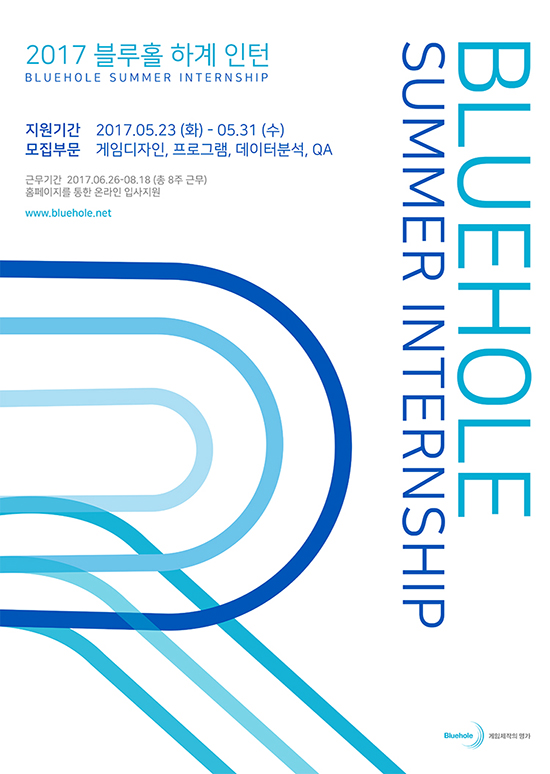 ¸ðÁý±â°£Àº 5¿ù 23ÀÏ(È)ºÎÅÍ 5¿ù 31ÀÏ(¼ö)±îÁöÀÌ¸ç ºí·çȦ °ø½Ä ȨÆäÀÌÁö(https://www.bluehole.net)¿¡¼ ¿Â¶óÀÎ Áö¿øÀÌ °¡´ÉÇÏ´Ù. ¸ðÁý ºÎ¹®Àº °ÔÀÓ ±âȹ, ÇÁ·Î±×·¥, µ¥ÀÌÅÍ ºÐ¼®, QA ÃÑ 4°³ ºÎ¹®À¸·Î Áö¿øÀÚÀÇ ³ªÀÌ, ÇзÂ, Àü°ø¿¡ Á¦ÇÑÀ» µÎÁö ¾Ê´Â´Ù. ÀüÇü ÀýÂ÷´Â ¼·ù ½É»ç, ÀÎÅÍºä ¼ø¼·Î ÁøÇàµÇ¸ç, ÃÖÁ¾ ÇÕ°ÝÀÚ´Â 6¿ù Áß¼ø °³º° Å뺸µÉ ¿¹Á¤ÀÌ´Ù.
