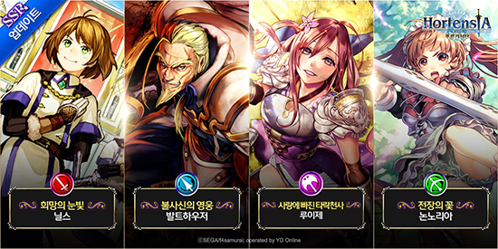 ¿ÍÀ̵ð¿Â¶óÀÎÀº ¼¼°¡ °ÔÀÓÁî(ÀÌÇÏ ¼¼°¡)¿Í f4samurai¿¡¼ °øµ¿ °³¹ßÇϰí Àڻ翡¼ ¼ºñ½ºÇÏ´Â Á¤Åë ½ºÅ丮ÅÚ¸µ ¸ð¹ÙÀÏ SRPG ¡®¿À¸£ÅÙ½Ã¾Æ »ç°¡¡¯°¡ ½Å±Ô ½Ã³ª¸®¿À ¾÷µ¥ÀÌÆ®¸¦ ÁøÇàÇß´Ù°í ±ÝÀÏ(29ÀÏ) ¹àÇû´Ù. ¡®¿À¸£ÅÙ½Ã¾Æ »ç°¡¡¯´Â È¥µ·ÀÇ ½Ã´ë¸¦ ¸ÂÀÌÇÑ ¿À¸£ÅÙ½Ã¾Æ ¿Õ±¹¿¡¼ ÆîÃÄÁö´Â ±â»çµéÀÇ ½ºÅ丮¸¦ ´Ù·é Áß¼¼ ÆÇŸÁö SRPG·Î ¹æ´ëÇÑ ¾çÀÇ ½Ã³ª¸®¿À¿Í źźÇÑ ½ºÅ丮 ¶óÀÎÀ¸·Î ÁøÇàµÇ´Â °ÔÀÓ Àü°³ ¹æ½ÄÀÌ Æ¯Â¡À̸ç, ÀϺ» À¯¸í ¼º¿ìµéÀÇ Ç® º¸À̽º¿Í ´õºÒ¾î °íÄ÷¸®Æ¼ÀÇ ÀÏ·¯½ºÆ®¸¦ ÅëÇØ ¾Ö´Ï¸ÞÀ̼Ǻ¸´Ù ´õ ¸®¾óÇÑ ¸ôÀÔ°¨À» ¼±»çÇÑ´Ù. ±ÝÀÏ ÁøÇàÇÑ ¾÷µ¥ÀÌÆ®¸¦ ÅëÇØ ½Ã³ª¸®¿À Á¦11Àå ¡®¾à¼Ó¡¯À» ¿ÀÇÂÇÏ°í ½Å±Ô Ä³¸¯ÅÍ 4Á¾À» »õ·Ó°Ô ¼±º¸¿´´Ù. ½Å±Ô ij¸¯ÅÍ´Â ´Ò½º, ¹ßÆ®ÇÏ¿ìÀú, ·çÀÌÁ¦, ³í³ë¸®¾Æ 4Á¾À¸·Î »óÁ¡À» ÅëÇØ ȹµæÇÒ ¼ö ÀÖ´Ù. ¾÷µ¥ÀÌÆ®¸¦ ±â³äÇØ ´ÙÀ½´Þ 15ÀÏ(¸ñ)±îÁö °í±Þ »óÁ¡ 10¿¬¼Ó »Ì±â 3ȸ ÁøÇà ½Ã ½Å±Ô ij¸¯Å͸¦ Æ÷ÇÔÇÑ SSR ij¸¯ÅÍ Áß ÇÑ °¡Áö¸¦ ¼±ÅÃÇÒ ¼ö ÀÖ´Â »Ì±â À̺¥Æ®¸¦ ½Ç½ÃÇÑ´Ù. ¶ÇÇÑ Áö³ 28ÀÏ(ÀÏ) ¼ºÈ²¸®¿¡ Á¾·áÇÑ Á¦2ȸ ¿Õ±¹±â»ç´Ü ÅëÀÏÀü °¨»ç À̺¥Æ®µµ ÇÔ²² ÁøÇàÇÑ´Ù. ¿À´Â 6¿ù 2ÀÏ(±Ý)±îÁö ¸ÅÀÏ °ÔÀÓ¿¡ Á¢¼Ó ½Ã ³ôÀº È®·ü·Î SSR, SR ij¸¯Å͸¦ ȹµæÇÒ ¼ö ÀÖ´Â ÇÏÀÌÇÁ¸®¹Ì¾ö ƼÄÏ µîÀÇ º¸»ó ¾ÆÀÌÅÛÀ» Áö±ÞÇÑ´Ù. ¿ÍÀ̵ð¿Â¶óÀÎÀº ¡°ÅºÅºÇÑ ½ºÅ丮·Î Áñ°Å¿òÀ» ¼±»çÇÏ´Â Á¤Åë ½ºÅ丮ÅÚ¸µ SRPG ¡®¿À¸£ÅÙ½Ã¾Æ »ç°¡¡¯°¡ ½Å±Ô ½Ã³ª¸®¿À Á¦11Àå ¡®¾à¼Ó¡¯À» °ø°³Çß´Ù¡±¶ó¸ç, ¡°´Ù¾çÇÑ ½Å±Ô ij¸¯ÅÍ¿Í ÇÔ²² »õ·Î Ãß°¡µÈ ½ºÅ×ÀÌÁö¸¦ ÅëÇØ ¸ðÇèÀÇ Àç¹Ì¸¦ ´À³¥ ¼ö ÀÖÀ» °Í¡±À̶ó°í ÀüÇß´Ù. ÀÌ¾î ¡°À¯ÀúºÐµéÀÇ ¸¹Àº »ç¶û¿¡ º¸´äÇϰíÀÚ ±¹³» Ãâ½Ã 100ÀÏ ±â³ä ¹× °ø½Ä Ä«Æä 2¸¸¸í µ¹ÆÄ ±â³ä À̺¥Æ® µî dz¼ºÇÑ À̺¥Æ®µµ ÇÔ²² ÁøÇà ÁßÀÌ´Ï ¸¹Àº °ü½É ¹Ù¶õ´Ù¡±¶ó°í µ¡ºÙ¿´´Ù. ¡®¿À¸£ÅÙ½Ã¾Æ »ç°¡¡¯¿¡ °üÇÑ ÀÚ¼¼ÇÑ »çÇ×Àº °ø½Ä Ä«Æä(http://cafe.naver.com/ydhortensia)¸¦ ÅëÇØ È®ÀÎÇÒ ¼ö ÀÖÀ¸¸ç, °ÔÀÓÀº ±¸±Û Ç÷¹ÀÌ ½ºÅä¾î(https://goo.gl/JXR2iX) ¹× ¿ø½ºÅä¾î(https://goo.gl/JR4Cv0)¸¦ ÅëÇØ ´Ù¿î·ÎµåÇÒ ¼ö ÀÖ´Ù.