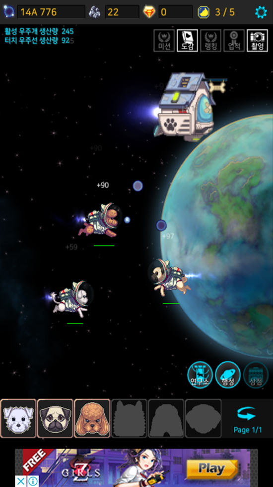 °ÔÀÓÀº Ŭ¸¯À» ÅëÇØ ¿ìÁÖ ¿¡³ÊÁö ÀÚ¿øÀ» ¸ðÀ¸°í, ¸ð¿©Áø ¿¡³ÊÁö·Î ¿ìÁÖ¼±°ú ¿ìÁÖ°³¸¦ ¾÷±×·¹À̵åÇÏ¸ç ¹ÌÁöÀÇ Ç༺µéÀ» Ž»çÇÏ´Â ¹æ½ÄÀ¸·Î ±¸¼ºµÇ¾î ÀÖ´Ù.