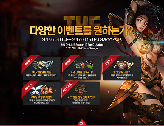 À¥Á¨ÀÌ ´ëÇ¥ PC MMORPG ¡®¹Â ¿Â¶óÀΡ¯¿¡ 4Â÷ ÀüÁ÷ ½Ã½ºÅÛÀ» µµÀÔÇÏ´Â µîÀÇ ´ë±Ô¸ð ¾÷µ¥ÀÌÆ®¸¦ ÁøÇàÇß´Ù. À¥Á¨Àº ¾îÁ¦(5¿ù 30ÀÏ), ¡®¹Â ¿Â¶óÀΡ¯¿¡ 4Â÷ ÀüÁ÷ ½Ã½ºÅÛ ¹× ½Å±Ô »ç³ÉÅÍ µîÀÇ ÄÜÅÙÃ÷¸¦ Ãß°¡ÇÏ´Â ¡®Season12-2¡¯ ¾÷µ¥ÀÌÆ®¸¦ Àû¿ëÇϰí, °ÔÀÓ È¸¿øµéÀ» À§ÇÑ ±â³ä À̺¥Æ®¸¦ ½ÃÀÛÇß´Ù. À̹ø ¡®¹Â ¿Â¶óÀΡ¯ÀÇ ¾÷µ¥ÀÌÆ®¿¡¼´Â ÇÑÃþ ´õ »óÇâµÈ Ŭ·¡½º·Î ij¸¯Å͸¦ À°¼ºÇÒ ¼ö ÀÖ´Â ¡®4Â÷ ÀüÁ÷ ½Ã½ºÅÛ¡¯ÀÌ °¡Àå ÁÖ¸ñ¹Þ°í ÀÖ´Ù. 800·¹º§ ÀÌ»óÀÇ Ä³¸¯ÅͺÎÅÍ ÀüÁ÷ÀÌ °¡´ÉÇϸç, Äù½ºÆ® ÁøÇà Áö¿ªÀÎ ¡®½ÃÇèÀÇ °ø°£¡¯À¸·Î À̵¿ÇØ 3´Ü°è·Î ±¸¼ºµÈ Äù½ºÆ®¸¦ ¿Ï·áÇØ¾ß ÇÑ´Ù. ÀÌÈÄ ¡®¼Ò¿ïÀ§Àڵ塯/¡¯µå·¡°ï³ªÀÌÆ®¡¯/¡¯³ëºí¿¤ÇÁ¡¯/¡¯µð¸à¼Ç¼¸Ó³Ê¡¯ µî ÃÑ 8°³ÀÇ Å¬·¡½º·Î ±¸¼ºµÈ 4Â÷ ÀüÁ÷¿¡ ¼º°øÇϸé ij¸¯ÅÍÀÇ ½ºÅ³À» °ÈÇÏ´Â ½Ã½ºÅÛ ¡®½ºÅ³ °È Æ®¸®¡¯°¡ Ȱ¼ºÈµÈ´Ù. °ÔÀ̸ӵéÀº ¡®½ºÅ³ °È Æ®¸®¡¯¿¡¼ ¸ÞÀÎ ½ºÅ³°ú ¿©·¯ ½ºÅ³ °È ¿É¼Ç µîÀ» Á¶Á¤ÇØ ´Ù¾çÇÑ ¹æ½ÄÀÇ ÀüÅõ¸¦ Áñ±æ ¼ö ÀÖ´Ù. À¥Á¨Àº 770·¹º§ ÀÌ»óÀÇ Ä³¸¯ÅͺÎÅÍ ÀÔÀåÀÌ °¡´ÉÇÑ »ç³ÉÅÍ ¡®±íÀº ´øÀü¡¯µµ »õ·Ó°Ô Ãß°¡ÇÑ´Ù. ·Î·£½Ã¾Æ Áö¿ª¿¡ À§Ä¡ÇÑ ¡®±íÀº ´øÀü¡¯Àº 5°³ÀÇ ÃþÀ¸·Î ±¸¼ºµÇ¾î ÀÖÀ¸¸ç, °¢ Ãþ¸¶´Ù Ãâ¸ôÇÏ´Â ¡®Çذñ±Ã¼ö¡¯, ¡®ÇコÆÄÀÌ´õ¡¯, ¡®°í¸£°ï¡¯ µîÀÇ ¸ó½ºÅ͸¦ óġÇÏ¸é º¸¼®·ù ¹× ¿¢¼³·±Æ® Àåºñ µîÀÇ °ÔÀÓ ¾ÆÀÌÅÛÀ» ȹµæÇÒ ¼ö ÀÖ´Ù. À̿ܿ¡µµ 200¿© °³ÀÇ Äù½ºÆ®¸¦ '°¡À̵å Äù½ºÆ®' ÅÇ¿¡ Ãß°¡ÇØ Ä³¸¯ÅÍÀÇ ·¹º§ ´Þ¼º Á¤µµ¿¡ µû¶ó ÀÚµ¿À¸·Î ÁøÇàµÇµµ·Ï ÇÏ´Â ½Å±Ô Äù½ºÆ® ½Ã½ºÅÛÀ» ¼±º¸À̰í, °ÔÀÓ ³» ij¸¯ÅÍ ÃÖ°í ·¹º§À» 920·¹º§·Î »óÇâÇÏ´Â µîÀÇ ¾÷µ¥ÀÌÆ®µµ Àû¿ëÇß´Ù. ÇÑÆí, À¥Á¨Àº ¾îÁ¦(5¿ù 30ÀÏ)ºÎÅÍ ¿À´Â 6¿ù 15ÀϱîÁö ¸ÅÀÏ ¡®¹Â ¿Â¶óÀΡ¯¿¡ 1½Ã°£ ÀÌ»ó Á¢¼ÓÇÑ È¸¿ø Àü¿ø¿¡°Ô ¡®»ó½ÂÀÇ ºÎÀûI(1ÀÏ)¡¯, ¡®¸¶¹ý»çÀÇ ¹ÝÁö(1ÀÏ)¡¯ µîÀ¸·Î ±¸¼ºµÈ ¡®±¤¼Ó ·¹º§¾÷ ÆÐŰÁö¡¯¸¦ ¼±¹°ÇÑ´Ù. ¶ÇÇÑ, 6¿ù 1ÀϺÎÅÍ 6¿ù 29ÀϱîÁö 4ÁÖ µ¿¾È ij¸¯ÅÍÀÇ 4Â÷ ÀüÁ÷À» ¿Ï·áÇÑ È¸¿øµé¿¡°Ô´Â ¡®»ó½ÂÀÇ ºÎÀû¥±(28ÀÏ)¡¯, ¡®½ºÅÈ Á¶Á¤±Ç(2,000) µîÀÇ ¾ÆÀÌÅÛÀ» Ãß°¡·Î Á¦°øÇØ Ä³¸¯ÅÍÀÇ ºü¸¥ ¼ºÀåÀ» Áö¿øÇÑ´Ù. ÀÌ¿Í ÇÔ²² ¿À´Â 6¿ù 14ÀϱîÁö ¡®¹Â ¿Â¶óÀΡ¯ÀÇ À̺¥Æ® ÆäÀÌÁö¿¡¼ ´Ù¾çÇÑ °ÔÀÓ ¾ÆÀÌÅÛÀ» ȹµæÇÒ ¼ö ÀÖ´Â ·ê·¿ À̺¥Æ®¸¦ ÁøÇàÇϰí, ·ê·¿À» µ¹¸± ¶§¸¶´Ù ÁÖ¾îÁö´Â ¡®·ê·¿ Æ÷ÀÎÆ®¡¯°¡ °¡Àå ³ôÀº »óÀ§ 500¸íÀÇ È¸¿øµé¿¡°Ô ÃÖ´ë ¡®+0 3Â÷ ¸¶½ºÅ͸® ¹æ¾î±¸ Ç®¼¼Æ®¡¯ µîÀ» Â÷µî Áö±ÞÇÑ´Ù. À¥Á¨ÀÇ ´ëÇ¥ PC MMORPG ¡®¹Â ¿Â¶óÀΡ¯ÀÇ ¡®Season12-2¡¯ ¾÷µ¥ÀÌÆ® ¹× ±â³ä À̺¥Æ®¿¡ ´ëÇÑ º¸´Ù ÀÚ¼¼ÇÑ Á¤º¸´Â °ø½Ä ȨÆäÀÌÁö(http://www.muonline.co.kr)¿¡¼ È®ÀÎÇÒ ¼ö ÀÖ´Ù.