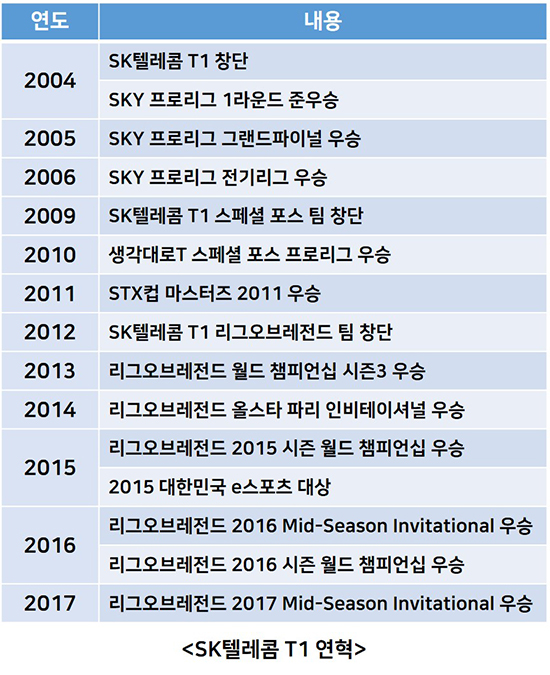 ÃÖ±Ù ÇØ¿Ü À¯¸í Ã౸ ±¸´Ü°ú ½ºÅ¸ ¼±¼öµéÀÌ e½ºÆ÷Ã÷ ±¸´Ü¿¡ ÅõÀÚÇÏ´Â »ç·Ê°¡ ´Ã¾î³ª¸é¼ e½ºÆ÷Ã÷°¡ ´«±æÀ» ²ø°í ÀÖ´Ù. ½ºÆäÀÎ Ã౸Ŭ·´ ¹ß·»½Ã¾Æ´Â ¸®±×¿Àºê·¹Àüµå(ÀÌÇÏ ·Ñ), ÇϽº½ºÅæ, ·ÎÄϸ®±×, ÇÇÆÄ °ÔÀÓ´ÜÀ» â´ÜÇß°í, ÇÁ¶û½º Ã౸Ŭ·´ PSG, µ¶ÀÏ Ã౸Ŭ·´ »ìÄÉ04, ÅÍŰ Ã౸Ŭ·´ Æä´Ï¸£¹Ùü, º£½ÄŸ½º µîµµ °¢°¢ ·Ñ ÇÁ·Î°ÔÀÓ´ÜÀ» »õ·Ó°Ô â´ÜÇϰųª ÀμöÇß´Ù. ¶Ç ºê¶óÁú Ã౸ ¿µ¿õ È£³ª¿ìµÎ°¡ Áö³ 1¿ù ºê¶óÁú ÇÁ·Î°ÔÀÓ´Ü CNB ÁöºÐÀÇ 50%¸¦ ¸ÅÀÔÇß°í FC ¹Ù·Î¼¿·Î³ªÀÇ ³×À̸¶¸£ ¿ª½Ã e½ºÆ÷Ã÷ ÅõÀÚ¿¡ °ü½ÉÀÌ ÀÖ´Â °ÍÀ¸·Î ¾Ë·ÁÁ³´Ù. ±¹³»¿¡¼µµ e½ºÆ÷Ã÷¿¡ ´ëÇÑ °ü½É°ú ÅõÀÚ ±â¿îÀÌ ´Ù½Ã Á¡ÈµÇ°í ÀÖ´Ù. Áö³ÇØ ÇÁ·ÎÃ౸´Ü ¼º³² FC°¡ ÇÇÆÄ¿Â¶óÀÎ3 ±èÁ¤¹Î ¼±¼ö¸¦ ¿µÀÔÇÑ µ¥ À̾î, ¾ÆÇÁ¸®Ä«TVÀÇ ¾ÆÇÁ¸®Ä« ÇÁ¸¯½º â´Ü, BBQÀÇ bbq ¿Ã¸®¹ö½º ÈÄ¿ø, À¥Å÷ Ç÷§Æû ¹èƲÄڹͽºÀÇ ·Ñ ½Å»ýÆÀ â´Ü µî ±â¾÷ÀÇ ÅõÀÚµµ ÀÕµû¸£°í ÀÖ´Ù. ÀÌó·³ e½ºÆ÷Ã÷¿¡ ´ëÇÑ °ü½É°ú ÅõÀÚ°¡ ³¯·Î ´Ã¾î³ª´Â ¹Ý¸é, e½ºÆ÷Ã÷ »ê¾÷ÀÇ ÀÔÁö´Â ¾ÆÁ÷ ¹ÌÈíÇÑ ½ÇÁ¤ÀÌ´Ù. ¿©ÀüÈ÷ ±¹³»¿¡¼´Â °ÔÀÓ°ú e½ºÆ÷Ã÷¿¡ ´ëÇÑ ¿ÀÇØ¿Í Æí°ßÀÌ ÆØ¹èÇϰí ÀÌ¿¡ µû¶ó e½ºÆ÷Ã÷°¡ Àü¹ÝÀûÀ¸·Î ÀúÆò°¡ µÇ¾îÀֱ⠶§¹®ÀÌ´Ù. ÃÖ±Ù SKÅÚ·¹ÄÞÀÌ e½ºÆ÷Ã÷ ¼±¼ö´Ü T1ÀÇ 2017 ¹Ìµå-½ÃÁð ÀκñÅ×À̼ųÎ(ÀÌÇÏ MSI) ¿ì½ÂÀ» ±â³äÇØ ÀÚ»ç SNS(°ü·Ã ¸µÅ©)¸¦ ÅëÇØ ÀÏ¹Ý ´ëÁß 939¸íÀ» ´ë»óÀ¸·Î ½Ç½ÃÇÑ ¡®°ÔÀÓ¿¡ ´ëÇÑ ¿ÀÇØ¿Í Æí°ß¡¯ ¼³¹®Á¶»ç¿¡ µû¸£¸é, ÀÀ´äÀÚÀÇ °ú¹Ý¿¡ °¡±î¿î »ç¶÷µéÀÌ ¡°°ÔÀÓÀ» ÇÏ¸é ¸Ó¸®°¡ ³ªºüÁø´Ù¡±°í ´äÇß´Ù. ¶ÇÇÑ ÀÀ´äÀÚÀÇ 70%´Â ¡°°ÔÀÓÀº Áßµ¶¼ºÀÌ ½ÉÇÏ´Ù¡±°í ´äÇß´Ù. ÀÌó·³ ±¹³»¿¡¼ °ÔÀÓÀº ¼ø±â´Éº¸´Ù ¿ª±â´ÉÀÌ ´õ ºÎ°¢µÇ¸ç, °ÔÀÓ¿¡ ´ëÇÑ ºÎÁ¤Àû ÀνÄÀÌ ´õ ¸¹Àº °ÍÀ¸·Î Á¶»çµÆ´Ù. ÇÏÁö¸¸ °ÔÀÓ¿¡ ´ëÇÑ ºÎÁ¤ÀûÀÎ Àνİú´Â ¹Ý´ë·Î, ±¹³» e½ºÆ÷Ã÷´Â µÎÅÍ¿î ÆÒ ÃþÀ» È®º¸ÇÏ¸ç ±¹³»¸¦ ³Ñ¾î ¼¼°èÀûÀ¸·Î ÀÎÁ¤¹Þ´Â ½ºÆ÷Ã÷·Î °¢±¤ ¹Þ°í ÀÖ´Ù. ¿ì¸® ¼±¼öµéÀÌ Àü ¼¼°è¸¦ Á¦ÆÐÇÒ ¼ö ÀÖ¾ú´ø ÀÌÀ¯ Áß Çϳª·Î ¼±¼öµéÀ» Áö¿øÇÏ´Â ±¹³» ´ë±â¾÷µéÀÇ Áö¿øÀ» ²ÅÀ» ¼ö ÀÖ´Ù. ÃÖ±Ù ºê¶óÁú ¸®¿ìµ¥ÀÚ³×ÀÌ·ç ÁÖ³×½º ¾Æ·¹³ª¿¡¼ ¿¸° 2017 MSI¿¡¼ 2¿¬½ÂÀ» °ÅµÐ SKÅÚ·¹ÄÞ T1ÀÌ ¹Ù·Î ±× ¿¹´Ù. 2000³â´ë ÃʱâºÎÅÍ e½ºÆ÷Ã÷¿¡ ´ëÇÑ ÅõÀÚ¸¦ ½ÃÀÛÇÑ SKÅÚ·¹ÄÞÀº ´ëÇѹα¹ e½ºÆ÷Ã÷ ¿ª»çÀÇ Á߽ɿ¡ ¼ ÀÖ´Ù. 2004³â 4¿ù SKÅÚ·¹ÄÞÀº ½ºÅ¸Å©·¡ÇÁÆ®ÀÇ È²Á¦ ÀÓ¿äȯ ¼±¼ö°¡ ¼Ò¼ÓµÈ 4UÆÀÀ» ÀμöÇØ SKÅÚ·¹ÄÞ T1 °ÔÀÓ´ÜÀ» Á¤½Ä â´ÜÇß´Ù. â´Ü ÀÌÈÄ, 12³â¿© µ¿¾È °¢Á¾ ´ëȸ¿¡¼ ¿ì½ÂÀ» Â÷ÁöÇÏ¸ç ±¹³» e½ºÆ÷Ã÷ ¿ª»ç¿¡ Å« ȹÀ» ±×¾ú´Ù. ±× ´ç½Ã SKÅÚ·¹ÄÞ ±è½Å¹è »çÀåÀº e½ºÆ÷Ã÷ ÇùȸÀåÀ¸·Î ÃëÀÓÇØ ÇÑ ÇØ 20¾ï¿© ¿øÀ» ÅõÀÚÇÏ´Â µî ´ëÇѹα¹ e½ºÆ÷Ã÷ ¹ßÀüÀÇ Ãʼ®À» ¸¶·ÃÇß´Ù. ÀÌ·± ³ë·ÂÀÇ °á½Ç·Î 2012³â »ç»ó ÃÖÃÊ ·Ñ ¿ùµå èÇǾð½Ê 2¿¬ÆÐ¸¦ ´Þ¼ºÇß°í ÃÖ±Ù ºê¶óÁú¿¡¼ ¿¸° 2017 MSI¿¡´Â Çѱ¹´ëÇ¥·Î ÃâÀüÇØ 2³â ¿¬¼Ó ¿ì½ÂÀ̶ó´Â Àü¹«ÈĹ«ÇÑ ±â·ÏÀ» ¼ö¸³ÇÏ¸ç ¼¼°è ÃÖÁ¤»ó e½ºÆ÷Ã÷ÆÀÀ¸·Î ÀÚ¸®¸Å±èÇß´Ù. SKÅÚ·¹ÄÞ T1 °ü°èÀÚ´Â ¡°SKÅÚ·¹ÄÞÀÌ 10³â ³Ñ°Ô e½ºÆ÷Ã÷¿¡ ÅõÀÚÇØ ¿Â °á°ú¡±¶ó¸ç, ¡°¾ÕÀ¸·Îµµ ´Ü¼øÇÑ ¹°Àû ÅõÀÚ ¿Ü¿¡µµ ´ÜÇÕµÈ ÆÀ¿öÅ©¸¦ À§ÇÑ È¯°æÀ» Á¶¼ºÇÏ°í ¼±¼ö»Ó ¾Æ´Ï¶ó ÄÚνºÅÂÇÁ¿¡ ´ëÇÑ Ã¼°èÀûÀÎ °ü¸®¸¦ ÅëÇØ T1ÀÇ À§»óÀ» Àü ¼¼°è¿¡ ¾Ë¸®°í ±¹³» e½ºÆ÷Ã÷ »ê¾÷¿¡ À̹ÙÁöÇÒ ¿¹Á¤ÀÌ´Ù¡±¶ó°í ¹àÇû´Ù.