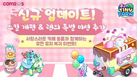 ÄÄÅõ½º´Â Àڻ簡 °³¹ßÇÏ°í ¼ºñ½ºÇÏ´Â Àαâ SNG(¼Ò¼È³×Æ®¿öÅ©°ÔÀÓ) ¡®Å¸ÀÌ´ÏÆÊ¡¯¿¡¼ ¡®½ºÅ³ ½Ã½ºÅÛ¡¯ °³Æí ¹× À¯Àú ÆíÀǼºÀ» ³ôÀÌ´Â ´Ù¾çÇÑ ¾÷µ¥ÀÌÆ®¸¦ ÁøÇàÇß´Ù°í 15ÀÏ ¹àÇû´Ù. À̹ø ¾÷µ¥ÀÌÆ®´Â º¸´Ù ¿øÈ°ÇÑ °ÔÀÓ ÁøÇàÀ» Áö¿øÇÏ´Â ±â´É ¹× ´Ù¾çÇÑ À¯Àú ÇýÅõéÀ» Ãß°¡ÇØ ¡®Å¸ÀÌ´ÏÆÊ¡¯ÀÇ ¸ðµç ÀÌ¿ëÀڵ鿡°Ô »õ·Î¿î Àç¹Ì¿Í Ưº°ÇÑ °æÇèÀ» Á¦°øÇϰíÀÚ ¸¶·ÃµÆ´Ù. ¸ÕÀú, ŸÀÌ´ÏÆÊ¿¡¼ ¿µ¿õµ¿¹°ÀÌ °®°í ÀÖ´ø ¡®½ºÅ³¡¯ ½Ã½ºÅÛÀÌ ´ëÆø º¯È µÈ´Ù. ±âÁ¸ ¿µ¿õµ¿¹° º¸À¯ ½Ã¿¡¸¸ »ç¿ë °¡´ÉÇß´ø ½ºÅ³Àº À̹ø ¾÷µ¥ÀÌÆ® ÀÌÈÄ ¸ðµç À¯ÀúµéÀÌ »ç¿ë ÇÒ ¼ö ÀÖ°Ô µÈ´Ù. ŸÀÌ´ÏÆÊÀÇ ½ºÅ³Àº ÀÏÀÏ ¾÷ÀûÀÇ ±æµéÀÌ±â ¹Ì¼Ç µî ´Ù¾çÇÑ °æ·Î¸¦ ÅëÇØ ȹµæÇÑ ¿Õ°üÀ¸·Î Ƚ¼ö Á¦ÇÑ ¾øÀÌ ±¸¸Å °¡´ÉÇÏ´Ù. ¶ÇÇÑ ¿À´Â 7¿ù 6ÀϱîÁö ¡®·»ÀÇ Æ¯º°¹Ì¼Ç¡¯ÀÌ »õ·Î Ãß°¡µÈ´Ù. À¯ÀúµéÀº ÀÏÀÚº° ·»ÀÇ ¹Ì¼ÇÀ» ¿Ï·áÇÏ¸é Æ¯º°ÇÑ º¸»óÀ» ¸ÅÀÏ ¹Þ°Ô µÇ¸ç, ¸ðµç ¹Ì¼ÇÀ» ÃÖÁ¾ ¿Ï·á ½Ã ¿Õ°üÀ» »ý»êÇÏ´Â ¡®¿Õ°ü Çϴüº¡¯À» ȹµæÇÒ ¼ö ÀÖ´Ù. ÀÌ¿Í ÇÔ²² ¡ãÄ£±¸ µµ¿ÍÁֱ⠺¸³Ê½º Ƚ¼ö ±âÁ¸ 15ȸ¿¡¼ 50ȸ·Î È®Àå ¡ã¸¶À» Å»Åð ÈÄ Àç°¡ÀÔ ´ë±â ½Ã°£ 15ÀÏ¿¡¼ 3ÀÏ·Î ´ëÆø °¨¼Ò ¡ã¡®ÀºÀÇ ¹®¡¯ ÀçÀÔÀå ´ë±â ½Ã°£ 6½Ã°£¿¡¼ 2½Ã°£À¸·Î °¨¼Ò ÇÏ´Â µî À¯Àú ÆíÀǼºÀ» ³ôÀ̱â À§ÇÑ ´Ù¾çÇÑ ±â´ÉµéÀÌ °³Æí µÈ´Ù. ÄÄÅõ½º´Â ŸÀÌ´ÏÆÊÀÇ À̹ø ¾÷µ¥ÀÌÆ®¸¦ ±â³äÇØ ¿À´Â 29ÀϱîÁö ´Ù¾çÇÑ À̺¥Æ®¸¦ ÁøÇàÇÑ´Ù. À̺¥Æ® ±â°£ ³»¿¡ ½Å±Ô/º¹±ÍÀ¯Àú°¡ °ÔÀÓ¿¡ Á¢¼ÓÇϸé 500 ¾ÖÁ¤Æ÷ÀÎÆ®, 25¸¸ °ñµå, 200º§, ŸÀÌ´Ï¾Ë 1°³ µîÀ» ¼±¹°·Î ¹ÞÀ» ¼ö ÀÖ´Ù. ¶ÇÇÑ ±âÁ¸ À¯ÀúµéÀÇ °æ¿ìµµ Ãâ¼® º¸»ó ¹× ´Ù¾çÇÑ À̺¥Æ® ¹Ì¼ÇÀ» ÅëÇØ Ưº°ÇÑ º¸»óÀ» ¹ÞÀ» ¼ö ÀÖ´Ù. ÇÑÆí, Áö³ 2011³â ù ¼±À» º¸ÀÎ ¡®Å¸ÀÌ´ÏÆÊ¡¯Àº µ¿È °°Àº ±×·¡ÇÈÀÇ ¹è°æ¿¡ 700¿© Á¾ÀÇ ´Ùä·Î¿î µ¿¹°À» ¼öÁýÇØ ÀڽŸ¸ÀÇ ³óÀåÀ» ²Ù¹Ì´Â SNG·Î, ´Ùä·Î¿î ½Å±Ô ÄÜÅÙÃ÷¸¦ Áö¼ÓÀûÀ¸·Î Ãß°¡ÇØ ±Û·Î¹ú 2,000 ´Ù¿î·Îµå¸¦ µ¹ÆÄÇÏ´Â µî Àü¼¼°è À¯ÀúµéÀÇ ²ÙÁØÇÑ »ç¶ûÀ» ¹Þ°í ÀÖ´Ù. ¡®Å¸ÀÌ´ÏÆÊ¡¯ÀÇ À̹ø ¾÷µ¥ÀÌÆ® ¹× À̺¥Æ®¿¡ °üÇÑ ´õ¿í ÀÚ¼¼ÇÑ ³»¿ëÀº °ø½ÄÄ«Æä(http://cafe.naver.com/tinifam)¸¦ ÅëÇØ È®ÀÎÇÒ ¼ö ÀÖ´Ù.
