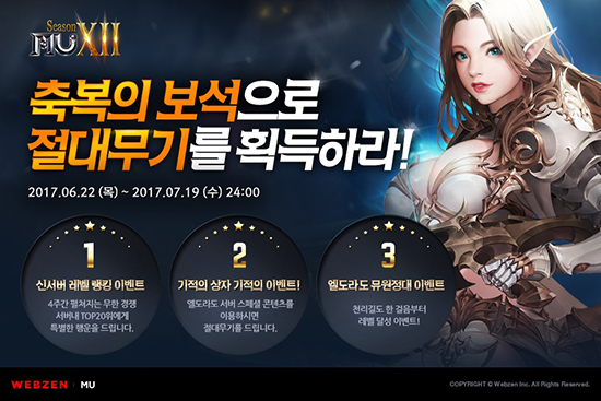 À¥Á¨ÀÌ ´ëÇ¥ PC MMORPG ¡®¹Â ¿Â¶óÀΡ¯ÀÇ Æ¯È ½Å±Ô ¼¹ö ¡®¿¤µµ¶óµµ¡¯¸¦ °ø°³ÇÑ´Ù. À¥Á¨Àº ¿À´Ã(6¿ù 22ÀÏ) ¿ÀÈÄ 3½ÃºÎÅÍ ¡®¹Â ·¹µå¡¯ÀÇ ½Å±Ô ¼¹ö ¡®¿¤µµ¶óµµ¡¯¸¦ ¿ÀÇÂÇϰí, ÇØ´ç ¼¹ö·Î ȸ¿øµéÀ» À¯Ä¡Çϱâ À§ÇÑ ±â³ä À̺¥Æ®¸¦ ½ÃÀÛÇÑ´Ù. ÇØ´ç À̺¥Æ®´Â ¿À´Â 7¿ù 19ÀϱîÁö ¿¤µµ¶óµµ ¼¹ö¸¦ ´ë»óÀ¸·Î ÁøÇàµÈ´Ù. ¡®¹Â ¿Â¶óÀΡ¯ÀÇ ¿¤µµ¶óµµ´Â Àü¼³·Î ÀüÇØ ³»·Á¿À´Â Ȳ±ÝÀÇ µµ½Ã¸¦ ¸ðƼºê·Î ¸¸µé¾îÁø ½Å±Ô ¼¹ö·Î, ij¸¯ÅÍ ·¹º§¿¡ °ü°è¾øÀÌ ´©±¸³ª °ÔÀÓ¿¡¼ ¾òÀº º¸¼® ¾ÆÀÌÅÛÀ» ±³È¯ÇØ °ÔÀÓ ³» ÃÖ°íÀÇ ¾ÆÀÌÅÛÀ» ȹµæÇÒ ¼ö ÀÖ´Â Æ¯È ¼¹ö·Î ¿î¿µµÈ´Ù. Æ¯È ¼¹öÀÎ ¿¤µµ¶óµµ¿¡´Â ¡®±âÀûÀÇ »óÀÚ¡¯¸¦ ÀÌ¿ëÇØ º¸¼®°ú ÃÖ°í±Þ ¾ÆÀÌÅÛÀ» ¹Ù²ãÁÖ´Â ¡®¸ð½º½Ã½ºÅÛ¡¯ÀÌ Á¸ÀçÇÑ´Ù. °ÔÀ̸ӵéÀº ¡®[NPC]¸ð½º¡¯¸¦ ÅëÇØ ¡®ÃູÀÇ º¸¼®¡¯°ú ¡®¿µÈ¥ÀÇ º¸¼®¡¯À» °¢°¢ ¡®´ëõ»çÀÇ Àý´ë¹«±â¡¯¿Í ¡®¾îµÒÀÇ º¯½Å¹ÝÁö¡¯ µî ÃÖ°ÀÇ ¾ÆÀÌÅÛÀ¸·Î ±³È¯ÇÒ ¼ö ÀÖ´Ù. ÀÌ¿Í ÇÔ²² À¥Á¨Àº ¡®¹Â ¿Â¶óÀΡ¯ÀÇ ½Å±Ô ¼¹ö ¿ÀÇÂÀ» ±â³äÇØ ¿©·¯ À̺¥Æ®¸¦ ¸¶·ÃÇß´Ù. ¸ÕÀú, À̺¥Æ® ±â°£µ¿¾È º¸¼®À» ¹«±â ¾ÆÀÌÅÛÀ¸·Î ±³È¯ÇÒ ¶§ ¸¶´Ù ´©ÀûµÈ Á¡¼ö¿¡ µû¶ó ¼øÀ§°¡ °áÁ¤µÇ´Â ¡®±âÀûÀÇ »óÀÚ ·©Å· À̺¥Æ®¡¯¸¦ ÁøÇàÇÑ´Ù. 1À§ºÎÅÍ 30À§ÀÇ ¼øÀ§¿¡ ¿À¸¥ °ÔÀ̸ӵ鿡°Ô ¡®+0 ´ëÀü»çÀÇ Àý´ë¹«±â¡¯, ¡®+0 ºí·¯µå¿£Á© 3¿É¼Ç Çà¿î ¹«±â¡¯ µîÀÇ °í±Þ ¾ÆÀÌÅÛÀ» Â÷µî Áö±ÞÇÑ´Ù. ¶ÇÇÑ À¥Á¨Àº ¡®¿¤µµ¶óµµ ·©Å· À̺¥Æ®¡¯¸¦ ¿°í, ½Å±Ô ¼¹ö¿¡¼ ij¸¯ÅÍÀÇ ·¹º§ ¹× °æÇèÄ¡¿¡ µû¶ó ¼±Á¤µÈ »óÀ§ 20¸íÀÇ °ÔÀ̸ӵ鿡°Ô ÃÖ´ë ¡®300,000·çµå¡¯¿Í ¡®¿µ¿õºí·¯µå¿£Á©ÀÇÈ¥ 4°³¡¯ µîÀÇ ¾ÆÀÌÅÛÀ» ¼±¹°ÇÑ´Ù. ÇÑÆí, À¥Á¨ÀÇ PC MMORPG ¡®¹Â ¿Â¶óÀΡ¯Àº Áö³ 2001³â 11¿ù Ãâ½ÃµÈ ÈÄ, 16³âÀÌ Áö³ ÇöÀç±îÁö ²ÙÁØÇÑ ¾÷µ¥ÀÌÆ®¸¦ °ÅÃÄ Àα⸦ Áö¼ÓÇϰí ÀÖ´Â ´ëÇ¥ÀûÀÎ ½ºÅ׵𼿸µ °ÔÀÓÀÌ´Ù. ¡®¹Â ¿Â¶óÀΡ¯ÀÇ ½Å±Ô ¼¹ö ¡®¿¤µµ¶óµµ¡¯ ¹× ±â³ä À̺¥Æ®¿¡ ´ëÇÑ º¸´Ù ÀÚ¼¼ÇÑ Á¤º¸´Â °ø½Ä ȨÆäÀÌÁö(http://www.muonline.co.kr)¿¡¼ È®ÀÎÇÒ ¼ö ÀÖ´Ù.