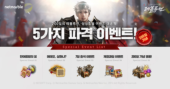 200ÀÏ ±â³ä À̺¥Æ®¿¡ ´ëÇÑ ÀÚ¼¼ÇÑ ³»¿ëÀº ȨÆäÀÌÁö(http://l2.netmarble.net/#event)¿Í °ø½Ä Ä¿¹Â´ÏƼ(http://forum.netmarble.com/lineageII)¿¡¼ È®ÀÎÇÒ ¼ö ÀÖ´Ù.