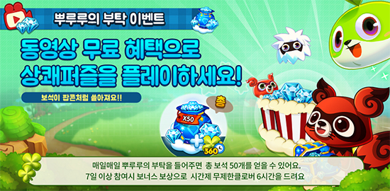 NHN 629ÀÇ 3¸ÅÄ¡ ÆÛÁñ°ÔÀÓ '¿ìÆÄ·çÆÎ'ÀÌ 29ÀÏ ¾÷µ¥ÀÌÆ®¸¦ ÅëÇØ ¹«·á ÇýÅÃÀ» Á¦°øÇÏ´Â ¡®µ¿¿µ»ó º¸±â¡¯¸¦ Æ÷ÇÔÇÑ 6Á¾ÀÇ ½Å±Ô ÄÜÅÙÃ÷¸¦ °ø°³Çß´Ù.