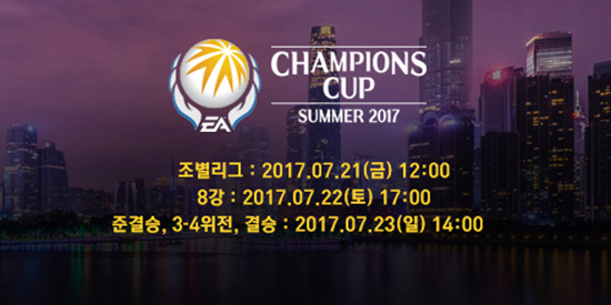 ÀÏ·ºÆ®·Î´Ð¾ÆÃ÷ÄÚ¸®¾Æ(Electronic Arts Korea LLC.)´Â ½ºÇǾîÇìµå(Spearhead, www.spearhead.kr)°¡ °³¹ßÇÏ°í ³Ø½¼ÀÌ ¼ºñ½ºÇÏ´Â ¿Â¶óÀÎ Ã౸°ÔÀÓEA SPORTS¢â FIFA ONLINE 3ÀÇ °¡Àå Å« e½ºÆ÷Ã÷´ëȸÀÎ ¡®EA Champions Cup 2017 Summer (ÀÌÇÏ, ¡®EAèÇǾð½ºÄÅ ¼¸Ó2017¡¯)¡¯ÀÇ °³¸·ÀÌ ÀÏÁÖÀÏ ¾ÕÀ¸·Î ´Ù°¡¿Â °¡¿îµ¥ ´Ù¾çÇÑ ¿Â¶óÀÎ À̺¥Æ®¸¦ ÁøÇàÇÑ´Ù°í ¹àÇû´Ù. ¡®EAèÇǾð½ºÄÅ ¼¸Ó2017¡¯ÀÇ ¼º°øÀûÀÎ °³ÃÖ¸¦ ±â³äÇÏ°í ½ÃûÀ» µ¶·ÁÇϱâ À§ÇØ, ³Ø½¼Àº EA SPORTS¢â FIFA ONLINE 3 ÀÇ °ø½Ä ȨÆäÀÌÁö¿¡¼ ´Ù¾çÇÑ ¿Â¶óÀÎ À̺¥Æ®¸¦ ÁغñÇß´Ù. ù¹øÂ° ¿Â¶óÀÎ À̺¥Æ®´Â 7¿ù 13ÀϺÎÅÍ 21ÀϱîÁö ÁøÇàµÇ¸ç, EAèÇǾð½ºÄÅ ¼¸Ó2017ÀÇ ¿ì½ÂÀÚ¸¦ ¸ÂÃß´Â À̺¥Æ®·Î À¯Àú´Â °ø½Ä À̺¥Æ® ÆäÀÌÁö¿¡ ÃÖÁ¾ ¿ì½ÂÀÚ 2ÆÀÀ» ÀÀ¸ðÇÒ ¼ö ÀÖ´Ù. ¿ì½ÂÆÀÀ» ¸ÂÃá À¯Àú´Â ´Ù¾çÇÑ °ÔÀÓ ¾ÆÀÌÅÛÀ» ¾ò°Ô µÈ´Ù. µÎ¹øÂ° ¿Â¶óÀÎ À̺¥Æ®´Â Åä³Ê¸ÕÆ® ±â°£ÀÎ 7¿ù 21ÀϺÎÅÍ 23ÀϱîÁö ÁøÇàµÈ´Ù. ÀÌ ±â°£¿¡ Çѱ¹ ÃâÀü ¼±¼öµéÀ» ÀÀ¿øÇϱâ À§ÇÑ ¶óÀ̺ê äÆÃ À̺¥Æ®°¡ ÁøÇàµÈ´Ù. äÆÃ â¿¡ ÀÀ¿ø ¸Þ½ÃÁö¸¦ ³²±ä À¯Àú Àü¿ø¿¡°Ô °ÔÀÓ ¾ÆÀÌÅÛÀÌ Á¦°øµÈ´Ù. ¸¶Áö¸· À̺¥Æ®´Â Çѱ¹ÆÀÀÌ ¡®EAèÇǾð½ºÄÅ ¼¸Ó 2017¡¯ °á½Â¿¡ ÁøÃâÇÒ °æ¿ì, ¡®Æ®·ÎÇǸ¦ Àâ¾Æ¶ó¡¯ ¶óÀ̺ê À̺¥Æ®°¡ ÁøÇàµÈ´Ù. ¶óÀÌºê ¹æ¼Û Áß ÃâÇöÇÏ´Â Æ®·ÎÇÇ ¼öÁý °³¼ö¿¡ µû¶ó Â÷µîÀ¸·Î ¸®¿öµå°¡ ÁøÇàµÈ´Ù. °æ±â Æ÷¸Ë, À̺¥Æ® ÀÏÁ¤, ÃâÀü¼±¼ö ÇÁ·ÎÇÊ µî ¡®EAèÇǾð½ºÄÅ ¼¸Ó 2017¡¯¿¡ ´ëÇÑ º¸´Ù ÀÚ¼¼ÇÑ Á¤º¸´Â EA SPORTS¢â FIFA ONLINE 3 °ø½Ä ȨÆäÀÌÁö (http://fifaonline3.nexon.com) ¿¡¼ È®ÀÎ ÇÒ ¼ö ÀÖÀ¸¸ç, EACC Summer 2017 °ø½Ä ±ÔÁ¤(¿µ¹®)Àº (http://www.eakorea.co.kr/EACC/Official-Rules-for-EACC-Summer-2017.pdf)¿¡¼ º¼ ¼ö ÀÖ´Ù.