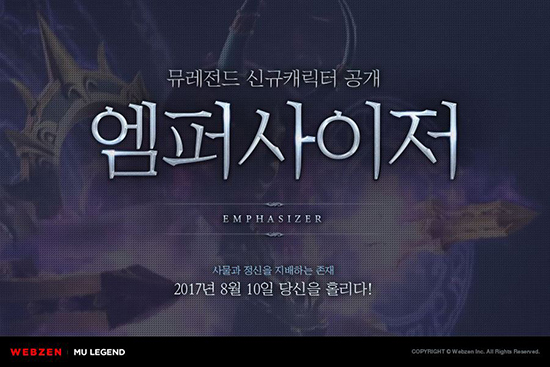 À¥Á¨ÀÌ ÀÚ»çÀÇ PC¿Â¶óÀΰÔÀÓ ¡®¹Â ·¹Àüµå(MU LEGEND)¡¯¿¡ Ãâ½Ã ÈÄ Ã¹ ½Å±Ô Ŭ·¡½º ¡®¿¥ÆÛ»çÀÌÀú¡¯¸¦ Ãß°¡ÇÑ´Ù. À¥Á¨Àº 8¿ù 10ÀÏ ¾÷µ¥ÀÌÆ®¸¦ ÅëÇØ 5¹øÂ° Ŭ·¡½º ¡®¿¥ÆÛ»çÀÌÀú(Emphasizer)¡¯¸¦ Àû¿ëÇÑ´Ù. Á¤½Ä¼ºñ½º ÀüºÎÅÍ ¡®Æ¼Â¡¡¯ Çü½ÄÀ¸·Î ¼ö Â÷·Ê ¼±º¸ÀÎ ¹Ù ÀÖ´Â ¿©¼º ij¸¯ÅÍ ¿¥ÆÛ»çÀÌÀú´Â ÀûÀ» Á¶Á¾Çϰųª ¾àȽÃŰ´Â ¡®±ºÁßÁ¦¾î¡¯¿¡ Æ¯ÈµÈ ½ºÅ³°ú ¹«±â¸¦ ÁÖ·Î »ç¿ëÇÑ´Ù. ¿¥ÆÛ»çÀÌÀú´Â ¿À·£ ±â°£ Ȥµ¶ÇÑ ¼ö·ÃÀ» ÅëÇØ »ç¹°°ú Á¤½ÅÀ» Á¦¾îÇÏ´Â ´É·ÂÀ» °®Ãß°Ô µÈ ij¸¯ÅÍ´Ù. Á¤±³ÇÑ °ø°Ý ´É·ÂÀ» ¹ÙÅÁÀ¸·Î ´Ù¼öÀÇ Àû¿¡°Ô °·ÂÇÑ ÇÇÇØ¸¦ ÀÔÈ÷´Â ¡®¹ë·±½ºÇü µô·¯¡¯ÀÇ ¿ªÇÒÀ» ¼öÇàÇÑ´Ù. À¥Á¨Àº ¾÷µ¥ÀÌÆ®¿Í ÇÔ²² ¿¥ÆÛ»çÀÌÀúÀÇ ¸ñ¼Ò¸®¸¦ ¿¬±âÇÑ ¼º¿ì À±¾Æ¿µÀÇ ÀÎÅͺä¿Í ¹Â ·¹ÀüµåÀÇ ÁÖ¿ä Å׸¶À½¾ÇÀ» ÀÛ°îÇÑ °ÔÀÓÀ½¾Ç ÀåÀÎ ¡®Á¦½ºÆÛ ۵å(Jesper Kyd)¡¯ÀÇ Æ¯º° ÀÎÅÍºä ¿µ»óµµ ÇÔ²² °ø°³ÇÑ´Ù. À¥Á¨Àº ¿¥ÆÛ»çÀÌÀúÀÇ ¾÷µ¥ÀÌÆ®¸¦ ¾ÕµÎ°í ¿À´Ã(8¿ù1ÀÏ)ºÎÅÍ 8¿ù 9ÀϱîÁö ¿¥ÆÛ»çÀÌÀú ¾÷µ¥ÀÌÆ® »çÀüµî·Ï À̺¥Æ®¸¦ ÁøÇàÇÑ´Ù. ¹Â ·¹ÀüµåÀÇ À̺¥Æ® ÆäÀÌÁö¿¡¼ »çÀüµî·Ï¿¡ Âü¿©ÇÑ ÀÌ¿ëÀÚ´Â ¾÷µ¥ÀÌÆ® ÈÄ °ÔÀÓ¿¡¼ »ç¿ëÇÒ ¼ö ÀÖ´Â ¾ÆÀÌÅÛ(200 ±Í¼Ó·¹µåÁ¨∙·¯ºí¸® ²¿¸¶ ¿¥ÆÛ Æê)À» ¹ÞÀ» ¼ö ÀÖ´Ù. À¥Á¨Àº »çÀü¿¹¾àÆäÀÌÁö¿¡¼ ¡®¿¥ÆÛ»çÀÌÀú ƼÀú¿µ»ó¡¯À» °¨»óÇÑ ÈÄ º»ÀÎÀÇ SNS¿¡ °øÀ¯ÇÑ È¸¿øµé Áß Ãß÷À» ÅëÇØ ¡®¹®È»óǰ±Ç 1¸¸¿ø±Ç¡¯À» ¼±¹°ÇÏ´Â °æÇ° À̺¥Æ®µµ ÁغñÇß´Ù. ÇÑÆí, À¥Á¨Àº ÀÌ´Þ Áß ¸ð¹ÙÀÏ ¿¬µ¿ ±â´ÉÀ¸·Î ¾ðÁ¦ ¾îµð¼³ª PC ¿Â¶óÀΰÔÀÓ ¡®¹Â ·¹Àüµå¡¯ÀÇ °ÔÀÓ Á¤º¸¸¦ È®ÀÎÇÒ ¼ö ÀÖ´Â ¸ð¹ÙÀÏ ¾ÖÇø®ÄÉÀÌ¼Ç ¡®¹Â·¹Àüµå Ç÷¯½º¡¯¸¦ ±¸±ÛÇ÷¹ÀÌ ½ºÅä¾î¿Í ¾ÖÇà ¾Û½ºÅä¾î¿¡ Ãâ½ÃÇÒ ¿¹Á¤ÀÌ´Ù. ¹Â·¹Àüµå Ç÷¯½º´Â ÀÚ½ÅÀÌ ¼Ò¼ÓµÈ ±â»ç´Ü ±¸¼º¿ø°úÀÇ Ã¤ÆÃ ¹× ¾ÆÀÌÅÛ, Àκ¥Å丮 µî ij¸¯ÅÍ Á¤º¸¸¦ °Ë»öÇÒ ¼ö ÀÖ´Â ±â´ÉÀ» °®Ãß°í ÀÖ´Ù. ¿Â¶óÀÎÀ¸·Î °ÔÀÓ¿¡ Á¢¼ÓÇÏÁö ¾Ê´õ¶óµµ ¡®´øÀü º¸»ó¡¯À» ȹµæÇÒ ¼ö ÀÖ´Â ¼ÒÅÁ ±â´ÉÀ» Áö¿øÇØ °ÔÀÓ ÀÌ¿ëÀÚÀÇ ÆíÀǼºÀ» ÇÑÃþ °ÈÇÒ °èȹÀÌ´Ù. À¥Á¨ ¡®¹Â ·¹Àüµå¡¯ÀÇ ½Å±Ô ij¸¯ÅÍ ¡®¿¥ÆÛ»çÀÌÀú¡¯¿¡ ´ëÇÑ º¸´Ù ÀÚ¼¼ÇÑ Á¤º¸´Â »çÀüµî·Ï Ưº°ÆäÀÌÁö(http://mulegend.webzen.co.kr/events/emphasizera/prereservation)¿¡¼ È®ÀÎÇÒ ¼ö ÀÖ´Ù.