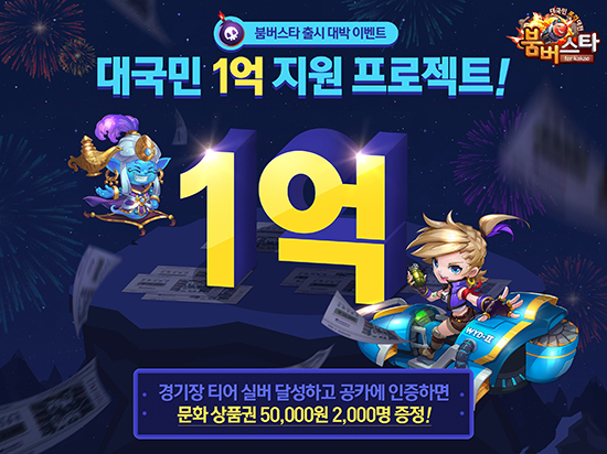 C.O.C ±è¼º³² °ÔÀÓ»ç¾÷½ÇÀåÀº ¡°ºÕ¹ö½ºÅ¸ for Kakao¸¦ Áñ°ÜÁֽô ÀÌ¿ëÀںеéÀ» À§ÇØ Åë Å« ÇÁ·Î¸ð¼ÇÀ» ÁøÇàÇÑ´Ù.¡±¶ó¸ç, ¡°´©±¸³ª ½±°Ô Âü¿©ÇÒ ¼ö ÀÖ°í, 2õ¸í ±Ô¸ð¿¡ ÃÑ 1¾ï ¿ø »ó´çÀ¸·Î ÁøÇàµÇ´Â ÇÁ·Î¸ð¼ÇÀÎ ¸¸Å ¸¹ÀÌ Âü¿©ÇϽðí ǪÁüÇÑ ÇýÅÃÀ» ¹Þ¾Æ°¡½Ã±â ¹Ù¶õ´Ù.¡±¶ó°í ¹àÇû´Ù.