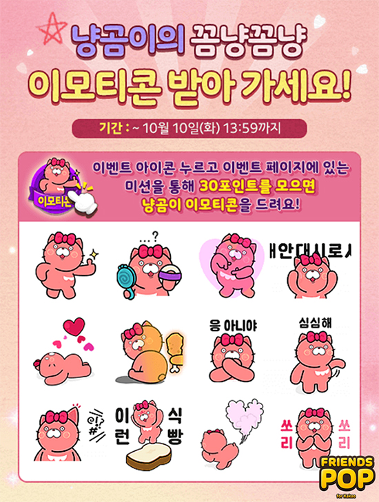 NHNÇȼ¿Å¥ºê°¡ īī¿ÀÇÁ·»Áî IP¸¦ Ȱ¿ëÇØ °³¹ßÇÑ ÀÎ±â ÆÛÁñ°ÔÀÓ 'ÇÁ·»ÁîÆË for Kakao'(ÀÌÇÏ ÇÁ·»ÁîÆË)ÀÌ Ãß¼® Ȳ±Ý¿¬ÈÞ¸¦ ¸Â¾Æ ÀÌ¿ëÀÚµéÀÌ Áñ±æ ´Ù¾çÇÑ À̺¥Æ®¸¦ ¸¶·ÃÇß´Ù. ¿ì¼± ¿À´ÃºÎÅÍ Áñ±æ ¼ö ÀÖ´Â À̺¥Æ®´Â ¡ãīī¿ÀÅå À̸ðƼÄÜ Áö±Þ À̺¥Æ®¿Í ¡ãÃß¼®¿ùµå À̺¥Æ®´Ù. īī¿ÀÅå À̸ðƼÄÜ Áö±Þ À̺¥Æ®´Â Á¦½ÃµÈ ¹Ì¼ÇÀ» ´Þ¼ºÇÏ´Â ÀÌ¿ëÀÚ¿¡°Ô ¡®³É°õÀÌÀÇ ²Ä³É²Ä³É¡¯ īī¿ÀÅå À̸ðƼÄÜÀ» Áö±ÞÇÏ´Â À̺¥Æ®´Ù. ÀÌ¿ëÀڴ ģ±¸¸¦ ÃÊ´ëÇϰųª ¸®¾ó¿ùµå/ŸÀÓ¿ùµå¿¡¼ ÇöÀç º»Àη¹º§ ÀÌ»óÀÇ ½ºÅ×ÀÌÁö¸¦ Ç÷¹ÀÌ ÇÒ ¶§¸¶´Ù °¢ °¢ 10Æ÷ÀÎÆ®¾¿À» ȹµæÇÒ ¼ö ÀÖÀ¸¸ç, 30Æ÷ÀÎÆ®¸¦ ȹµæÇϸé À̸ðƼÄÜÀÌ Áï½Ã īī¿ÀÅåÀ» ÅëÇØ ÀÚµ¿ Áö±ÞµÈ´Ù. Ãß¼®¿ùµå À̺¥Æ®´Â À̺¥Æ® ½ºÅ×ÀÌÁö¸¦ Ŭ¸®¾î ÇÒ ¶§¸¶´Ù Áö±ÞµÇ´Â Á¤ÇØÁø Á¶°¢µéÀ» ¸ð¾Æ ¿Ï¼ºÇϸé ÇØ´ç º¸»óÀ» ȹµæÇÏ´Â À̺¥Æ®´Ù. À̺¥Æ®¸Ê Ŭ¸®¾î ÈÄ, Ä£±¸¿¡°Ô ¡®¼±¹° º¸³»±â¡¯¸¦ ÇÏ¸é ¼±¹° º¸³»´Â ÀÌ¿ëÀÚ¿Í ¼±¹° ¹Þ´Â ÀÌ¿ëÀÚ ¸ðµÎ º¸»óÀ» ȹµæÇÒ ¼ö ÀÖ´Ù. ±ä ¿¬ÈÞ µ¿¾È ÀÌ¿ëÀÚµéÀÌ 'ÇÁ·»ÁîÆË'À» ²ÙÁØÈ÷ Àç¹ÌÀÖ°Ô Ç÷¹ÀÌ ÇÒ ¼ö ÀÖµµ·Ï 10¿ù¿¡µµ ´Ù¾çÇÑ À̺¥Æ®¸¦ ¿¬À̾î ÁøÇàÇÑ´Ù. 1ÀÏ¿¡´Â ¡ã4~5¼º Ãß¼® ÇÑÁ¤ÆÇ ÇÁ·»Áî Ãâ½ÃÇϰí, ¡ã24ÀÏ Ãâ¼® À̺¥Æ®¸¦ ½ÃÀÛÇÑ´Ù 24ÀÏ Ãâ¼® À̺¥Æ®´Â 24Àϰ£ Ãâ¼®ÇÏ´Â ÀÌ¿ëÀÚ¿¡°Ô ÀÏÀÏ º¸»óÀ» Áö±ÞÇÏ´Â À̺¥Æ®·Î, 24ÀÏÂ÷¿¡´Â ½ÊÀÌÁö½ÅÀ¸·Î º¯½ÅÇÑ ÇÑÁ¤ÆÇ ÇÁ·»Á º¸»óÀ¸·Î Áö±ÞÇÑ´Ù. 2ÀϺÎÅÍ´Â ¡ã3ÀÏ µ¿¾È ÇÏ·ç Çѹø¾¿ û¹éÀüÀÌ ÁøÇàµÇ¸ç, 4ÀÏ¿¡´Â ¡ã»ç´Ù¸®Å¸±â·Î ¹Ì¼ÇÀ» Áñ±â´Â ³»¸¾´ë·Î À̺¥Æ®°¡ ÁøÇàµÉ ¿¹Á¤ÀÌ´Ù. À̺¥Æ®¿¡ °ü·ÃµÈ º¸´Ù ÀÚ¼¼ÇÑ »çÇ×Àº °ÔÀÓ ³» À̺¥Æ® °øÁö ¶Ç´Â 'ÇÁ·»ÁîÆË' °ø½Ä Ä¿¹Â´ÏƼ¸¦ ÅëÇØ È®ÀÎÇÒ ¼ö ÀÖ´Ù.