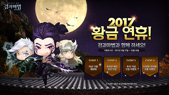 ·îÅõÄÚ¸®¾Æ´Â ¸ð¹ÙÀÏ MMORPG(´ÙÁßÁ¢¼Ó¿ªÇÒ¼öÇà°ÔÀÓ) '°Ë°ú¸¶¹ý for kakao'(ÀÌÇÏ °Ë°ú¸¶¹ý)¡¯¿¡¼ Ãß¼® ¸íÀýÀ» ¸Â¾Æ dz¼ºÇÑ ½ÃÁð À̺¥Æ®¸¦ ÁøÇàÇÑ´Ù°í 27ÀÏ ¹àÇû´Ù. Áö³ÇØ 6¿ù Ãâ½ÃµÈ '°Ë°ú¸¶¹ý'Àº ¿Ï¼ºµµ ³ôÀº ÄÜÅÙÃ÷¿Í À¯Àú°£ Ä¿¹Â´ÏƼ¸¦ °Á¶ÇÑ PC±Þ MMORPGÀÇ °¨¼ºÀ» ¸ð¹ÙÀÏ¿¡ ÃÖÀûÈµÈ Á¶ÀÛ°¨À¸·Î ¿Ï¼º½ÃŲ ¸ð¹ÙÀÏ °ÔÀÓÀÌ´Ù. ƯÈ÷, ¿ÀÇÂÇʵ忡¼ ÆîÃÄÁö´Â ÆÇŸÁödzÀÇ 3D ±×·¡ÇÈÀ» Áß½ÉÀ¸·Î 3´ë3 PVP, 10´ë10 ÀüÀå, ´ë±Ô¸ð ¿µÁöÀü µî À¯Àú°£ ´ë°á ¿ä¼Ò¸¦ Â÷º°È µÈ ½Ã½ºÅÛÀÌ Æ¯Â¡ÀÌ´Ù. ·îÅõÄÚ¸®¾Æ´Â 27ÀϺÎÅÍ Ãß¼® ¿¬ÈÞ ±â°£ µ¿¾È '°Ë°ú¸¶¹ý' ÀΰÔÀÓ ÇýÅÃÀ» ÁõÁ¤Çϴ Ȳ±Ý¿¬ÈÞ À̺¥Æ®¸¦ ½Ç½ÃÇÑ´Ù. ¸ÕÀú, '°Ë°ú¸¶¹ý' Ãâ½Ã ÀÌÈÄ ¼±º¸¿´´ø ÀÇ»ó Áß Å« Àα⸦ ¸ð¾Ò´ø °í¾çÀÌ, ¹ÙIJ½º, »êŸ ÀÇ»ó µîÀ» ºñ·ÔÇÑ ÃÑ 13Á¾ÀÇ ÀÇ»óÀ» ´Ù½Ã ±¸¸ÅÇÒ ¼ö ÀÖ´Â ±âȸ¸¦ Á¦°øÇϸç, ¿À´Â 10¿ù 10ÀϱîÁö °ÔÀÓ¿¡ Á¢¼Ó¸¸Çصµ º¸¼®, °È¼®, Èñ±Í 3·¹º§ ¹®¾ç µîÀÇ ´Ù¾çÇÑ ÀΰÔÀÓ ¾ÆÀÌÅÛÀ» Áö±ÞÇÏ´Â '¿¬¼Ó ·Î±×ÀÎ' À̺¥Æ®¸¦ ÁøÇàÇÑ´Ù. ÀÌ¿Í ÇÔ²² ¿ì¸® °íÀ¯ÀÇ ¸íÀý ÇѰ¡À§¸¦ ´õ¿í dz¼ºÇÏ°Ô Áñ±æ ¼ö ÀÖµµ·Ï 'Ãß¼® ±â³ä µå¶ø À̺¥Æ®'¸¦ ½Ç½ÃÇϴµ¥, ÀÌ´Â ÀÏ¹Ý Çʵ忡¼ ·£´ýÇÏ°Ô µå¶øµÇ´Â '¼ÛÆí'°ú '»êÀû'À» ȹµæÇØ ÀΰÔÀÓ ¾ÆÀÌÅÛ (4·¹º§ º¸¼®, Å» °Í °È¼®, °¢Á¾ ÀÇ»ó±Ç µî)À¸·Î ±³È¯ÇÒ ¼ö ÀÖ´Â À̺¥Æ®´Ù. ±× ¿Ü¿¡µµ, ¿À´Â 29ÀϺÎÅÍ ³»´Þ 9ÀϱîÁö ¿¬ÈÞ ¸ÂÀÌ ´ö´ã ´ñ±Û ´Þ±â À̺¥Æ®¸¦ ÁøÇàÇϰí, ¸ñÇ¥ ´Þ¼º °¹¼ö¿¡ µû¶ó ´Ù¾çÇÑ º¸»óÀ» Áö±ÞÇÏ´Â Ä¿¹Â´ÏƼ À̺¥Æ® 'Áñ°Å¿î Ãß¼® ¿¬ÈÞ ¸ðµÎ¸ðµÎ ÇູÇϼ¼¿ä' ¸¦ ½Ç½ÃÇÑ´Ù. ·îÅõÄÚ¸®¾Æ ÀÌÈ«ÀÇ °ÔÀÓ»ç¾÷º»ºÎÀåÀº "¹ÎÁ· ´ë¸íÀý Ãß¼®À» ¾ÕµÎ°í '°Ë°ú¸¶¹ý'¿¡¼ ´Ù¾çÇÑ À̺¥Æ®¿Í ÇýÅÃÀÌ ´ã±ä ½ÃÁð À̺¥Æ®¸¦ ¼±º¸ÀδÙ"¸ç, "±âÁ¸¿¡ ȹµæÇϱ⠾î·Á¿ü´ø Èñ±Í ¾ÆÀÌÅÛÀ» ¾ò¾î ij¸¯Å͸¦ ÆøÇ³ ¼ºÀå½Ãų ¼ö ÀÖ´Â ±âȸ·Î '°Ë°ú¸¶¹ý'°ú ÇÔ²² dz¼ºÇÏ°íµµ Áñ°Å¿î ¿¬ÈÞ º¸³»±æ ¹Ù¶õ´Ù"°í ÀüÇß´Ù. ÇÑÆí, °ÔÀÓ ¹× À̺¥Æ® °üÇÑ º¸´Ù ÀÚ¼¼ÇÑ ³»¿ëÀº °ø½Ä Ä«Æä¿¡¼ È®ÀÎ °¡´ÉÇÏ´Ù.