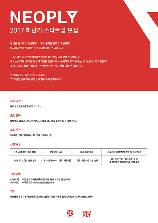 ³×¿ÀÀ§Áî¿¡¼ ¿î¿µÇÏ´Â ½ºÅ¸Æ®¾÷ ¹ß±¼ ¹× Áö¿ø, ÅõÀÚ ÇÁ·Î±×·¥ ³×¿ÀÇöóÀÌ(¼¾ÅÍÀå ±Ç¿ë±æ)°¡ 2017³â ÇϹݱ⠽ºÅ¸Æ®¾÷À» ¸ðÁýÇÑ´Ù°í 23ÀÏ ¹àÇû´Ù. ¡®³×¿ÀÇöóÀÌ¡¯´Â 2008³â ¼³¸³µÇ¾î ¼±µ¥ÀÌÅäÁî ÅõÀÚ¸¦ ½ÃÀÛÀ¸·Î, ÇöÀç±îÁö ´Ù¼öÀÇ Ãʱ⠽ºÅ¸Æ®¾÷À» ¹ß±¼Çϰí ÅõÀÚ ¹× À°¼ºÇÏ´Â ÇÁ·Î±×·¥À» ÁøÇàÇØ ¿Ô´Ù. ¡®³×¿ÀÇöóÀÌ¡¯¸¦ °ÅÃİ£ ¾à 70%ÀÇ ½ºÅ¸Æ®¾÷ÀÌ ÈÄ¼Ó ÅõÀÚ À¯Ä¡¿¡ ¼º°øÇßÀ¸¸ç, ÅõÀÚ À¯Ä¡ ±Ý¾×µµ 200¾ï¿ø¿¡ ´ÞÇÑ´Ù. ¡®³×¿ÀÇöóÀÌ¡¯´Â 2016³â īǮ ±â¹Ý ½ÂÂ÷ °øÀ¯¼ºñ½º Ç÷§Æû ¡®·°½Ã¡¯ µî ÃÑ 9°³ ±â¾÷¿¡, 2017³â »ó¹Ý±â¿¡´Â 6°³ ±â¾÷¿¡ ÅõÀÚ¸¦ ´ÜÇàÇß´Ù. À̹ø ÇϹݱ⠽ºÅ¸Æ®¾÷ÀÇ ¸ðÁý ºÐ¾ß´Â ºí·ÏüÀÎ, µö·¯´×, O2O(Online to Offline), ÀÌÄ¿¸Ó½º, ÇÉÅ×Å©, ÇコÄɾî, ¼ºñ½º Ç÷§Æû µî IT ±â¹Ý ¼ºñ½º·Î, ¿¹ºñ â¾÷ÀÚ¸¦ Æ÷ÇÔÇÏ¿© ½ºÅ¸Æ®¾÷ÀÌ¸é ´©±¸³ª Áö¿ø °¡´ÉÇÏ´Ù. Áö¿øÀ» Èñ¸ÁÇÏ´Â ±â¾÷Àº 11¿ù 6ÀϱîÁö ÆÀ¿ø ÇÁ·ÎÇÊÀ» Æ÷ÇÔÇÑ ÀÚÀ¯Çü½ÄÀÇ »ç¾÷°èȹ¼¸¦ ÀÛ¼ºÇØ À̸ÞÀÏ(contact@neoply.com)·Î Á¢¼öÇÏ¸é µÈ´Ù. 1Â÷ ¼·ù½É»ç¿Í 2Â÷ ÀÎÅͺä½É»ç¸¦ °ÅÃÄ ¼±¹ßµÈ ½ºÅ¸Æ®¾÷¿¡°Ô´Â µ¶¸³Çü »ç¹«°ø°£ Á¦°ø°ú Ãʱâ â¾÷ÀÚ±Ý ÅõÀÚ¸¦ ÁøÇàÇÑ´Ù. ¶ÇÇÑ 1³â°£ ÃÖ¼Ò ¿ä°Ç Á¦Ç°(Minimum Viable Product)°³¹ß¿¡¼ Á¤½Ä ¼ºñ½º±îÁö ½ÃÀå¿¡ ¼º°øÀûÀ¸·Î ¾ÈÂøÇÒ ¼ö ÀÖµµ·Ï ¸ÂÃãÇü ½Ç¹« ¸àÅ丵µµ Áö¿øÇÑ´Ù. ¡®³×¿ÀÇöóÀÌ¡¯ÀÇ ½Ç¹« ¸àÅ丵¿¡´Â ³×¿ÀÀ§Áî ³»¿¡¼ ±Ù¹«ÇÏ´Â Çö¾÷ Àü¹®°¡µµ Á÷Á¢ Âü¿©Çϰí ÀÖ¾î â¾÷ °úÁ¤¿¡¼ ¹ß»ýÇÏ´Â ¹®Á¦¸¦ ºü¸£°Ô ÇØ°áÇÒ ¼ö ÀÖµµ·Ï µ½´Â´Ù. ÀÌ ¿Ü¿¡µµ ¼±¹ßµÈ ½ºÅ¸Æ®¾÷¿¡°Ô´Â Á¹¾÷ ±â¾÷°úÀÇ ±³·ùÈ®´ë¿Í ½ºÅ¸Æ®¾÷ °æ¿µ ³ëÇÏ¿ì °øÀ¯¸¦ À§ÇÑ ¿öÅ©¼ó ¹× ³×Æ®¿öÅ· ¸ðÀÓµµ ¸¶·ÃÇØ ÁØ´Ù. ¶ÇÇÑ ÈÄ¼Ó ÅõÀÚÀÚ ¿¬°á°ú ³×¿ÀÀ§Áî ÇöÁö ÀÚȸ»çÀÎ ³×¿ÀÇöóÀÌÂ÷À̳ª¸¦ ÅëÇÑ Áß±¹ ÁøÃâ ±âȸµµ Á¦°øÇÒ ¿¹Á¤ÀÌ´Ù. ÇöÀç ³×¿ÀÇöóÀ̰¡ ¿¬°áÇØÁØ °øµ¿ ¹× ÈÄ¼Ó ÅõÀÚ»ç´Â ¼¼¸¶Æ®·£½º¸µÅ©Àκ£½ºÆ®¸ÕÆ®, ÇÁ¶óÀ̸Ó, ĸ½ºÅæÆÄÆ®³Ê½º, º»¿£Á©½ºÆÄÆ®³Ê½º, 500½ºÅ¸Æ®¾÷ µîÀÌ ÀÖÀ¸¸ç, °è¿»ç ³×¿ÀÀ§ÁîÀκ£½ºÆ®¸ÕÆ®¿Í Áö¿ÂÀκ£½ºÆ®¸ÕÆ®µµ ±ä¹ÐÇÑ Çù¾÷À» ÅëÇØ ½ºÅ¸Æ®¾÷ÀÇ Áö¼Ó ¼ºÀåÀ» µ½°í ÀÖ´Ù. ³×¿ÀÇöóÀÌ 2017 ÇϹݱ⠽ºÅ¸Æ®¾÷ ¸ðÁý¿¡ °üÇÑ ÀÚ¼¼ÇÑ »çÇ×Àº °ø½Ä ÆäÀ̽ººÏ(www.facebook.com/NEOPLY)°ú À¥»çÀÌÆ®(www.neoply.com)¿¡¼ È®ÀÎÇÒ ¼ö ÀÖ´Ù.