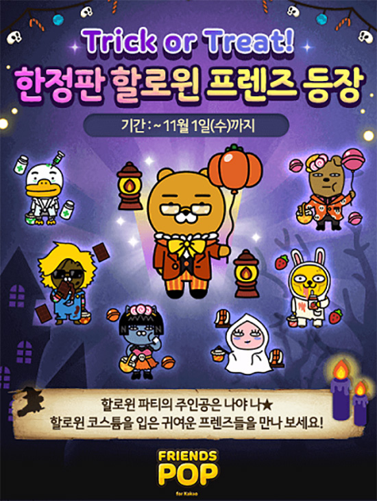 NHN¿£ÅÍÅ×ÀÎ¸ÕÆ®¢ß(´ëÇ¥ Á¤¿ìÁø)¿Í °ÔÀÓ°³¹ß ÀÚȸ»çÀÇ ´ëÇ¥ °ÔÀÓ '¿¡¿À½º', '¿ìÆÄ·ç¸¶¿îƾ', 'Å©·ç¼¼ÀÌ´õÄù½ºÆ®'°¡ ÇÒ·ÎÀ© ¸ÂÀÌ À̺¥Æ®¸¦ ½ÃÀÛÇß´Ù. 'ÇÁ·»ÁîÆË'Àº 4~5¼º ÇÒ·ÎÀ© ÇÑÁ¤ÆÇ ÇÁ·»Á Ãâ½ÃÇß´Ù. 11¿ù 1ÀϱîÁö À¯·É ¾îÇÇÄ¡, ÃÊÄÚ¸Å´Ï¾Æ Á¦ÀÌÁö, µþ±âÁßµ¶ ¹«Áö, ¹é½Å Æ©ºê, È£¹ÚÁý»ç ¶óÀ̾ð, ¾Ë»çÅÁ ³×¿À, ¾Ë»çÅÁ ÇÁ·Îµµ ÃÑ 7Á¾ÀÇ ±Í¿©¿î ÇÒ·ÎÀ© ÇÁ·»Á ȹµæÇÒ ¼ö ÀÖ´Ù. ÇÁ·»Áî °ü·Ã À̺¥Æ®µµ ÁغñÇß´Ù. 31ÀϱîÁö ÀÏÀÚ º°·Î ÁöÁ¤µÈ ÇÁ·»Áî ÀåÂø ÈÄ ¹Ì¼ÇÀ» ¿Ï·áÇÏ¸é º¸»óÀ» Áö±ÞÇÏ´Â ¡®µµÀå ¸ðÀ¸±â¡¯ À̺¥Æ®, ƯÁ¤ ÇÁ·»ÁîÀÇ »Ì±â ÃâÇö È®·üÀÌ 2¹è Áõ°¡ÇÏ´Â ¡®È®·ü¾÷¡¯ À̺¥Æ®¸¦ ÁøÇàÇϰí ÀÖ´Ù. À̿ܿ¡µµ ¸®¾ó¿ùµå ½Å±ÔÁö¿ªÀÎ ¡®POP½ºÆ©µð¿À¡¯¸¦ ¿ÀÇÂÇϸé¼, ÇöÀç ·¹º§¿¡¼ 10´Ü°è ³ôÀº ·¹º§±îÁö µµ´ÞÇÏ¸é º¸»óÀ» ¹ÞÀ» ¼ö ÀÖ´Â ¡®¸®¾ó¿ùµå ·¹º§¾÷¡¯ À̺¥Æ®, À̺¥Æ® ±â°£ ³» °¡Àå ³ôÀº ·¹º§À» ´Þ¼ºÇÑ 1~3À§ ÀÌ¿ëÀÚ¿¡°Ô ·çºñ¸¦ Áö±ÞÇÏ´Â ¡®¸®¾ó¿ùµå ´Þ·Á¶ó ·¹º§¿Õ¡¯ À̺¥Æ®µµ ÇÔ²² ½ÃÀÛÇß´Ù. '¿ìÆÄ·ç¸¶¿îƾ'Àº ¿À´Ã ¼½ÄÁö ½ºÅ² ÄÜÅÙÃ÷ °ø°³¿Í ÇÒ·ÎÀ© ¿ìÆÄ·ç Ãâ½Ã¸¦ ÇʵηΠÇÏ´Â ¾÷µ¥ÀÌÆ®¸¦ ´ÜÇàÇß´Ù. ¼½ÄÁö ½ºÅ²Àº À̹ø ¾÷µ¥ÀÌÆ®¸¦ ÅëÇØ óÀ½ °ø°³µÈ ÄÜÅÙÃ÷·Î, ½ºÅ²À» ȹµæ ¶Ç´Â ±¸¸ÅÇÏ¿© ±âÁ¸ ¿ìÆÄ·ç ¼½ÄÁö¿¡ »ç¿ëÇÏ¸é ¼½ÄÁöÀÇ ¹è°æÀÌ º¯°æµÈ´Ù. ½ºÅ² ÄÜÅÙÃ÷ Ãâ½Ã¿Í ÇÔ²² ÇÒ·ÎÀ© ¼½ÄÁö ½ºÅ²À» °ø°³ÇßÀ¸¸ç, ±â³ä À̺¥Æ®·Î ÀÏÁÖÀÏ µ¿¾È °ÔÀÓ¿¡ ÇѹøÀÌ¶óµµ Á¢¼ÓÇÏ´Â ÀÌ¿ëÀÚ¿¡°Ô´Â 1ȸ¿¡ ÇÑÇØ 1ÀÏ ±â°£ ÇÒ·ÎÀ© ¼½ÄÁö ½ºÅ²À» Áö±ÞÇÑ´Ù. ¿À´Ã ÇÒ·ÎÀ© ¿ìÆÄ·çÀÎ ¡®Æ¼Æ¼¡¯µµ ÇÔ²² Ãâ½ÃÇßÀ¸¸ç, ƼƼ ¿ìÆÄ·ç ¼Òȯ °³¼ö¿¡ µû¶ó º¸¼®°ú ÇÒ·ÎÀ© ½ºÅ²À» Áö±ÞÇÏ´Â ¼Òȯ À̺¥Æ®¸¦ ½ÃÀÛÇß´Ù. ƼƼ ¿ìÆÄ·ç´Â 11¿ù 8ÀϱîÁö ¼Òȯ °¡´ÉÇÏ´Ù. ÇÒ·ÎÀ©À» ±â³äÇØ 11¿ù 1ÀϱîÁö ¸ÅÀÏ ·£´ý º¸»óÀ» Áö±ÞÇÏ´Â ¡®·Î±×ÀΡ¯ À̺¥Æ®, ÇÒ·ÎÀ© ÆÐŰÁö¸¦ ÇÒÀÎ ÆÇ¸ÅÇÏ´Â ¡®Trick or Treat¡¯ À̺¥Æ®µµ ÁøÇàÇϰí ÀÖ´Ù. 'Å©·ç¼¼ÀÌ´õÄù½ºÆ®'´Â 31ÀϱîÁö ÇÒ·ÎÀ© ¸ÂÀÌ Ã⼮üũ À̺¥Æ®¸¦ ÁøÇàÇϰí ÀÖ´Ù. Ãâ¼®¸¸À¸·Î °ÔÀÓ¿¡ µµ¿òÀÌ µÇ´Â ´Ù¾çÇÑ ¾ÆÀÌÅÛÀ» ȹµæÇÒ ¼ö ÀÖÀ¸¸ç, ÃÖÁ¾ Á¢¼ÓÀϼö¸¦ ä¿ì¸é ÇÑÁ¤ ¿ë»çÀÎ 'ÇÒ·ÎÀ© ¼îÄݶó'µµ 100% ȹµæ °¡´ÉÇÏ´Ù. À̺¥Æ®¿¡ ´ëÇÑ º¸´Ù ÀÚ¼¼ÇÑ »çÇ×Àº °ÔÀÓº° °ø½ÄÄ«Æä¸¦ ÅëÇØ È®ÀÎ °¡´ÉÇÏ´Ù.