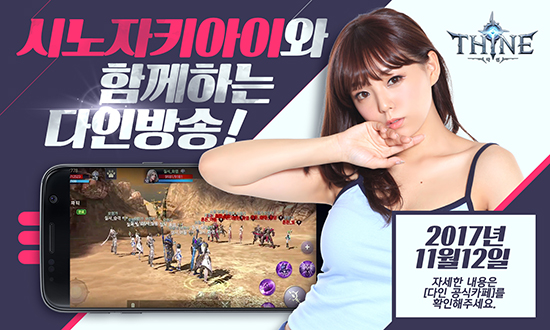 ³Ø½ºÆ®¹«ºê´Â Àڻ簡 ¼ºñ½ºÇÏ´Â ½ÅÀÛ ¸ð¹ÙÀÏ MMORPG ¡®´ÙÀÎ(Thine)¡¯ÀÌ È«º¸¸ðµ¨ÀÎ ½Ã³ëÀÚŰ ¾ÆÀÌ¿Í ÄÜÅÙÃ÷ Å©¸®¿¡ÀÌÅÍ BJ À̼³ÀÇ ÇÕµ¿ »ý¹æ¼ÛÀ» ÁøÇàÇÒ ¿¹Á¤À̶ó°í ±ÝÀÏ(9ÀÏ) ¹àÇû´Ù.