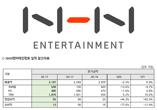 [NHN¿£ÅÍ] NHN¿£ÅÍÅ×ÀÎ¸ÕÆ®, 2017³â 3ºÐ±â ½ÇÀû¹ßÇ¥ |