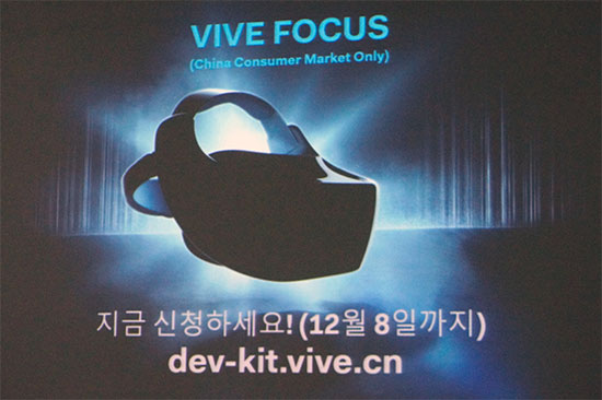 ÇöÀå¿¡¼´Â ¿ÃÀοø Á¦Ç° ¡®¹ÙÀÌºê Æ÷Ä¿½º(VIVE FOCUS)¡¯µµ °ø°³µÆ´Ù. VR °ü·Ã °³¹ßÀڴ Ưº° ÆäÀÌÁö¸¦ ÅëÇØ 12¿ù 8ÀϱîÁö °³¹ßÀÚ Å¶°ú ±â±â Áö¿øÀ» ½ÅûÇÒ ¼ö ÀÖÀ¸¸ç ƯÁ¤ ±âÁØ ÃæÁ· ½Ã °³¹ßÀÚ Å¶°ú ±â±â°¡ Áö¿øµÈ´Ù.