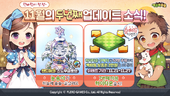 Ç÷¹·Î°ÔÀÓÁî´Â Àڻ簡 °³¹ß ¹× ¼ºñ½ºÇÏ´Â ¿©¼ºÇâ ¼Ò¼È °ÔÀÓ '¿¡ºê¸®Å¸¿î for Kakao'(ÀÌÇÏ ¿¡ºê¸®Å¸¿î)°¡ ½Å±Ô ¸¶À» ¹× ÄÝ¶óº¸ ¾ÆÀÌÅÛ Ãß°¡ µîÀÌ Æ÷ÇÔµÈ ´ë±Ô¸ð ¾÷µ¥ÀÌÆ®¸¦ ½Ç½ÃÇß´Ù°í 21ÀÏ ¹àÇû´Ù. À̹ø ¾÷µ¥ÀÌÆ®·Î ½Å±Ô ¸¶À» ¡®ÇÏÀÌŸ¿î¡¯ÀÌ »õ·Ó°Ô µîÀåÇß´Ù. ¡®ÇÏÀÌŸ¿î¡¯Àº ¡®´Ù¿îŸ¿î¡¯, ¡®¾÷Ÿ¿î¡¯¿¡ ÀÌÀº '¿¡ºê¸®Å¸¿î'ÀÇ Àϰö ¹øÂ° ¸¶À»·Î ·¹º§ 25 ÀÌ»óÀÇ ÀÌ¿ëÀÚ¶ó¸é ´©±¸³ª ¿ÀÇ °¡´ÉÇÏ´Ù. ÀÌ¿Í ÇÔ²² ½Å±Ô »ý»ê½Ã¼³ 2Á¾(½ºÅ°¾ßŰ Àü¹®Á¡, ½´Æ®·ÎÀÌÁ©ÄíÇî Àü¹®Á¡)°ú ·£µå¸¶Å© 1Á¾(½º³ë¿ì±Û·Îºê)µµ °ÔÀÓ¿¡ Ãß°¡µÆ´Ù. ¾Æ¿ï·¯ Àαâ ij¸¯ÅÍ ¡®¸ô¶û¡¯°úÀÇ ½Å±Ô ÄÝ¶óº¸ ¾ÆÀÌÅÛµµ °ø°³µÆ´Ù. À̹ø¿¡ ¼±º¸ÀÎ ¾ÆÀÌÅÛÀº ½ºÄÉÀÌÆ®Àå°ú À̱۷ç·Î ±¸¼ºµÈ ¡®¸ô¶û Å׸¶ÆÄÅ©IV¡¯, ¡®¸ô¶û »ý°ÄíŰ Àü¹®Á¡¡¯À̸ç, °ÔÀÓ ³» »óÁ¡À» ÅëÇØ ÀÚÀ¯·Ó°Ô ±¸¸ÅÇÒ ¼ö ÀÖ´Ù. Ç÷¹·Î°ÔÀÓÁî´Â '¿¡ºê¸®Å¸¿î'ÀÇ ¾÷µ¥ÀÌÆ®¸¦ ±â³äÇØ ´Ùä·Î¿î À̺¥Æ®¸¦ ¸¶·ÃÇß´Ù. ¿ì¼± 11¿ù 27ÀϱîÁö ¡®ÇÏÀÌŸ¿î¡¯À» ±¸¸ÅÇÑ ÀÌ¿ëÀÚ Áß Ãß÷À» ÅëÇØ 50¸í¿¡°Ô ¡®½Å¼¼°è »óǰ±Ç 3¸¸ ¿ø±Ç¡¯À», °ø½Ä Ä«Æä¿¡ ¼ö´É ¼öÇèÇ¥¸¦ ÀÎÁõÇÑ ÀÌ¿ëÀÚ Áß 30¸í¿¡°Ô´Â ¡®¿µÈÇ¥ 2¸Å¡¯¸¦ Áö±ÞÇÒ ¿¹Á¤ÀÌ´Ù. ¶ÇÇÑ °°Àº ±â°£ µ¿¾È ¡®¸ô¶û »ý°ÄíŰ Àü¹®Á¡¡¯ÀÇ »ý»ê ½Ã°£ÀÌ ±âÁ¸ 72½Ã°£¿¡¼ 48½Ã°£À¸·Î 33% °¡·® ´ÜÃàµÇ¸ç, ¡®¸ô¶û¡¯ ½Å±Ô ¾ÆÀÌÅÛÀ» ±¸¸ÅÇÑ ÀÌ¿ëÀÚ Áß Ãß÷À» ÅëÇØ 100¸í¿¡°Ô Çö¹° °æÇ° ¡®¸ô¶ûÀÌ ¸ÁÅä ´ã¿ä¡¯¸¦ ÁõÁ¤ÇÑ´Ù. ±×¸®°í ¾÷µ¥ÀÌÆ® ´çÀÏÀÎ 21ÀÏ ´Ü ÇϷ縸 ½Ãµå(SEED) ÀÛÀº ¹Ú½º ±¸¸Å ½Ã Ãß°¡·Î Çϳª ´õ Áö±ÞÇÏ´Â 1+1 À̺¥Æ®¸¦ ÁøÇàÇÑ´Ù. ´ëÇѹα¹ ´ëÇ¥ ¿©¼ºÇâ °ÔÀÓ '¿¡ºê¸®Å¸¿î'ÀÇ ÄÜÅÙÃ÷ ¾÷µ¥ÀÌÆ® ¹× À̺¥Æ®¿¡ ´ëÇÑ ÀÚ¼¼ÇÑ Á¤º¸´Â °ø½Ä Ä«Æä(http://cafe.naver.com/everytownforyou)¿¡¼ È®ÀÎÇÒ ¼ö ÀÖ´Ù.