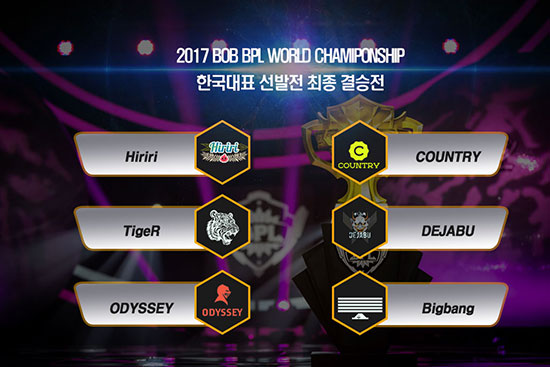 À̹ø °á½ÂÀü¿¡¼ ¸ÂºÙ°Ô µÇ´Â ÆÀÀº ¡®Hiriri¡¯, ¡®Dejabu¡¯, ¡®ODYSSEY¡¯, ¡®Bigbang¡¯, ¡®TigeR¡¯, ¡®COUNTRY¡¯ ÃÑ 6ÆÀÀÌ´Ù. ±¹³»¿¡¼ ÁøÇàµÇ¾ú´ø ¿Â¶óÀÎ ¸®±× BPL(BOB with Larva Professional League) ¿ì½ÂÆÀ Ãâ½ÅÀÎ ¡®Hiriri¡¯¿Í ¡®ODYSSEY¡¯¸¦ ºñ·ÔÇØ ´«¿¡ ¶ç´Â ¼ºÀûÀ» °Åµ×´ø ÆÀµéµµ À̹ø °á½Â¿¡ ´ë°Å ÁøÀÔÇÏ¿© ±â´ë°¨À» ºÎÇ®¸®°í ÀÖ´Ù. 6°³ ÆÀÀº ¸ðµÎ ¼¼°è ´ëȸ »óÀ§±ÇÀ» ¸ñÇ¥·Î ±»Àº °áÀǸ¦ ´ÙÁö°í ÀÖ´Ù.