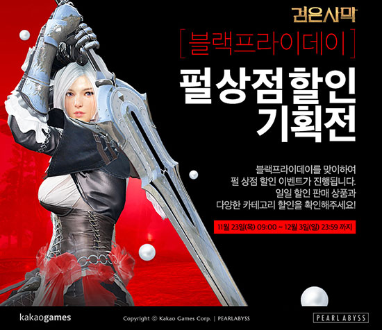 ÆÞ¾îºñ½º°¡ °³¹ßÇϰí īī¿À°ÔÀÓÁî¿¡¼ ¼ºñ½º ÁßÀÎ MMORPG '°ËÀº»ç¸·'ÀÌ 23ÀÏ(¸ñ), ¿¬¸» ÃÖ´ë ¼îÇÎ ½ÃÁðÀÎ ¡®ºí·¢ÇÁ¶óÀ̵¥ÀÌ¡¯¸¦ ¸Â¾Æ ÆÄ°Ý ÇÒÀÎ À̺¥Æ®¸¦ ½ÃÀÛÇß´Ù. À̹ø À̺¥Æ®¸¦ ÅëÇØ '°ËÀº»ç¸·'Àº 12¿ù 3ÀÏ(ÀÏ)±îÁö ¡®ÆÞ »óÁ¡¡¯¿¡¼ ¡®°ñµçº§¡¯, ¡®±â¿î°ÀåÁ¦¡¯, ¡®Å¾½Â¹° ±â¼ú º¯°æ±Ç¡¯, ¡®ÀåÀÎÀÇ ±â¾ï¡¯, ¡®´ëÀåÀåÀÌÀÇ ºñÀü¼¡¯ µîÀÇ Àα⠾ÆÀÌÅÛÀ» ÇÏ·ç¿¡ Çϳª¾¿ ÃÖ´ë 90% ÇÒÀÎÇÑ °¡°Ý¿¡ ÆÇ¸ÅÇÑ´Ù. ¶Ç À̺¥Æ® ±â°£ Áß ÆíÀǼº, ÀÎÅ׸®¾î, ž½Â¹°, ¾Ö¿Ïµ¿¹°, ºäƼ, ÀÇ»ó µî Ä«Å×°í¸® ³» ´Ù¾çÇÑ ¾ÆÀÌÅÛµéÀÇ °¡°ÝÀ» 20~30% ÇÒÀÎÇÑ´Ù. ÀÌ¿Í ÇÔ²² 12¿ù 7ÀÏ(¸ñ)±îÁö ¡®ÆÄÆ®¸®Áö¿ÀÀÇ ¾ß°£ ºñ¹Ð »óÁ¡¡¯¿¡¼ ¡®´Üµ¨¸®¿Â °¢¼º ¹«±â¡¯, ¡®Å©ÀÚÄ« ÁÖ¹«±â¡¯, ¡®´©º£¸£ º¸Á¶ ¹«±â¡¯, ¡®¿À¿ì°ÅÀÇ ¹ÝÁö¡¯ µî °·ÂÇÑ Àåºñ ±¸ÀÔ ½Ã ÃÖ´ë 50%ÀÇ ÇÒÀÎ ÇýÅÃÀ» Á¦°øÇÑ´Ù. ƯÈ÷ À̺¥Æ® ±â°£ Áß¿¡´Â ºñ¹Ð »óÁ¡À» ¿©´Âµ¥ ÇÊ¿äÇÑ ±â¿îÀÇ ¼öÄ¡µµ °¨¼ÒÇÑ´Ù. ÇÑÆí, '°ËÀº»ç¸·'Àº ¡®À§Ä¡¡¯, ¡®À§Àڵ塯 ij¸¯ÅÍ¿¡ ¡®±ú´ÞÀ½ÀÇ ¿Ï¼º: ÁÖ¹«±â ±â¼úÀÇ »õ·Î¿î Èû, Áø(òØ)¡¯ ¾÷µ¥ÀÌÆ®¸¦ ½Ç½ÃÇß´Ù. ÀÌ ¾÷µ¥ÀÌÆ®´Â 56·¹º§ ij¸¯Å͸¦ °¢¼ºÇÑ µÚ ¸·°ÇÑ °ø°Ý·ÂÀ» ÀÚ¶ûÇÏ´Â ÁÖ ¹«±â ±â¼ú ¡®Áø¡¯À» ¹è¿ï ¼ö ÀÖ°Ô ÇÏ´Â °ÍÀ¸·Î, 15Á¾ ij¸¯ÅÍ¿¡ ¼øÂ÷ Àû¿ëµÇ°í ÀÖ´Ù. À̹ø ÇÒÀÎ À̺¥Æ®¿Í ¾÷µ¥ÀÌÆ®, '°ËÀº»ç¸·' µî¿¡ ´ëÇÑ ¼¼ºÎ ³»¿ëÀº °ø½Ä ȨÆäÀÌÁö(http://black.game.daum.net)¿¡¼ È®ÀÎÇÒ ¼ö ÀÖ´Ù. '°ËÀº»ç¸·'Àº 2014³â 12¿ù OBT ÀÌÈÄ ¡®¼¼·»µð¾Æ¡¯, ¡®¹ß·¹³ë½º¡¯, ¡®Ä«¸¶½Çºñ¾Æ¡¯ ¼¹ö¸¦ ºñ·ÔÇØ Ãʺ¸ ÀÌ¿ëÀÚ¸¦ À§ÇÑ 5°³ÀÇ ¡®¿Ãºñ¾Æ¡¯ ¼¹ö¿Í À̺¥Æ® ¼¹ö ¡®¾Æ¸£»þ¡¯, 2°³ÀÇ PC¹æ ¼¹ö ¡®ÆÄÆ®¸®Áö¿À¡¯¸¦ Ãß°¡Çϸç ÄèÀûÇÑ °ÔÀÓ Ç÷¹À̰¡ °¡´ÉÇϵµ·Ï ²ÙÁØÈ÷ ȯ°æÀ» °³¼±ÇؿԴÙ. '°ËÀº»ç¸·'Àº Çѱ¹À» ÇʵηΠºÏ¹Ì, À¯·´, ÀϺ», ·¯½Ã¾Æ, ´ë¸¸ µî ¿©·¯ Áö¿ª¿¡¼ Àα⸮¿¡ ¼ºñ½º µÇ°í ÀÖ´Ù.