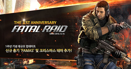 ¸ð¹ÙÀÏ °ÔÀÓ °³¹ß»ç ¼¿¹Ù½º°ÔÀÓÁî´Â Àڻ翡¼ °³¹ßÇÑ Á¤Åë ¸ð¹ÙÀÏ FPS(First Person Shooter) ¡®ÆäÀÌÅ»·¹À̵å(Fatal Raid)¡¯ÀÇ ¼ºñ½º 1ÁÖ³âÀ» ¸ÂÀÌÇØ ¡®Å©¸®½º¸¶½º¡¯ Å׸¶¿Í ½Å±Ô ¹«±â ¡®Famas¡¯¸¦ Ãß°¡Çϰí, ´Ù¾çÇÑ À̺¥Æ®¸¦ ½Ç½ÃÇÑ´Ù. ´Ù°¡¿À´Â 12¿ù 16ÀÏ 1ÁÖ³âÀ» ¸ÂÀÌÇÏ´Â 'ÆäÀÌÅ»·¹À̵å'´Â, À¯Àúµé¿¡°Ô °¨»çÀÇ Àǹ̸¦ Àü´ÞÇϰíÀÚ »çÀü À̺¥Æ®·Î ´Ù¾çÇÑ ÇýÅÃÀ» Á¦°øÇÑ´Ù. 12¿ù 1ÀÏ ½ÃÀÛµÈ º¹±Í À¯Àú À̺¥Æ®¸¦ ÅëÇØ, 2ÁÖ ÀÌ»ó °ÔÀÓ¿¡ Á¢¼ÓÇÏÁö ¾ÊÀº À¯Àú°¡ º¹±ÍÇÒ °æ¿ì ´Ù·®ÀÇ º¸¼®°ú °ñµå´Â ¹°·Ð ¡®ÃÖ°í±Þ Ãѱâ ĸ½¶¡¯, ¡®Á¦½ÃÄ« ij¸¯ÅÍ(7ÀÏ)¡¯, ¡®B±Þ 6¼º G36¡¯ µîÀ» Áö±ÞÇÑ´Ù. 12¿ù 9ÀϺÎÅÍ 15ÀϱîÁö´Â °ÔÀÓ¿¡ Á¢¼ÓÇÑ À¯Àú Àü¿ø¿¡°Ô »Ì±â±Ç°ú 20¸¸ °ñµå, A±Þ Ãѱâĸ½¶ µîÀ» Áï½Ã Áö±ÞÇÏ´Â »çÀü Á¢¼Ó À̺¥Æ®°¡ ÁøÇàµÉ ¿¹Á¤ÀÌ´Ù. 12¿ù 16ÀÏ¿¡´Â Á¢¼Ó¸¸Çصµ ¡®ÇÁ¸®¹Ì¾ö ƼÄÏ(10ȸ)¡¯¸¦ 100% Áö±ÞÇϰí, PVP ½Â¸® Ƚ¼ö¿¡ µû¶ó ǪÁüÇÑ º¸»óÀ» Á¦°øÇÑ´Ù. ¶ÇÇÑ, ƯÁ¤ ½Ã°£´ë¿¡ ½ºÅ丮¸ðµå °ñµå ȹµæ·®ÀÌ 200% Çâ»óµÇ´Â µî ´Ù¾çÇÑ Áñ±æ°Å¸®¿Í ÇýÅÃÀÌ ÁغñµÇ¾î ÀÖ´Ù. ÀÌ ¹Û¿¡µµ ´Ù°¡¿À´Â Å©¸®½º¸¶½º¸¦ ±â³äÇÏ¿© ÀΰÔÀÓ Å׸¶¸¦ Àü¸é ¼öÁ¤Çϰí, ½Å±Ô ¹«±â ¡®Famas¡¯¸¦ ¾÷µ¥ÀÌÆ® ÇÔÀ¸·Î½á À¯Àúµé¿¡°Ô »ö´Ù¸¥ Áñ°Å¿òÀ» Á¦°øÇÒ ¿¹Á¤ÀÌ´Ù. ÇÑÆí, ¾ð¸®¾ó ¿£Áø ±â¹ÝÀÇ È·ÁÇÑ ±×·¡ÇȰú ¶Ù¾î³ Ÿ°Ý°¨À» ÀÚ¶ûÇÏ´Â 'ÆäÀÌÅ»·¹À̵å'´Â 2016³â 12¿ù Ãâ½Ã ÈÄ ¿ÃÃÊ ´ë¸¸, È«Äá, Çʸ®ÇÉ µî ¾Æ½Ã¾Æ Áö¿ª¿¡ ¼ºñ½º¸¦ ½ÃÀÛÇÏ¸ç °ÔÀÓ¼ºÀ» ÀÎÁ¤¹Þ¾Ò°í, Áö³ 6¿ù¿¡´Â ±¸±ÛÇ÷¹ÀÌ 100¸¸ ´Ù¿î·Îµå±îÁö µ¹ÆÄÇÏ¸ç ¸ð¹ÙÀÏ FPS ¼±µÎ ÁÖÀڷμÀÇ ¸é¸ð¸¦ º¸¿´´Ù. ¶ÇÇÑ ¿Ã ¿©¸§ º»°ÝÀûÀÎ ÀϺ» ¸¶ÄÏ¿¡ ÁøÃâÇÏ¸é¼ ¼ºñ½º ÀÌÈÄ ÃÖ°í ¸ÅÃâÀ» ´Þ¼ºÇÏ´Â ½Å±â·ÏÀ» ¼¼¿ì±âµµ Çß´Ù. ¼¿¹Ù½º°ÔÀÓÁî ÇÑ»ó½Ä ÀÌ»ç´Â ¡°1³âÀ̶ó´Â ½Ã°£ µ¿¾È º¯Ä¡ ¾Ê°í ÆäÀÌÅ»·¹À̵忡 º¸³»ÁֽŠ»ç¶û°ú ¼º¿ø¿¡ °¨»çµå¸°´Ù¡±¸ç ¡°1ÁÖ³âÀ» ³Ñ¾î ¿À·£ ½Ã°£µ¿¾È ²ÙÁØÈ÷ »ç¶û¹Þ´Â °ÔÀÓÀ¸·Î ±â¾ïµÉ ¼ö ÀÖµµ·Ï ÃÖ»óÀÇ ¼ºñ½º¿Í ÄÜÅÙÃ÷·Î º¸´äÇϰڴ١±°í ¹àÇû´Ù. 'ÆäÀÌÅ»·¹À̵塯´Â ±¸±ÛÇ÷¹ÀÌ(https://goo.gl/v4phkK)¿Í ¾ÖÇà ¾Û½ºÅä¾î(https://goo.gl/NPxs5d), ¿ø½ºÅä¾î(https://goo.gl/uaTQsR)¿¡¼ ´Ù¿î·Îµå ¹ÞÀ» ¼ö ÀÖÀ¸¸ç, 1ÁÖ³â À̺¥Æ®¿Í ¾÷µ¥ÀÌÆ® ³»¿ª¿¡ ´ëÇÑ ÀÚ¼¼ÇÑ ³»¿ëÀº ¡®ÆäÀÌÅ»·¹À̵塯 °ø½ÄÄ«Æä(cafe.naver.com/fatalraid)¸¦ ÅëÇØ È®ÀÎÇÒ ¼ö ÀÖ´Ù.