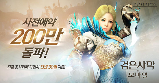 ÆÞ¾îºñ½º°¡ °³¹ßÇÏ°í ¼ºñ½º ¿¹Á¤ÀÎ ¡®°ËÀº»ç¸· ¸ð¹ÙÀÏ¡¯ÀÌ »çÀü ¿¹¾àÀ» ½ÃÀÛÇÑÁö ´Ü 20ÀÏ ¸¸ÀÎ 12¿ù 14ÀÏ, »çÀü¿¹¾à ½ÅûÀÚ¼ö 200¸¸ ¸íÀ» µ¹ÆÄÇß´Ù. ¼öÁØ ³ôÀº ±×·¡ÇȰú ¹æ´ëÇÑ ÄÜÅÙÃ÷¸¦ ÀÚ¶ûÇÏ´Â ¡®°ËÀº»ç¸· ¸ð¹ÙÀÏ¡¯Àº 2018³â ÃÖ°íÀÇ ±â´ëÀÛÀ¸·Î ¼Õ²ÅÈ÷¸ç ³ôÀº °ü½ÉÀ» ¹Þ°í ÀÖ´Ù. À̸¦ ÀÔÁõÇÏµí ºü¸¥ ¼Óµµ·Î »çÀü ¿¹¾à ¸ð°´¼ö¸¦ È®º¸Çϰí ÀÖ´Ù. ¡®°ËÀº»ç¸· ¸ð¹ÙÀÏ¡¯Àº °ø½Ä Ä«Æä¸¦ ÅëÇØ Ãâ½Ã ÀüºÎÅÍ ´Ù¾çÇÑ ÄÜÅÙÃ÷¸¦ °ø°³Çϸç ÀÌ¿ëÀÚµé°ú ¼ÒÅëÇϰí ÀÖ´Ù. ¸ð¹ÙÀÏ ¹öÀü¿¡¼¸¸ ¸¸³¯ ¼ö ÀÖ´Â ¡®¿µÁö¡¯ ½Ã½ºÅÛÀ» ºñ·Ô, ¹Ý·Áµ¿¹°, ¸», Åä¹ú ½Ã½ºÅÛÀ» ¼Ò°³ÇÏ¸ç °ÔÀÓ¿¡ ´ëÇÑ °¥ÁõÀ» ÇØ¼ÒÇØÁÖ°í ÀÖ´Ù. °ÔÀÓ Ãâ½Ã ÀüºÎÅÍ ÀÌ¿ëÀÚµé°ú ¼ÒÅëÇϰڴٴ ¿î¿µÁøÀÇ ³ë·ÂÀ¸·Î Ä«Æä ȸ¿øÀº 13¸¸ ¸íÀ» µ¹ÆÄÇß´Ù. ¡®°ËÀº»ç¸· ¸ð¹ÙÀÏ¡¯Àº ¿øÀÛ PC ¿Â¶óÀÎ ¡®°ËÀº»ç¸·¡¯ÀÇ IP¸¦ Ȱ¿ëÇÑ ¸ð¹ÙÀÏ MMORPG´Ù. Àü¼¼°è¿¡¼ ÈïÇàÇÏ¸ç ´Ü¼û¿¡ ±Û·Î¹ú Àαâ°ÔÀÓ ÀÚ¸®¸¦ Â÷ÁöÇÑ ¡®°ËÀº»ç¸·¡¯ÀÇ µ¶º¸ÀûÀÎ ÀåÁ¡µéÀ» ¸ð¹ÙÀÏ¿¡¼ ÀçÇöÇØ ³Â´Ù. ƯÈ÷ ¹Ìµð¾î ¼îÄÉÀ̽º¿¡¼ °ø°³ÇÑ ¿µ»ó°ú °ÔÀӽÿ¬À» ÅëÇØ À¯Àúµé¿¡°Ô ³ôÀº ±â´ë°¨À» ½É¾îÁÖ¸ç ªÀº ½Ã°£¿¡ ¸¹Àº »çÀü¿¹¾àÀÚ¸¦ ¸ðÁýÇß´Ù. Á¶¿ë¹Î ÇÁ·Îµà¼´Â ¡°¸¹Àº ºÐµéÀÇ ±â´ë¿Í È£ÀÀ¿¡ °³¹ßÁø ¸ðµÎ ÇѸ¶À½À¸·Î ¼ºñ½º Áغñ¿¡ ¸ÅÁøÇϰí ÀÖ´Ù¡±¶ó¸ç ¡°200¸¸¸íÀ̶ó´Â ¼ýÀÚ¿¡ °É¸Â´Â °ÔÀÓÀ¸·Î º¸´äÇϵµ·Ï ³ë·ÂÇϰڴ١±¶ó°í ¸»Çß´Ù. ÆÞ¾îºñ½º´Â 200¸¸ »çÀü¿¹¾àÀÚ ´Þ¼ºÀ» ±â³äÇØ »çÀü¿¹¾à º¸»óÀ» È®´ëÇß´Ù. ±âÁ¸ ÇÑÁ¤ÆÇ º£·Îµç ÀÇ»ó ¿Ü¿¡µµ 40,000 ÀºÈ¿Í 100ÆÞÀ» Á¦°øÇÑ´Ù. °ø½ÄÄ«Æä(http://cafe.naver.com/blackdesertm)¸¦ ÅëÇÑ Ä«Æä °¡ÀÔ À̺¥Æ®µµ ÁøÇàµÇ°í ÀÖ´Ù. °¡ÀÔÇÑ Àü¿ø¿¡°Ô ÆÞ 30°³¸¦ Áö±ÞÇϸç, °ø½ÄÄ«Æä °¡ÀÔ Àοø ¼ö¿¡ µû¶ó °ÔÀÓ ¾ÆÀÌÅÛÀ» Ãß°¡ Áö±ÞÇÑ´Ù. °ÔÀÓ¿¡ ´ëÇÑ ÀÚ¼¼ÇÑ ¼Ò°³¿Í À̺¥Æ® ¼Ò½ÄÀº ¡®°ËÀº»ç¸· ¸ð¹ÙÀÏ¡¯ °ø½Ä À¥»çÀÌÆ®(https://www.blackdesertm.com)¿¡¼ È®ÀÎ °¡´ÉÇÏ´Ù.