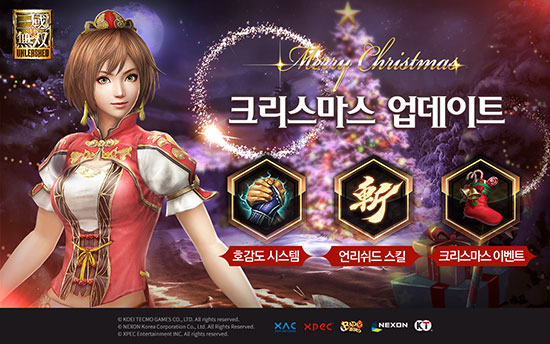 ¶Ç, Å©¸®½º¸¶½º Àü¿ë ÄÜÅÙÃ÷¸¦ ¼±º¸¿´´Ù. ¸ÕÀú, ¡®Á¶Á¶¡¯, ¡®Àå·á¡¯, ¡®¼Õ»óÇ⡯ÀÇ Å©¸®½º¸¶½º ÄÚ½ºÆ¬À» Ãß°¡Çϰí, ¡®´ÞÄÞÇÑ ¸·´ë »çÅÁ¡¯ ¹«±â, ¡®»êŸ ÅпÜÅõ¡¯ ¹æ¾î±¸, ¡®´«»ç¶÷ ¹æ¿ï¡¯ ¹ýº¸ µî Àü¿ë Àåºñ¸¦ ¾÷µ¥ÀÌÆ®Çß´Ù.